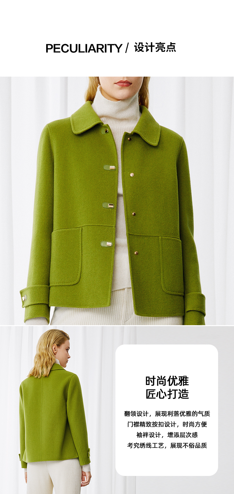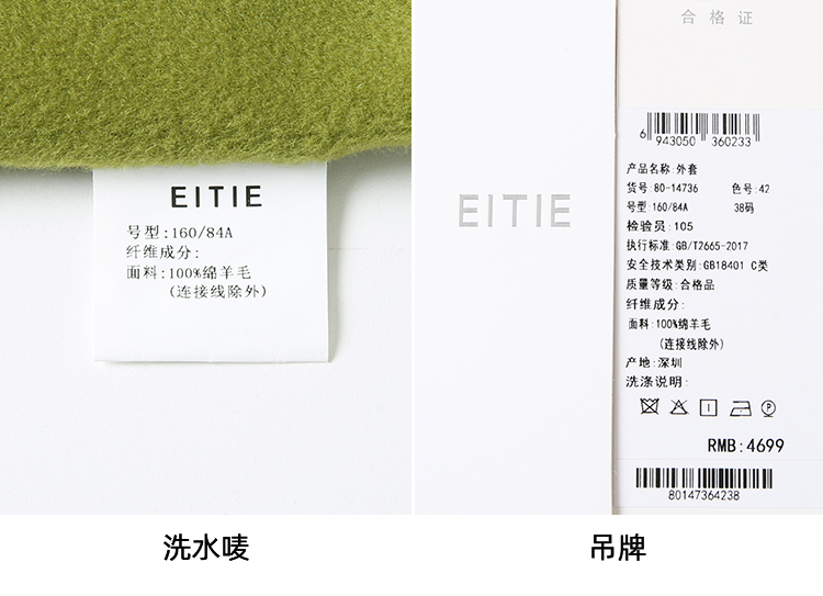 EITIE爱特爱冬季新款时尚翻领显瘦纯色毛呢大衣外套8014736