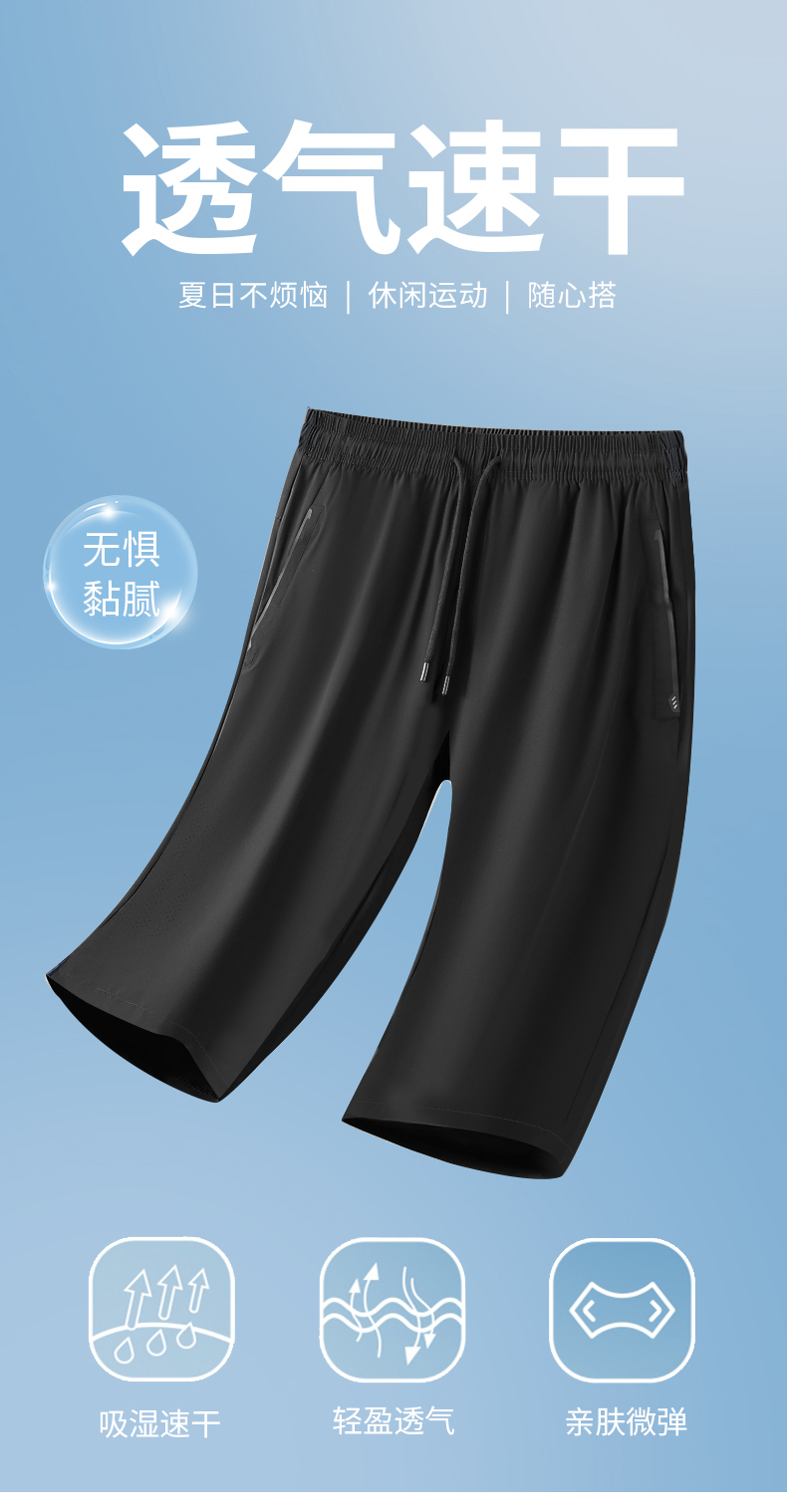 【速干】【DWN】大依优型大码休闲七分短裤冰丝中裤大号裤子弹力透气加肥加大夏季松紧腰宽松运动