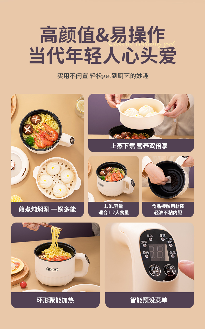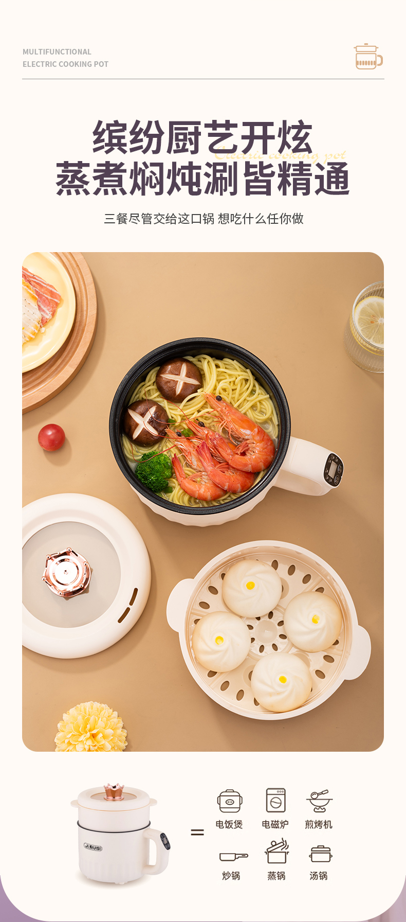 【小锅花样多!趣享食刻好心情】多功能电煮锅家用小锅宿舍小型煮泡面锅火锅学生小电锅智能一体锅。ry