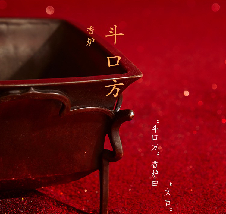 文吉香炉斗口方手工紫铜炉 文吉 制