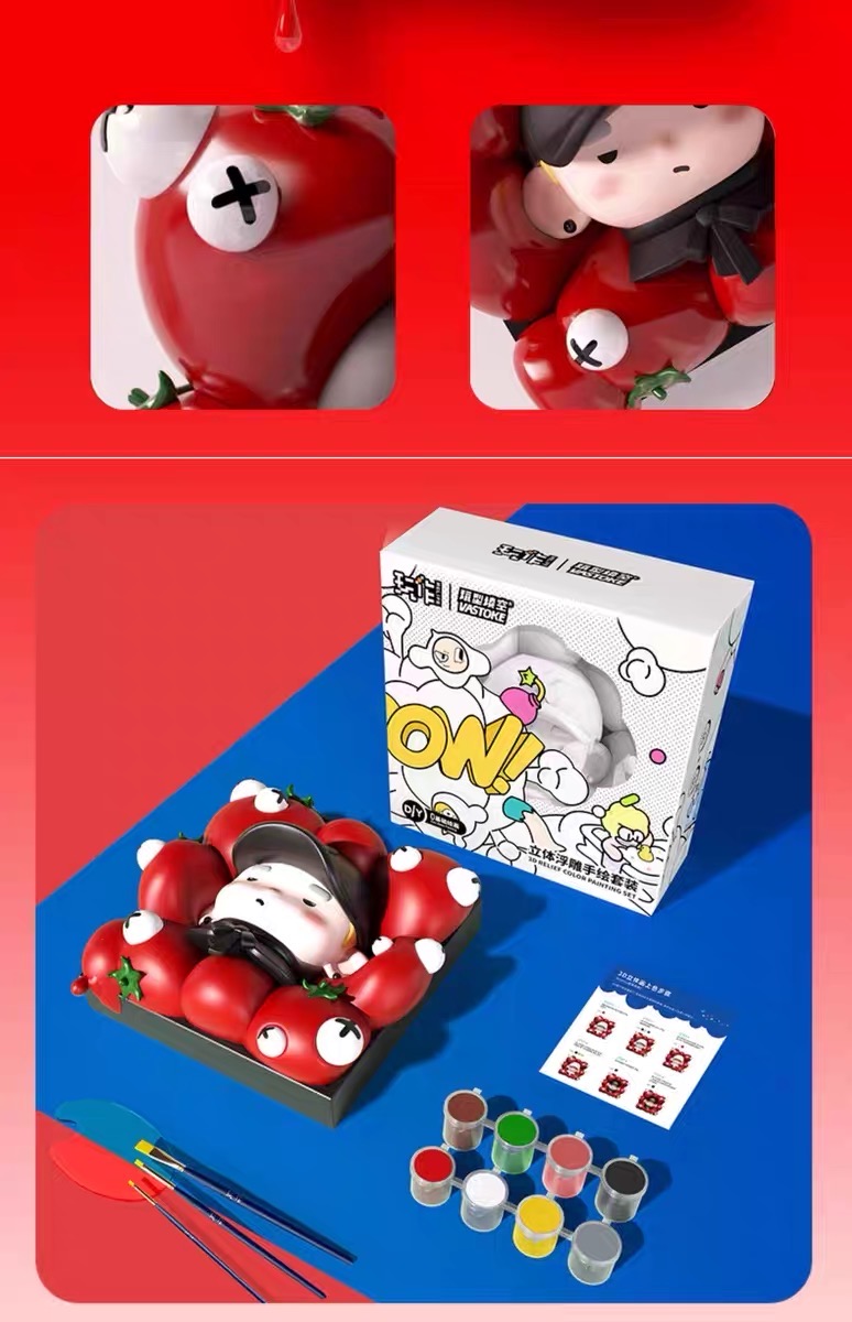 玩作0基础3D立体浮雕画番茄手绘丙烯填色DIY数字油画