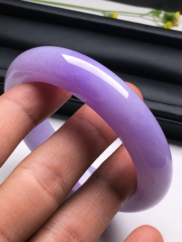 翡翠紫罗兰手镯女天然缅甸老坑翡翠冰糯种紫罗兰玉镯子紫色玉手镯