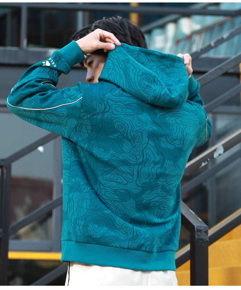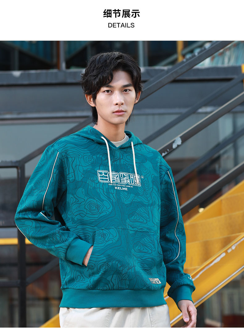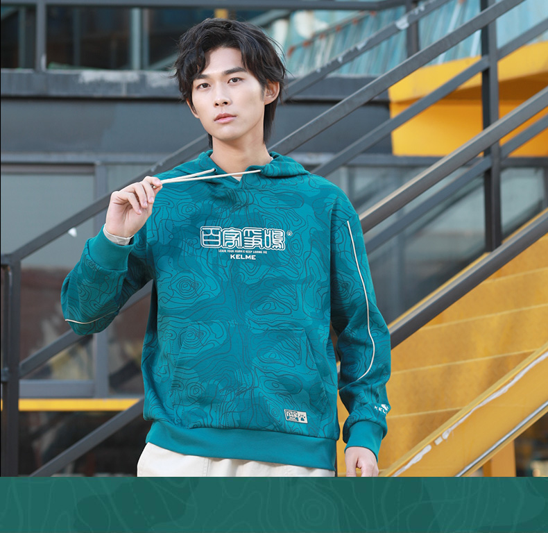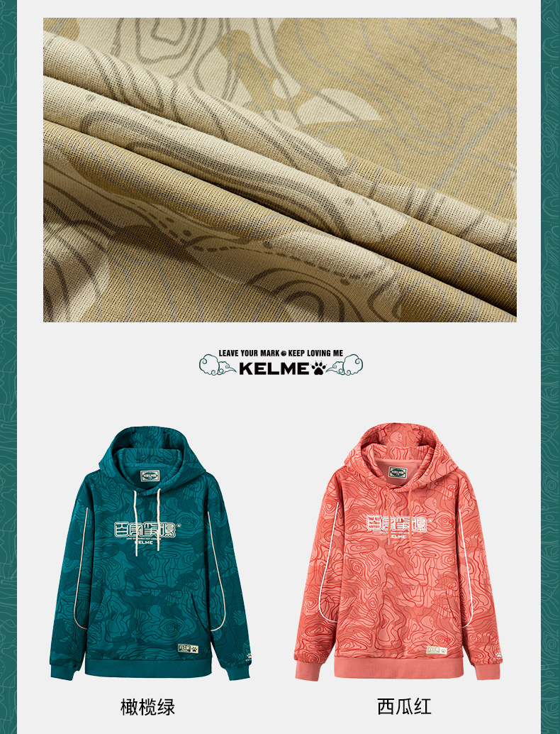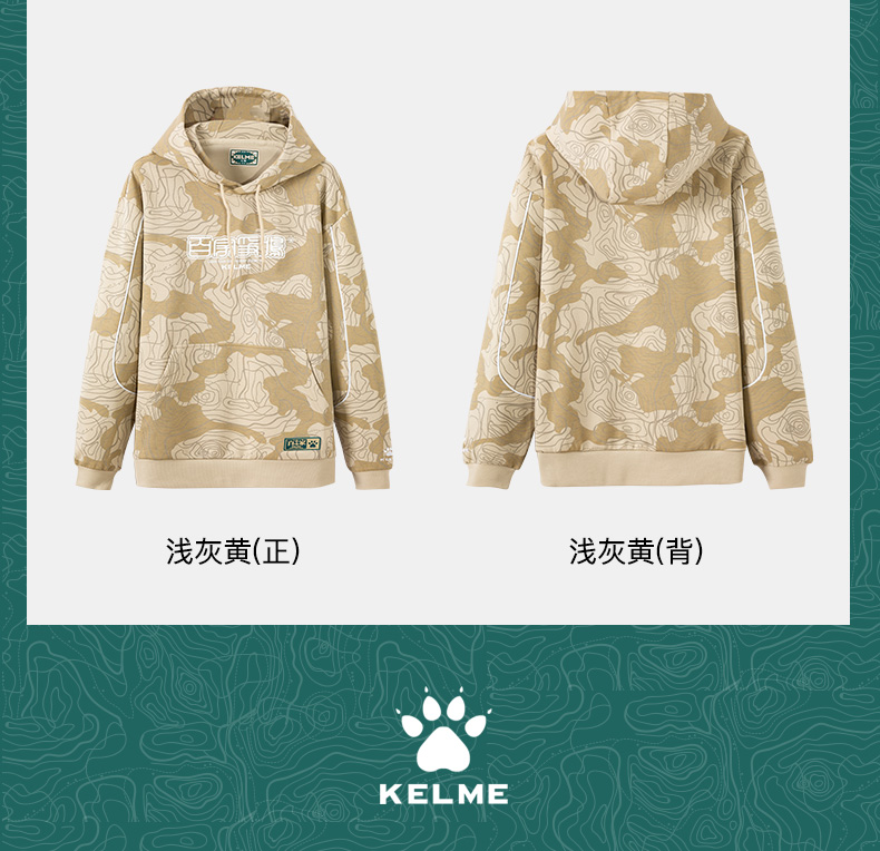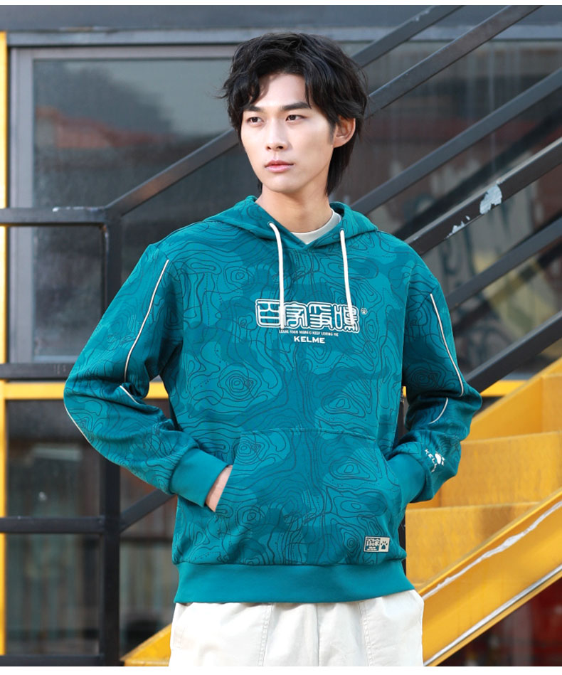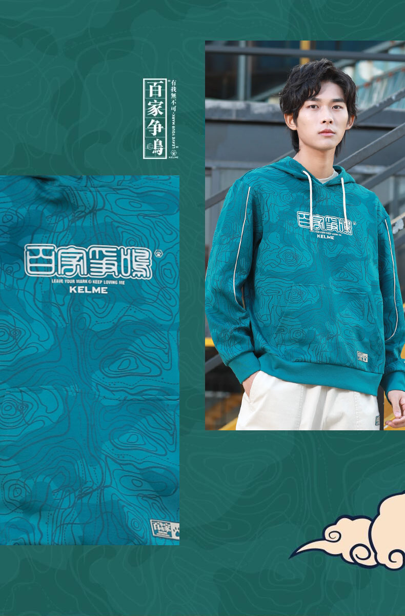 KELME卡尔美 运动卫衣男潮连帽中国风印花迷彩套头衫春秋长袖外套