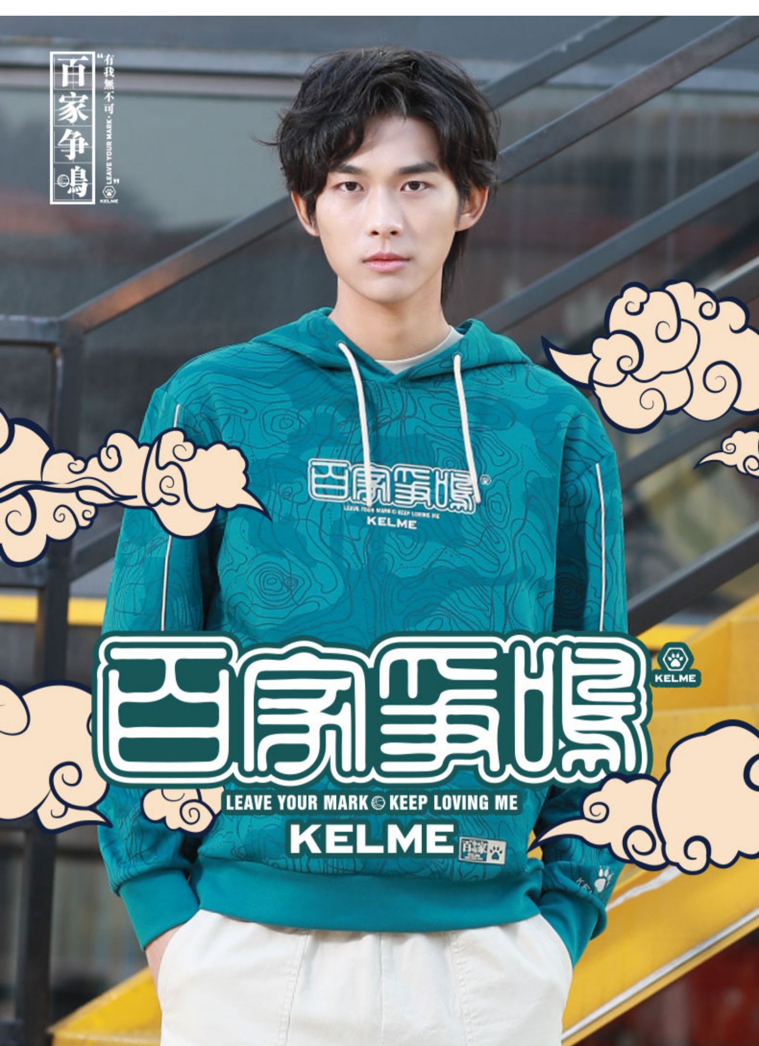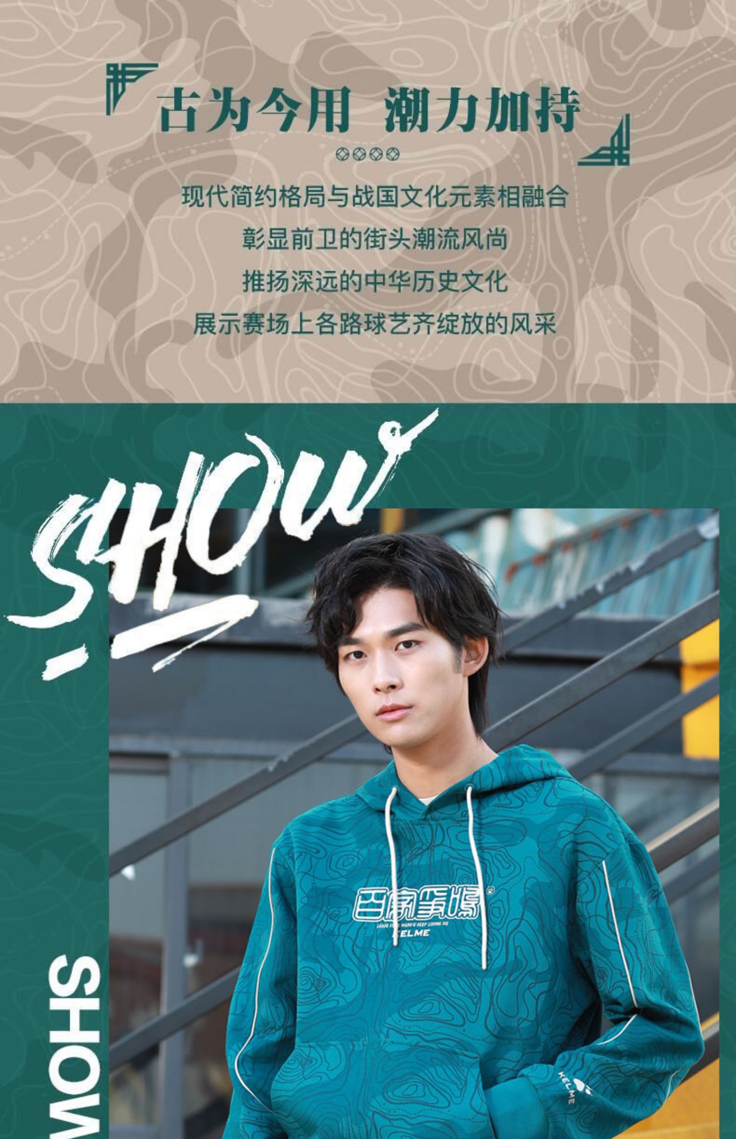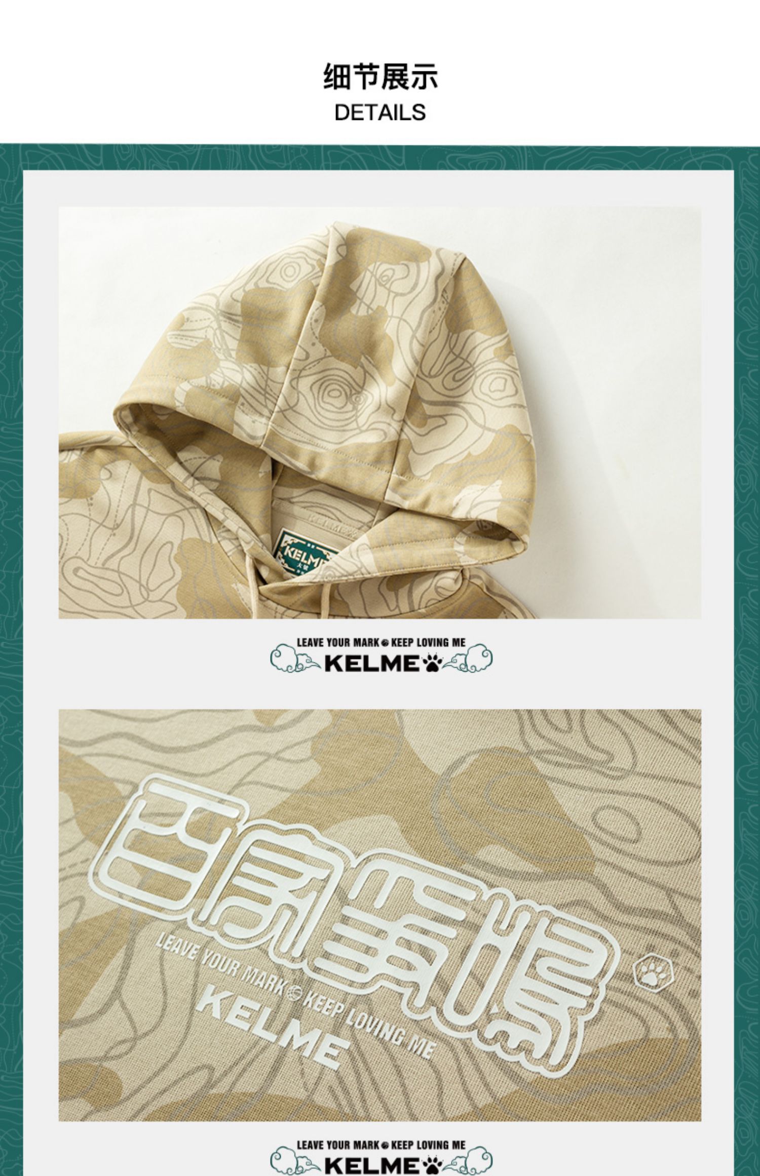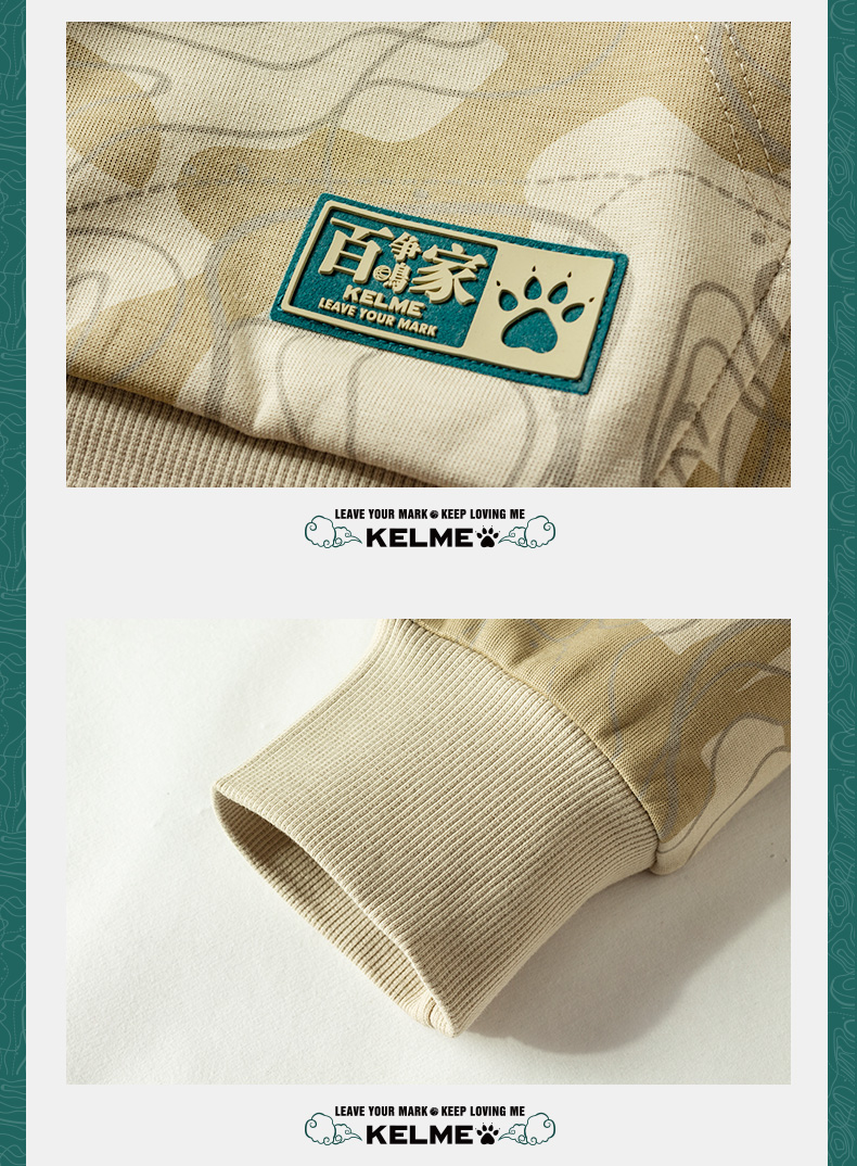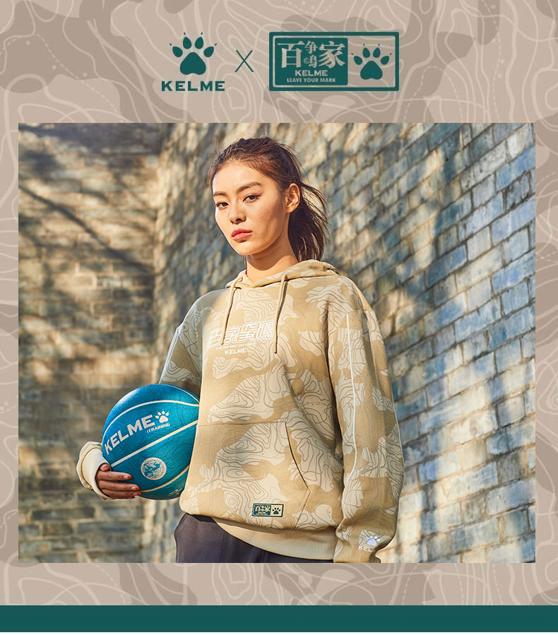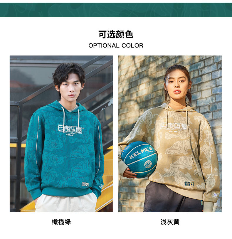 KELME卡尔美 运动卫衣男潮连帽中国风印花迷彩套头衫春秋长袖外套