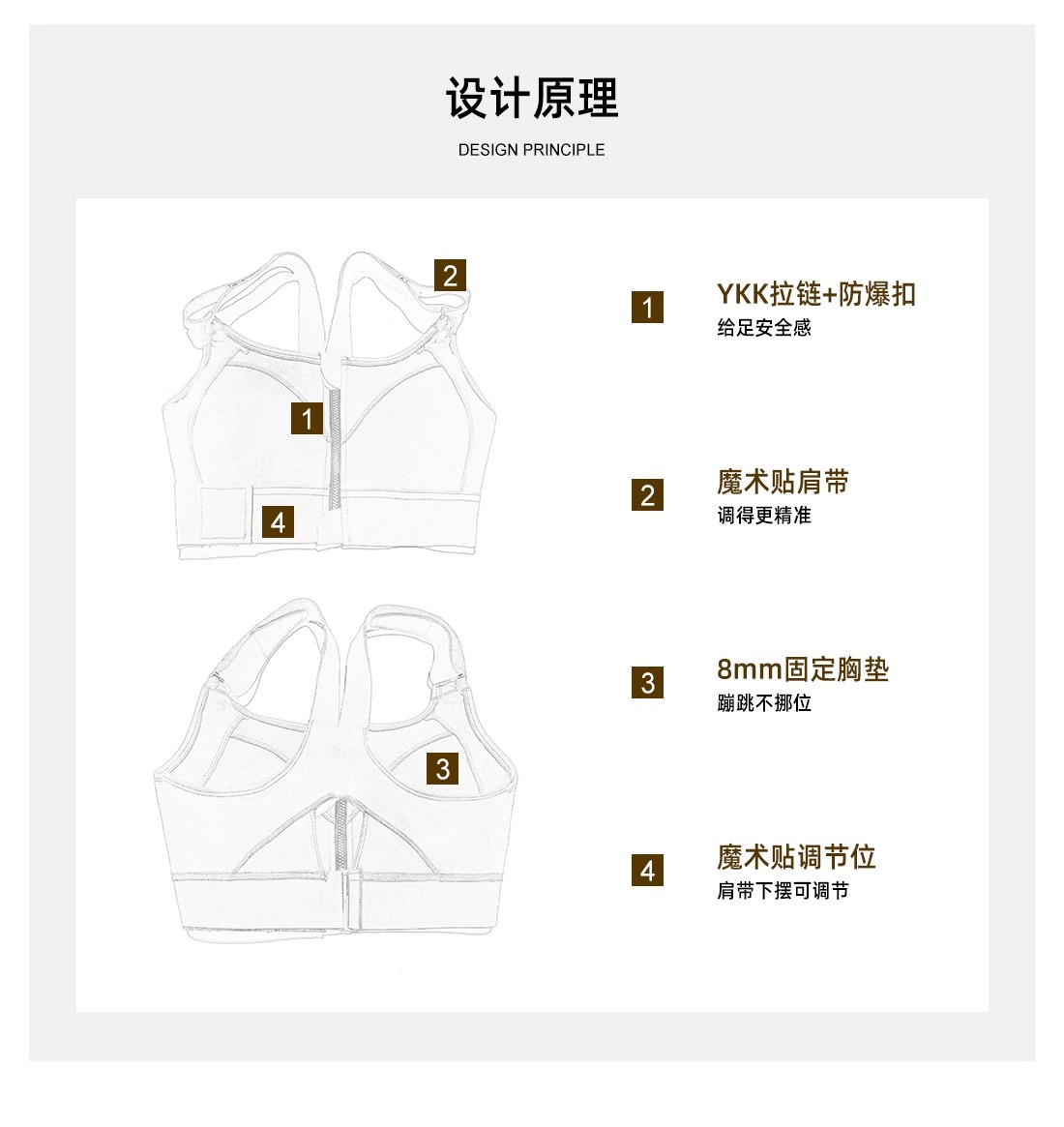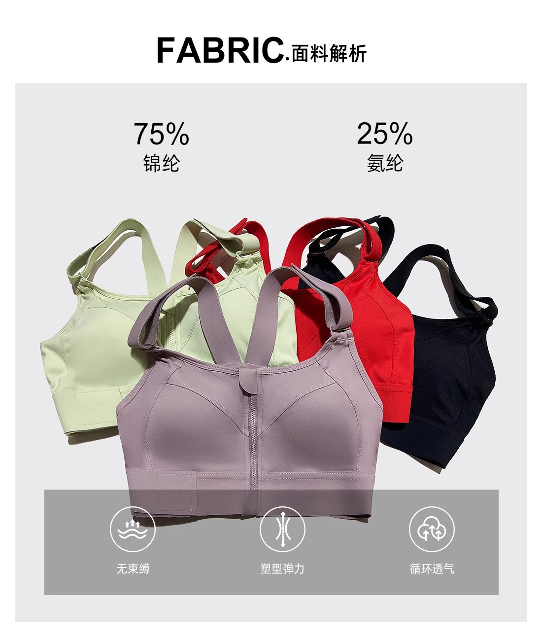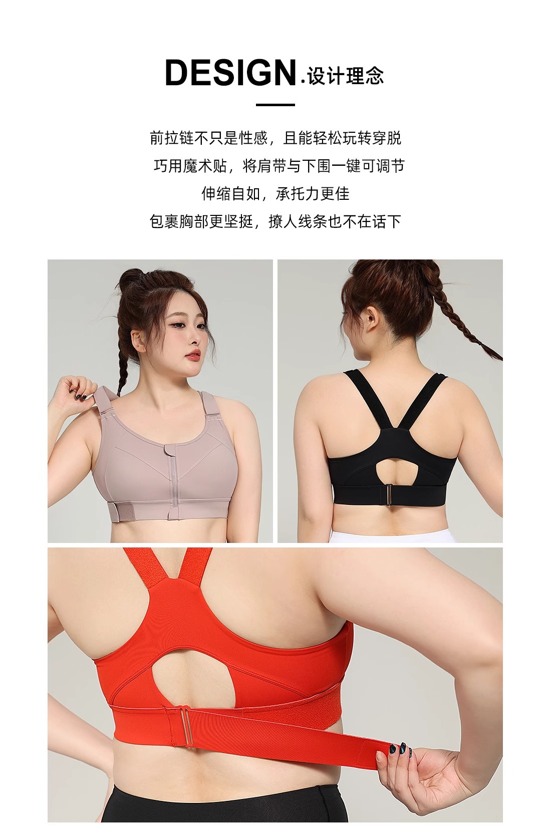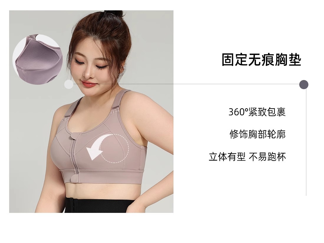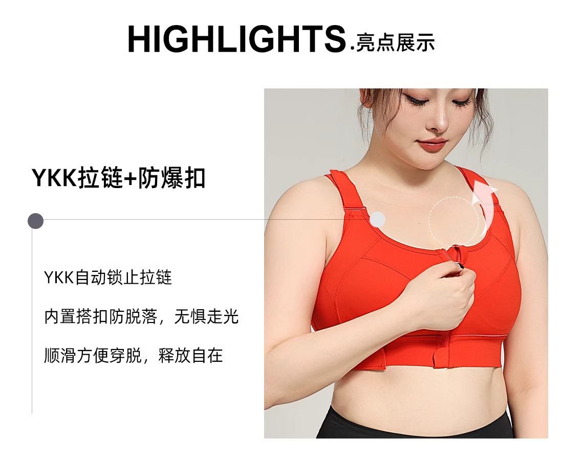 跃牌(呗咪纷纷系列)YKK拉链高强度大码运动内衣女防震无痕跑步瑜伽服WX2301