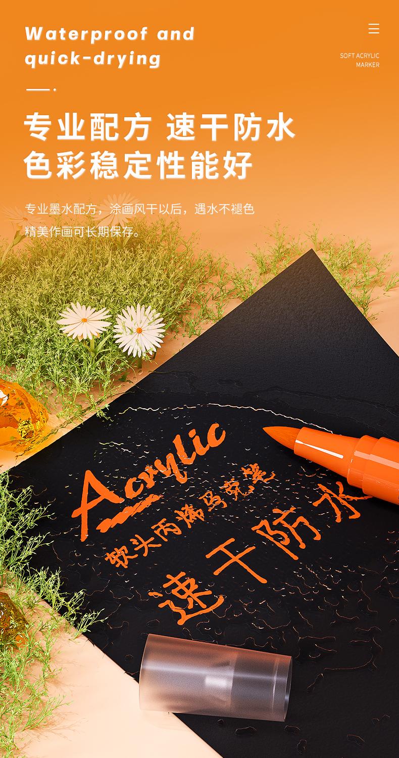 【广博】软头专业丙烯马克笔不透色小学生绘画水彩笔专用画笔丙烯笔
