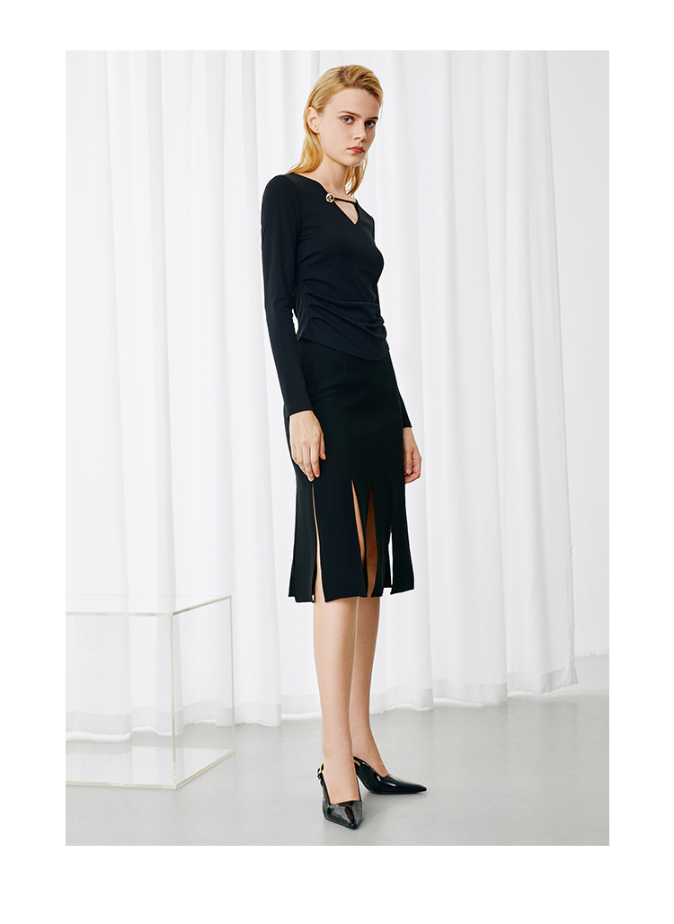 EITIE爱特爱秋季新款设计简约通勤高腰显瘦半身裙7906603