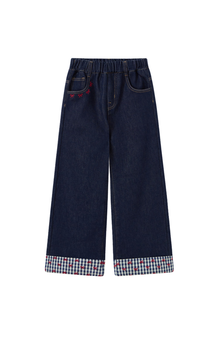 【MQD】童装女大童弯刀加绒牛仔裤冬季新款儿童奥粒绒百搭加厚裤子
