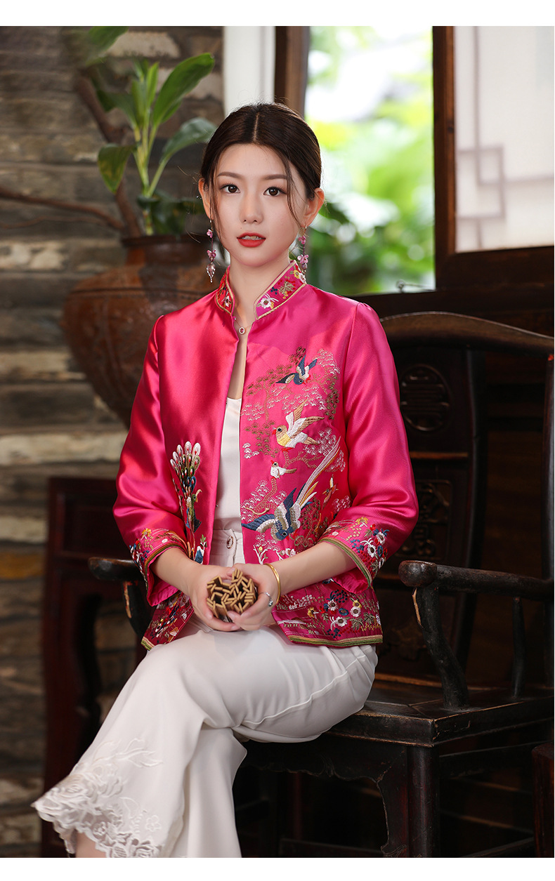 复古女装中国民族风刺绣外套时尚修身七分袖短外套 FL-9113