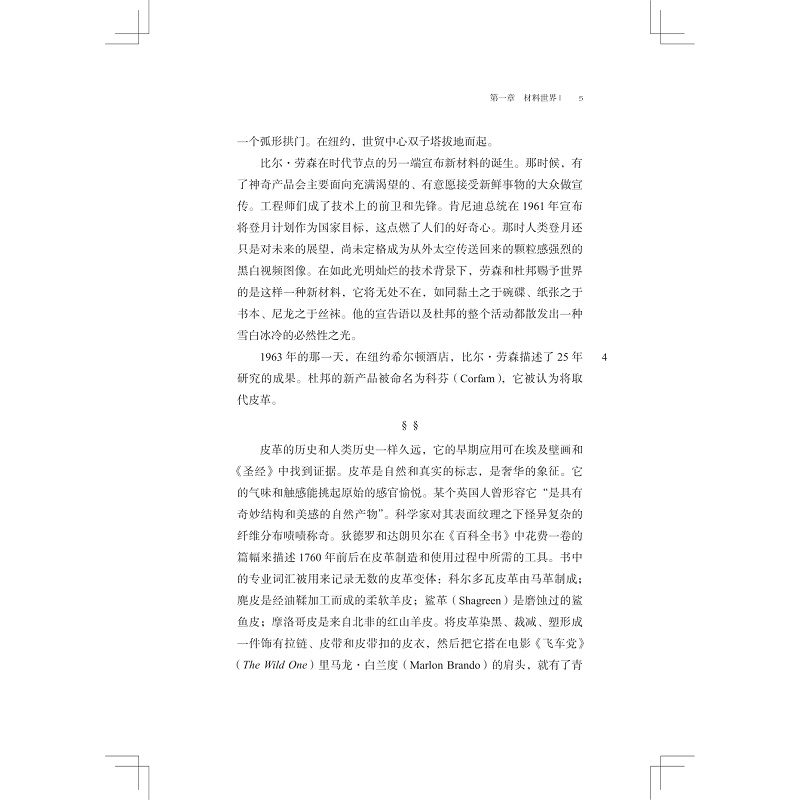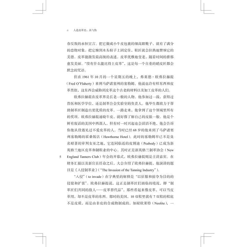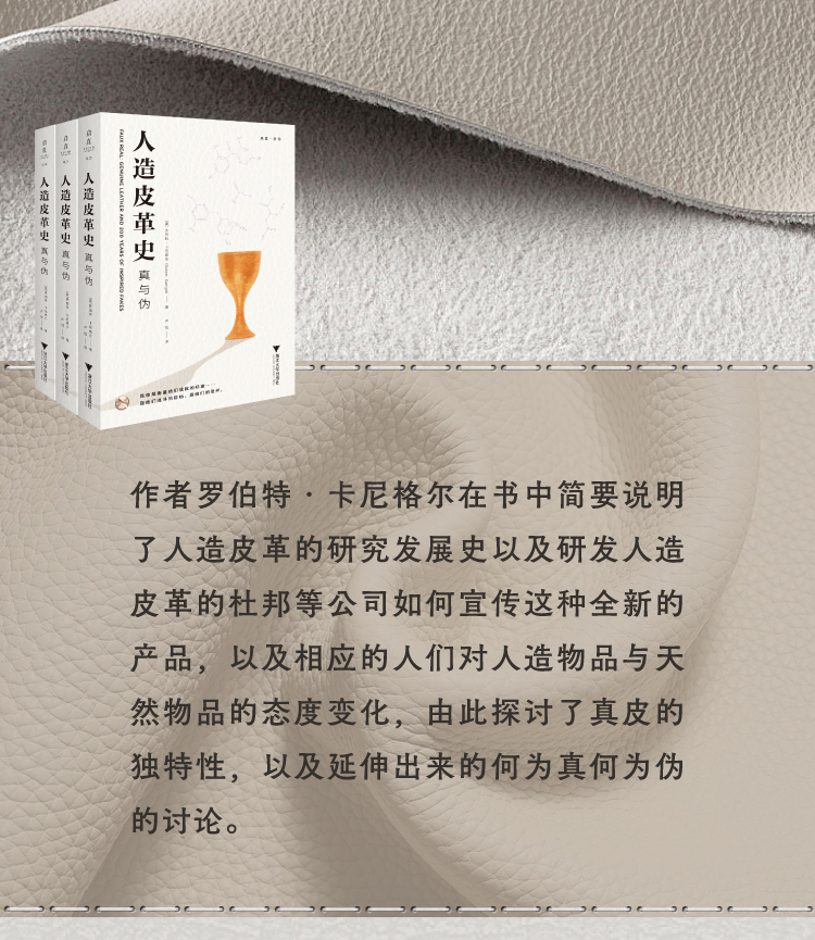 作者罗伯特·卡尼格尔在书中简要说明了人造皮革的研究发展史以及研发人造皮革的杜邦等公司如何宣传这种全新的产品,以及相应的人们对人造物品与天然物品的态度变化,由此探讨了真皮的独特性,以及延伸出来的何为真何为伪的讨论。