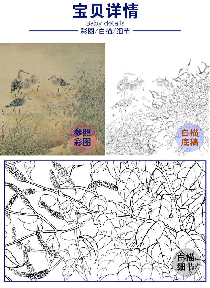 工笔花鸟白描底稿-红廖《秋趣图》-斗方小品册页-多种白描尺寸可选-A214