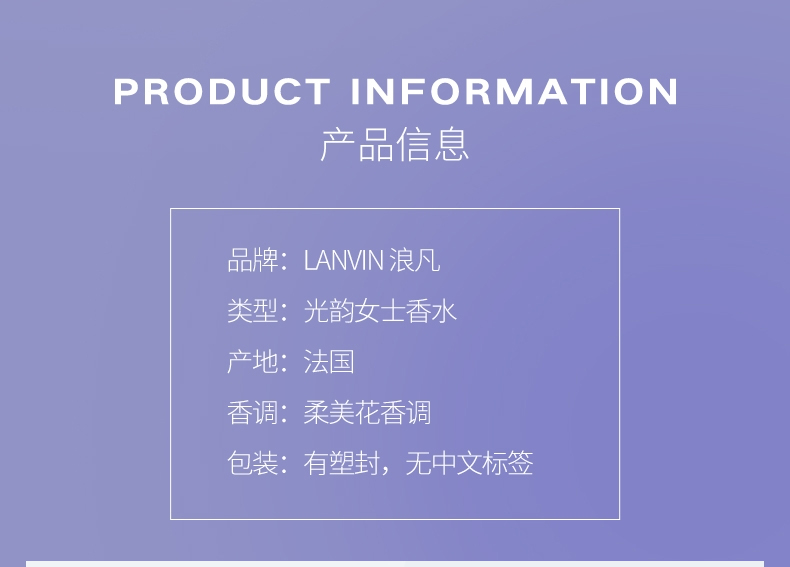 【保税直邮 福州海关】Lanvin/浪凡光韵女士浓香水EDP 100ml