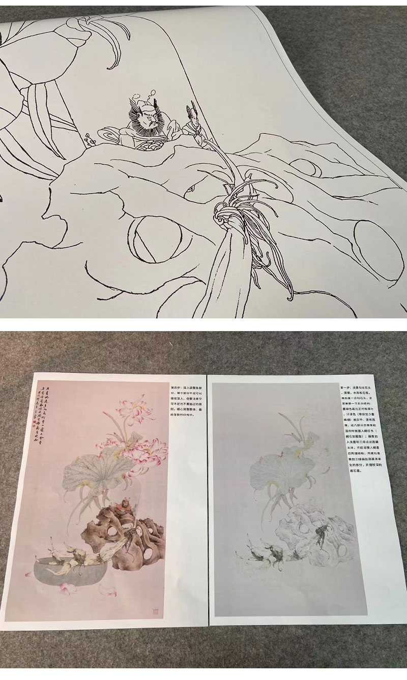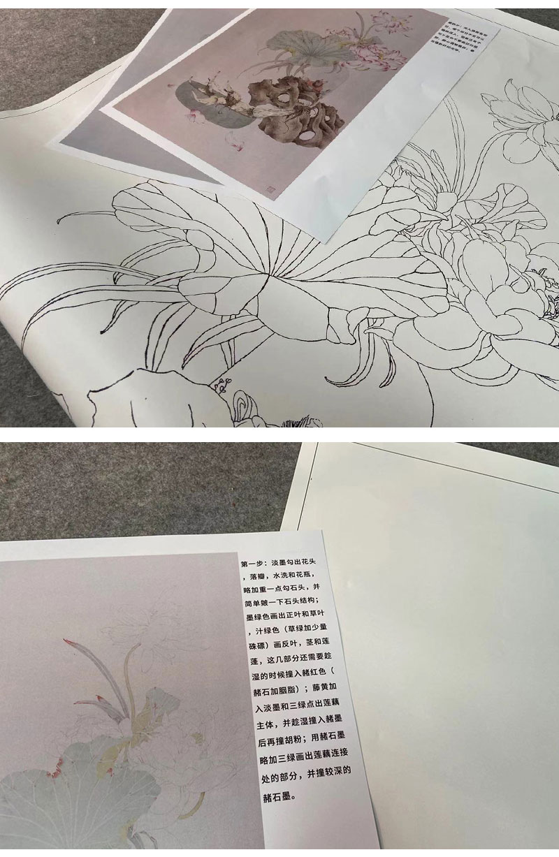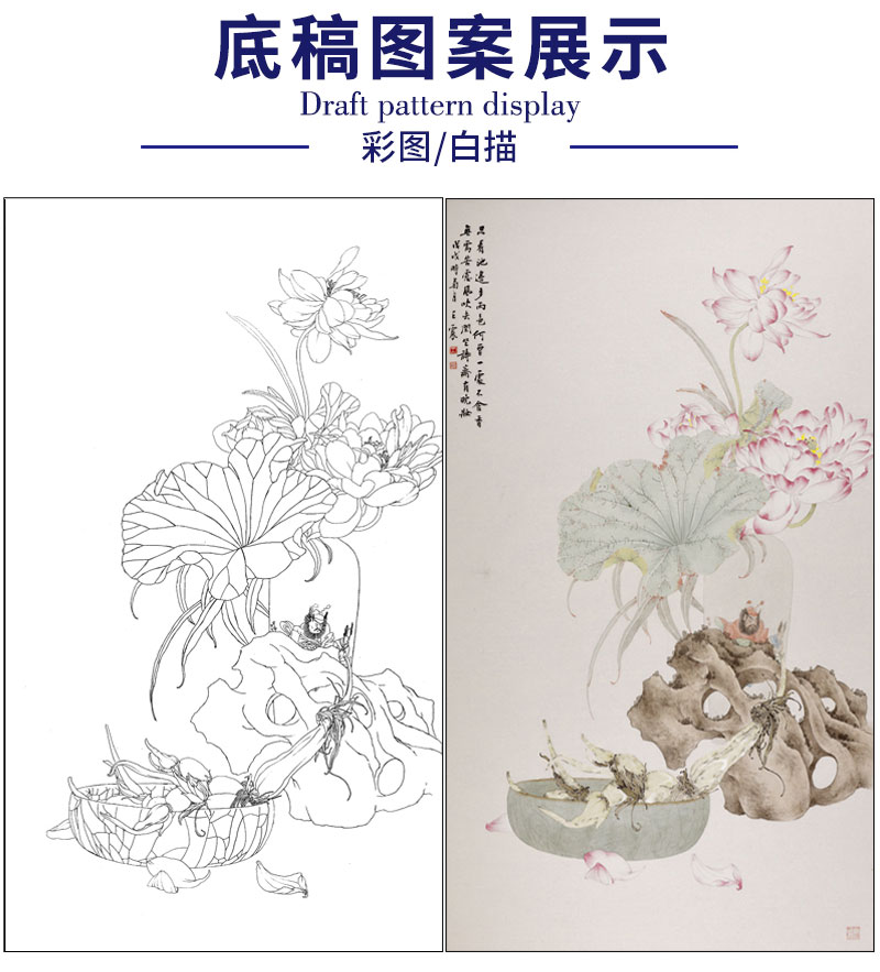 【有步骤】王震工笔画白描底稿《何曾一处不含香》博古花瓶初学者临摹花鸟线稿WZ29