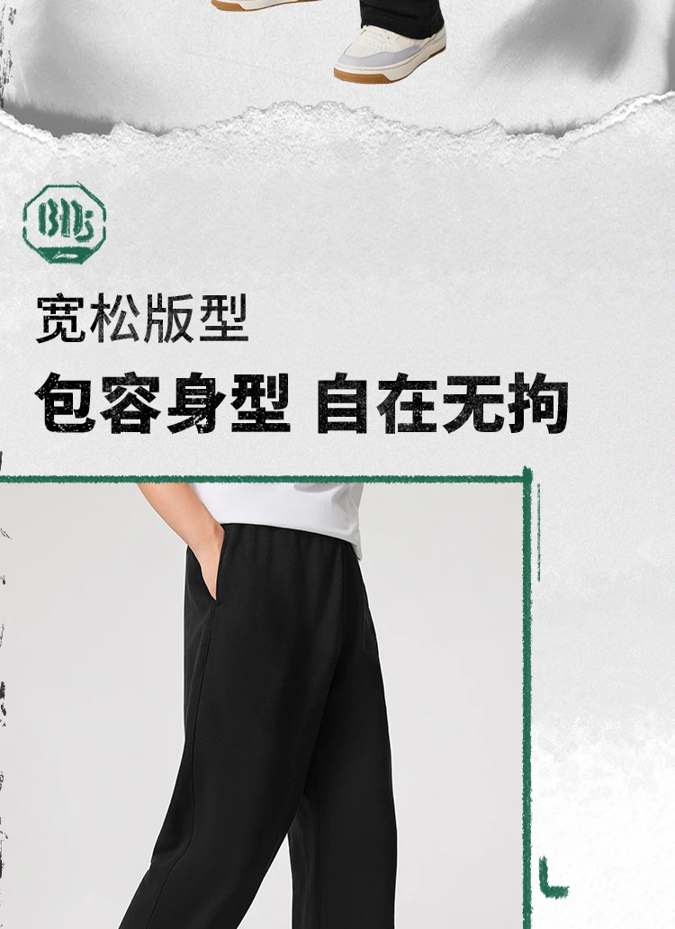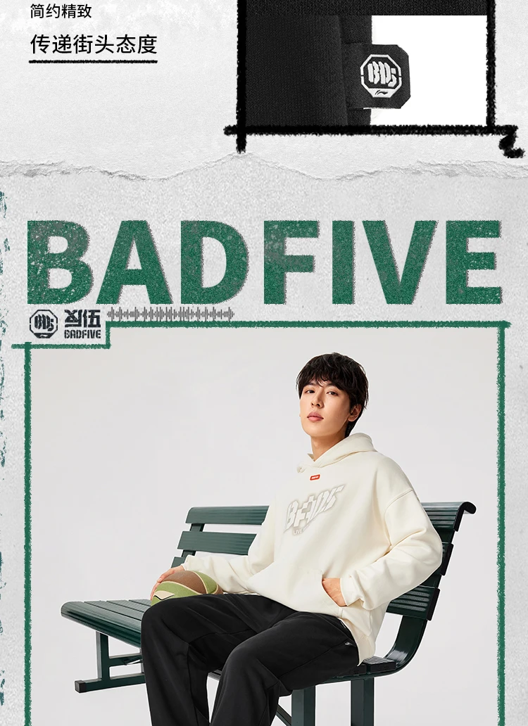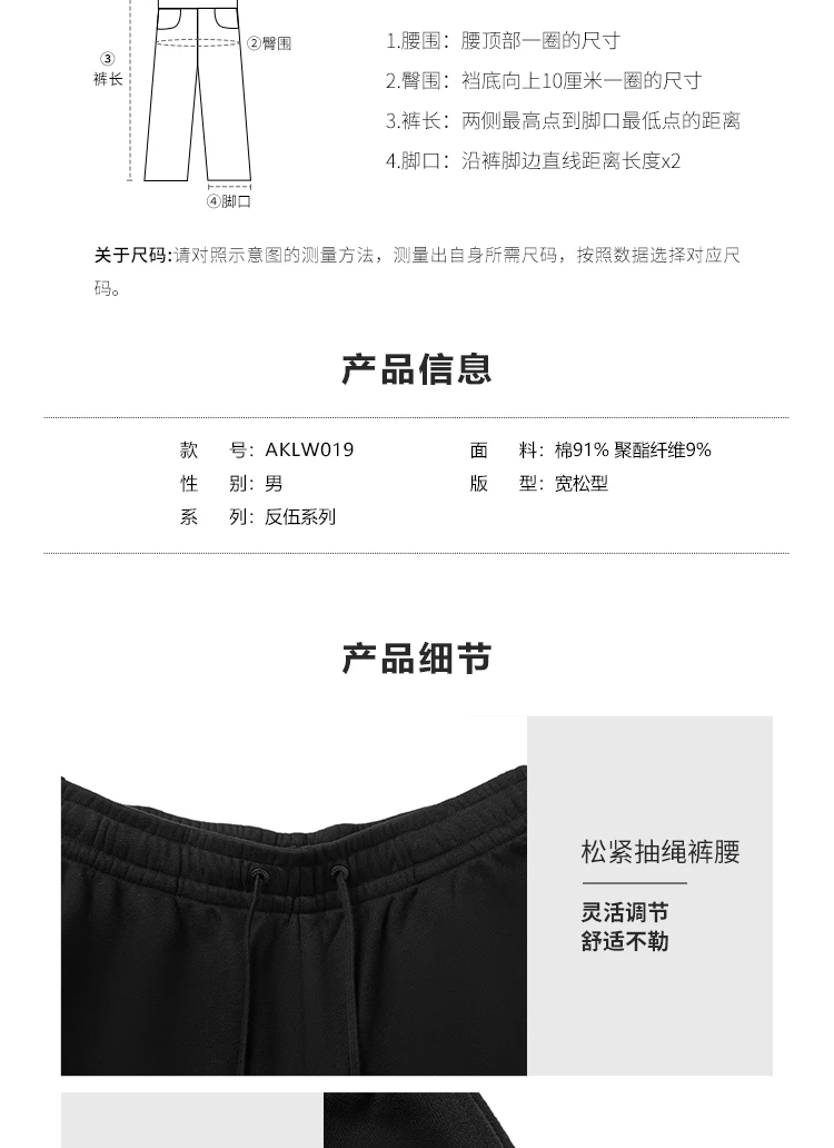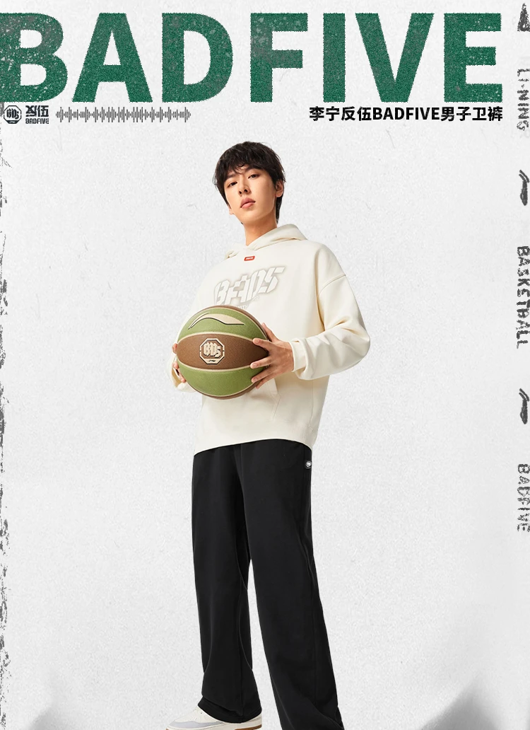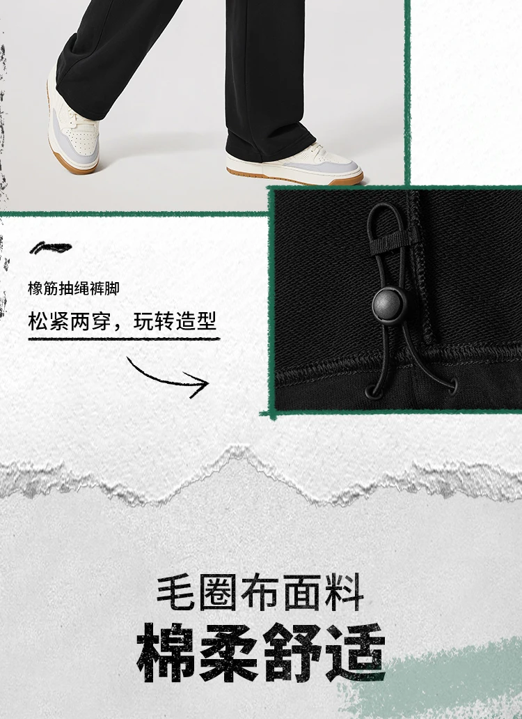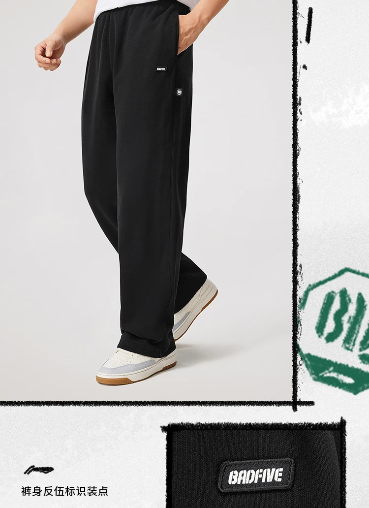 李宁反伍BADFIVE男子直筒宽松卫裤AKLW019