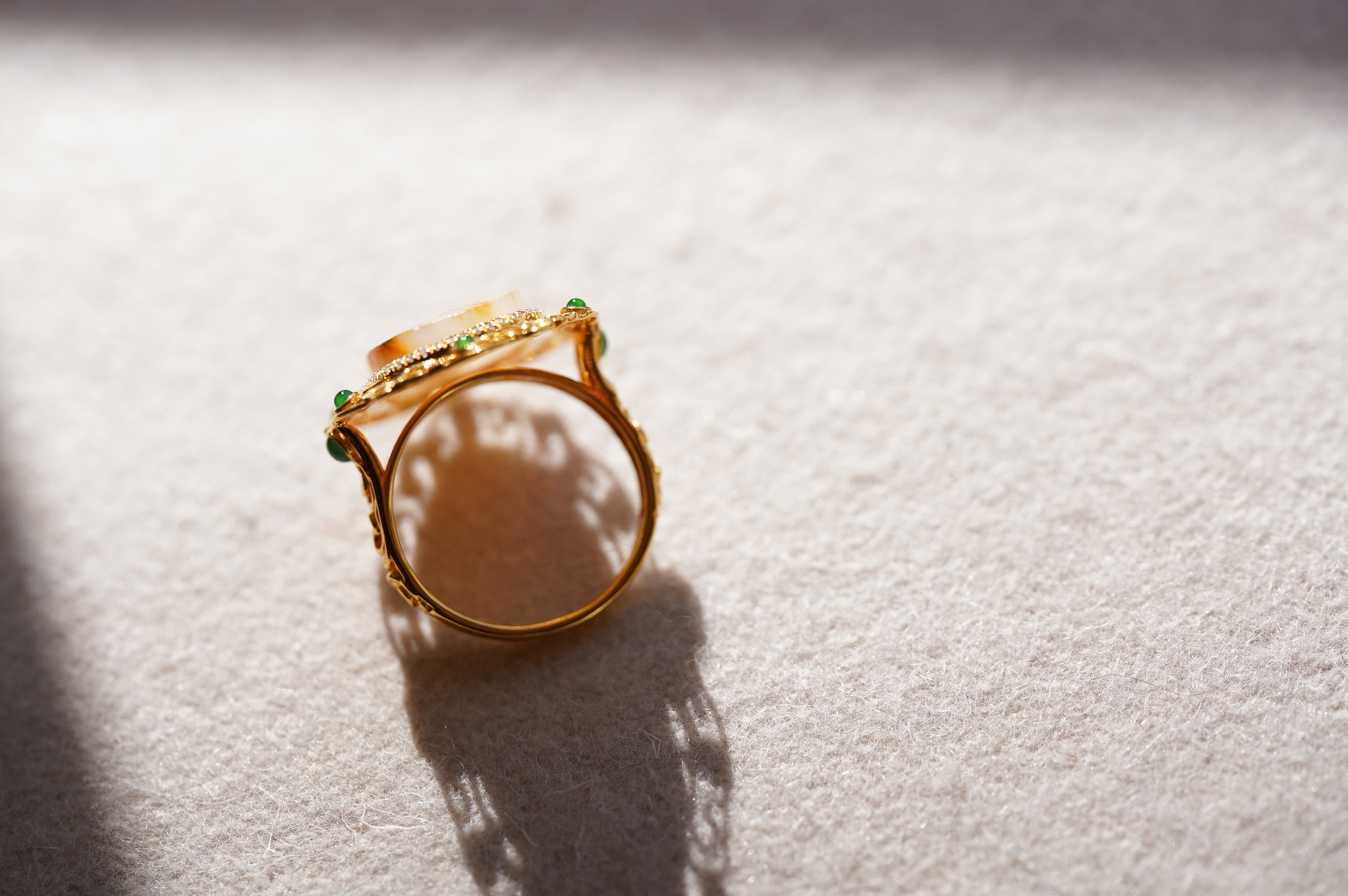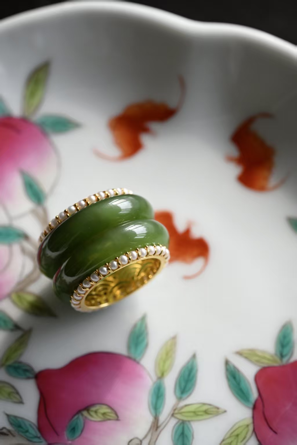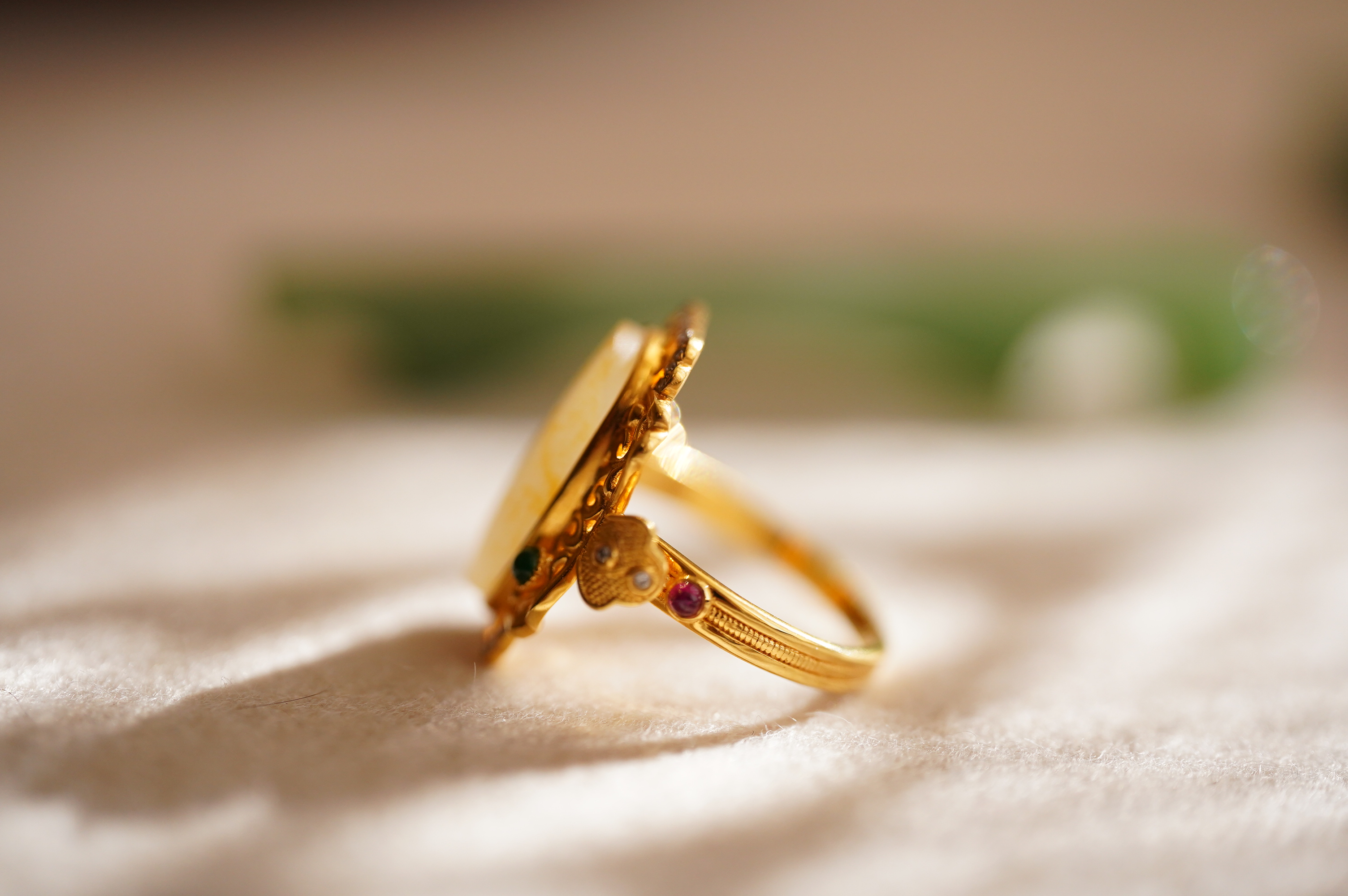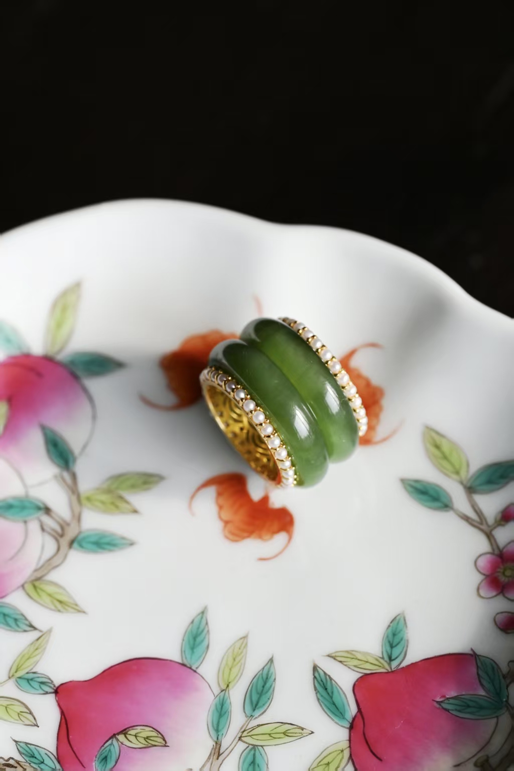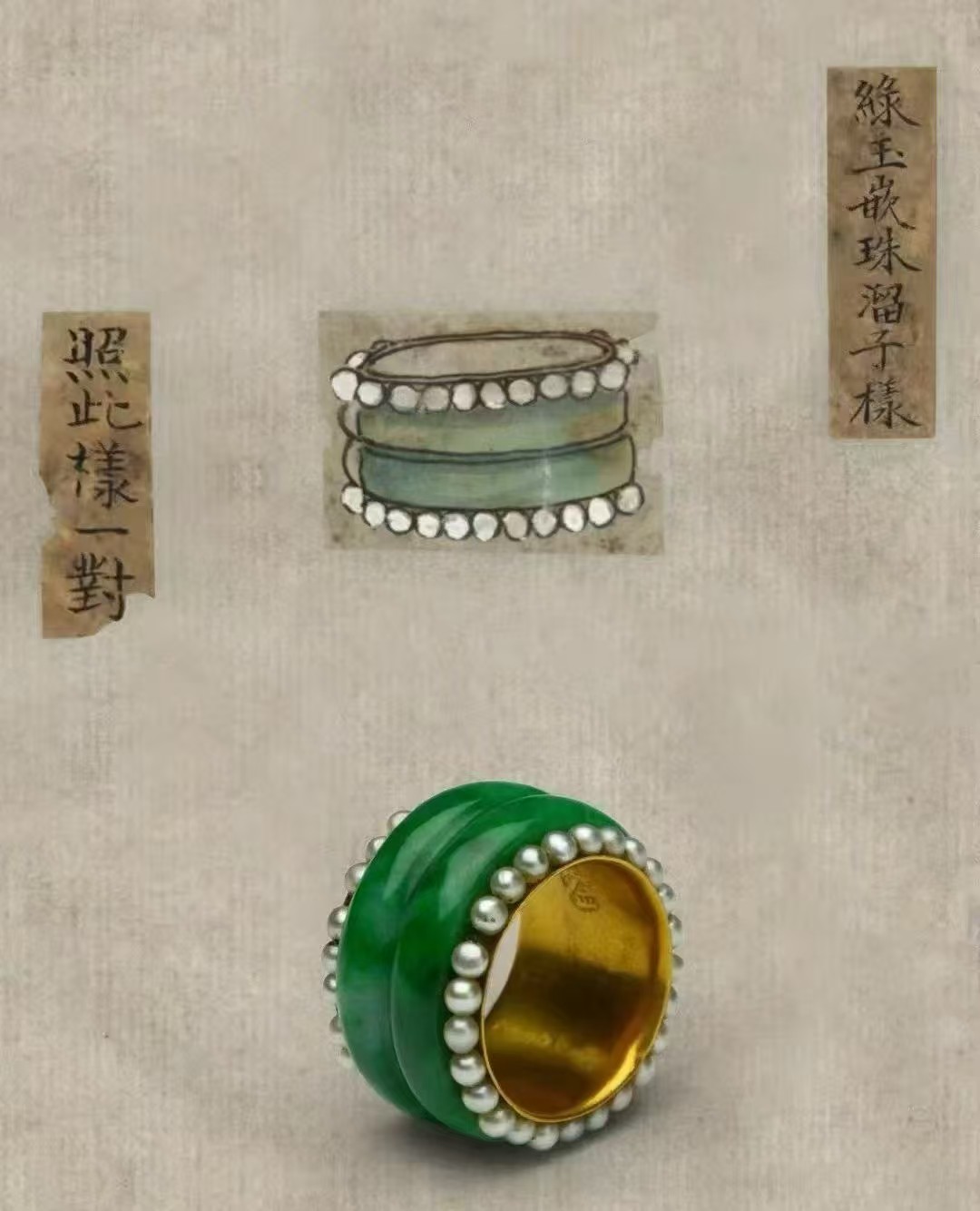 金里镶翠嵌珠戒指,