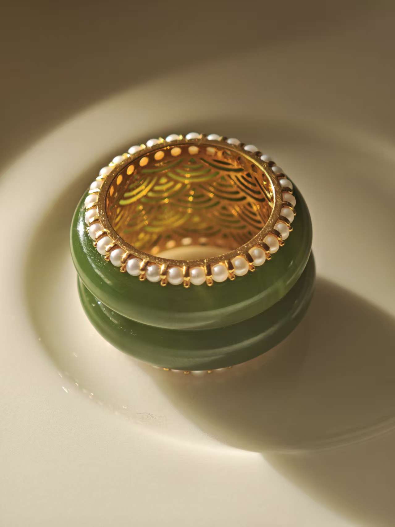 【本宫好事成双 · 金里镶翠嵌珠戒指】