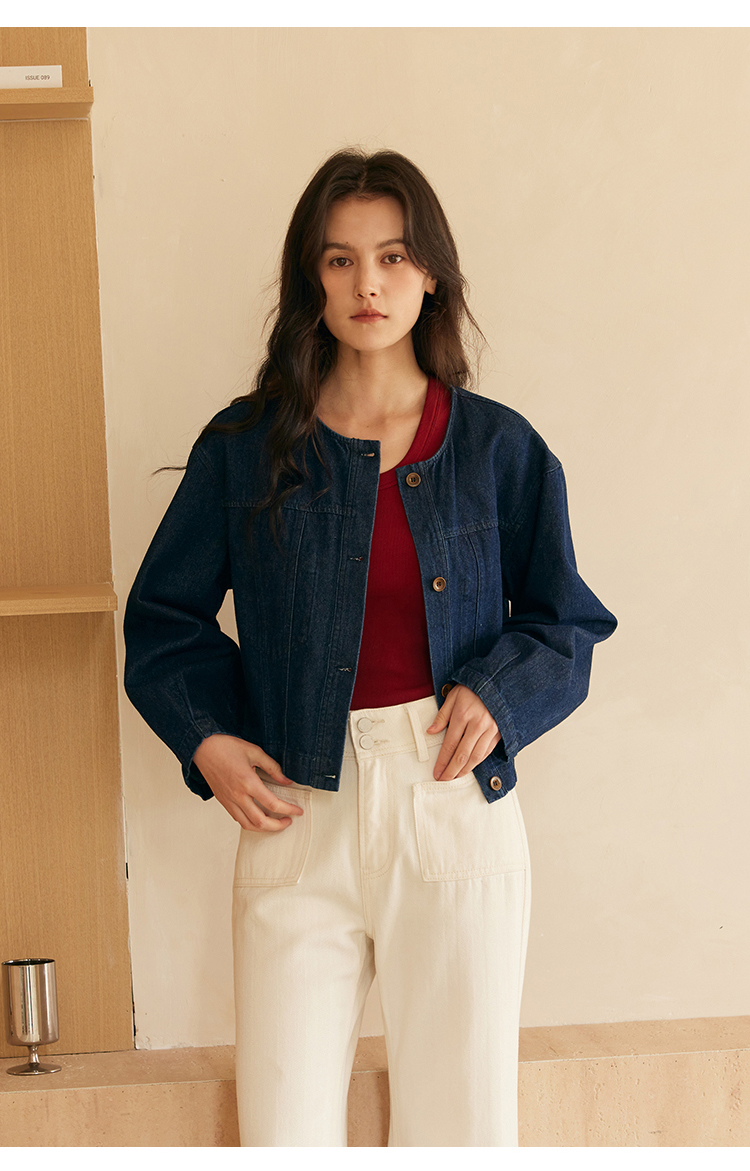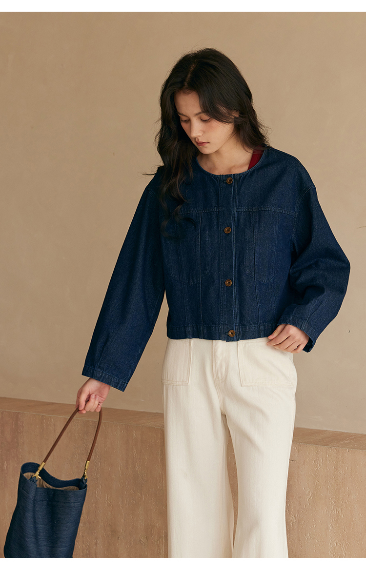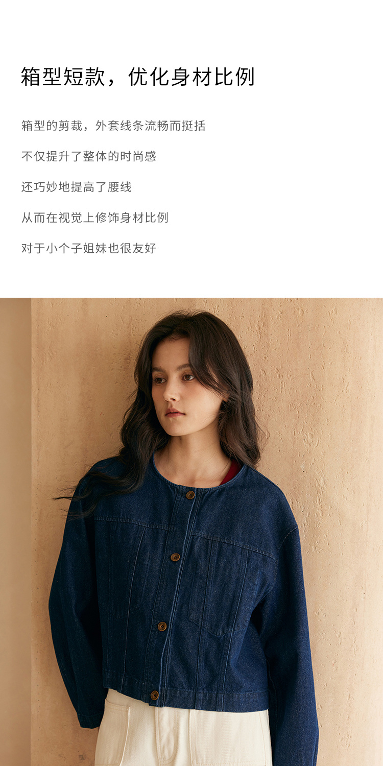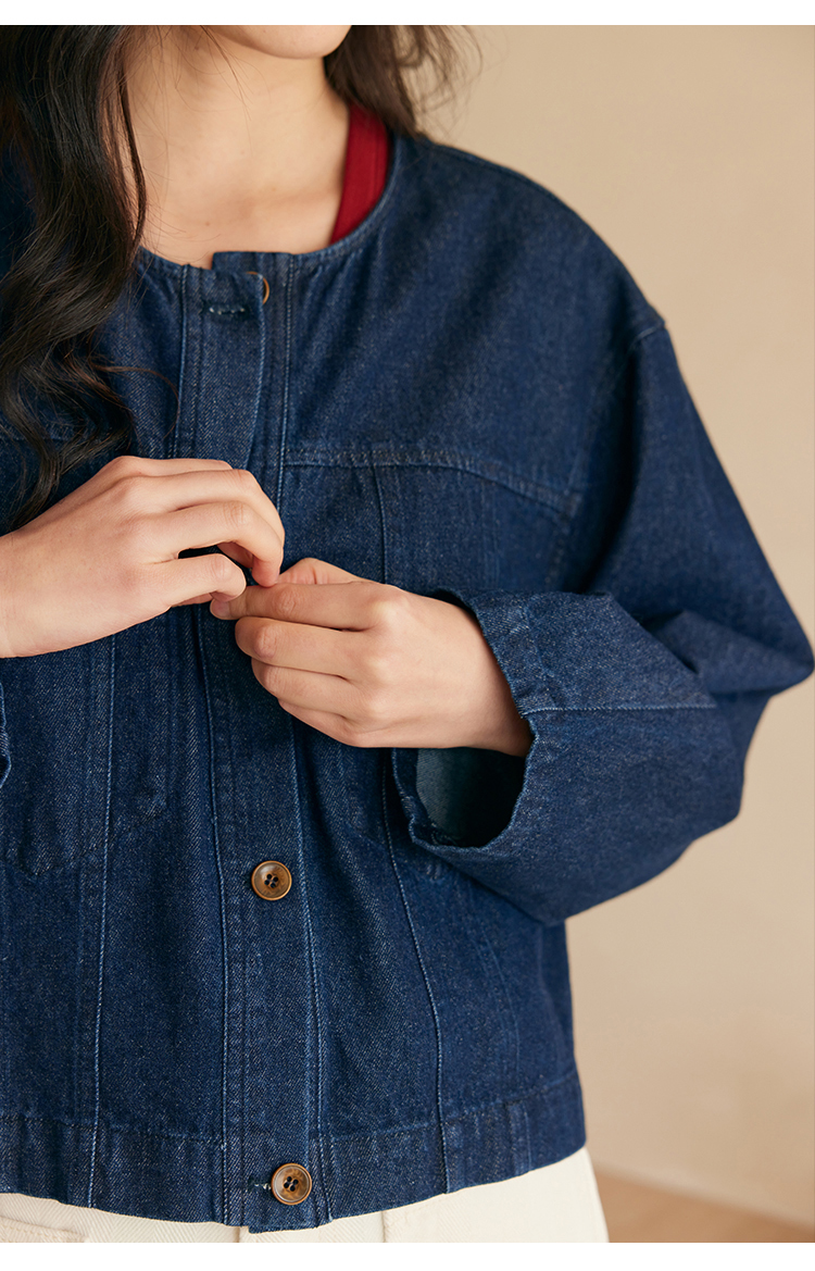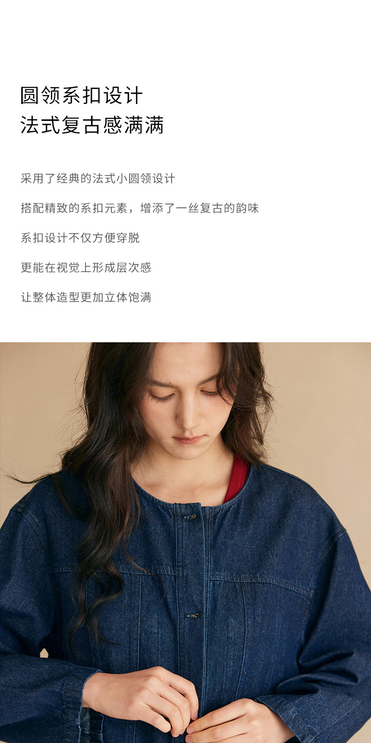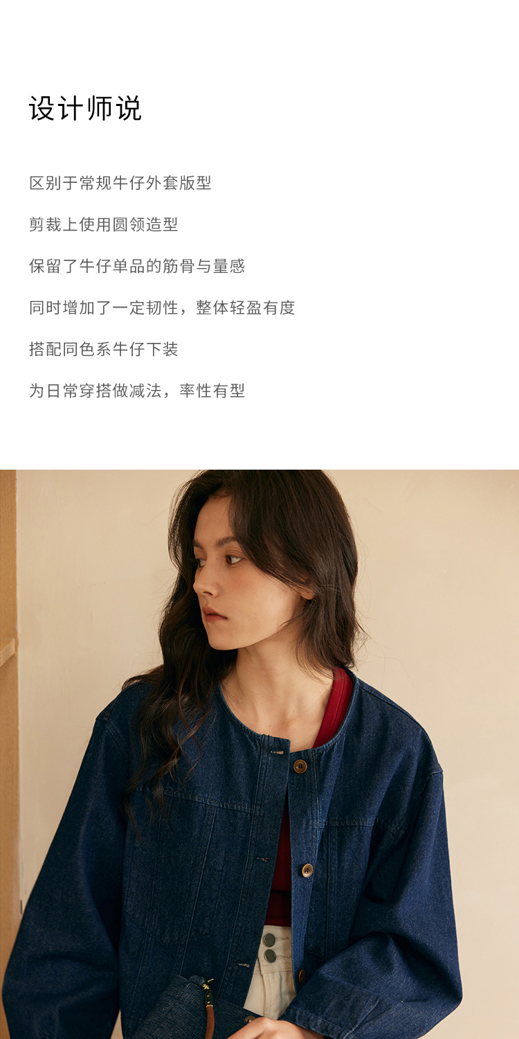 HeyDress复古牛仔外套女春秋新款圆领设计感宽松休闲短款蓝色上衣