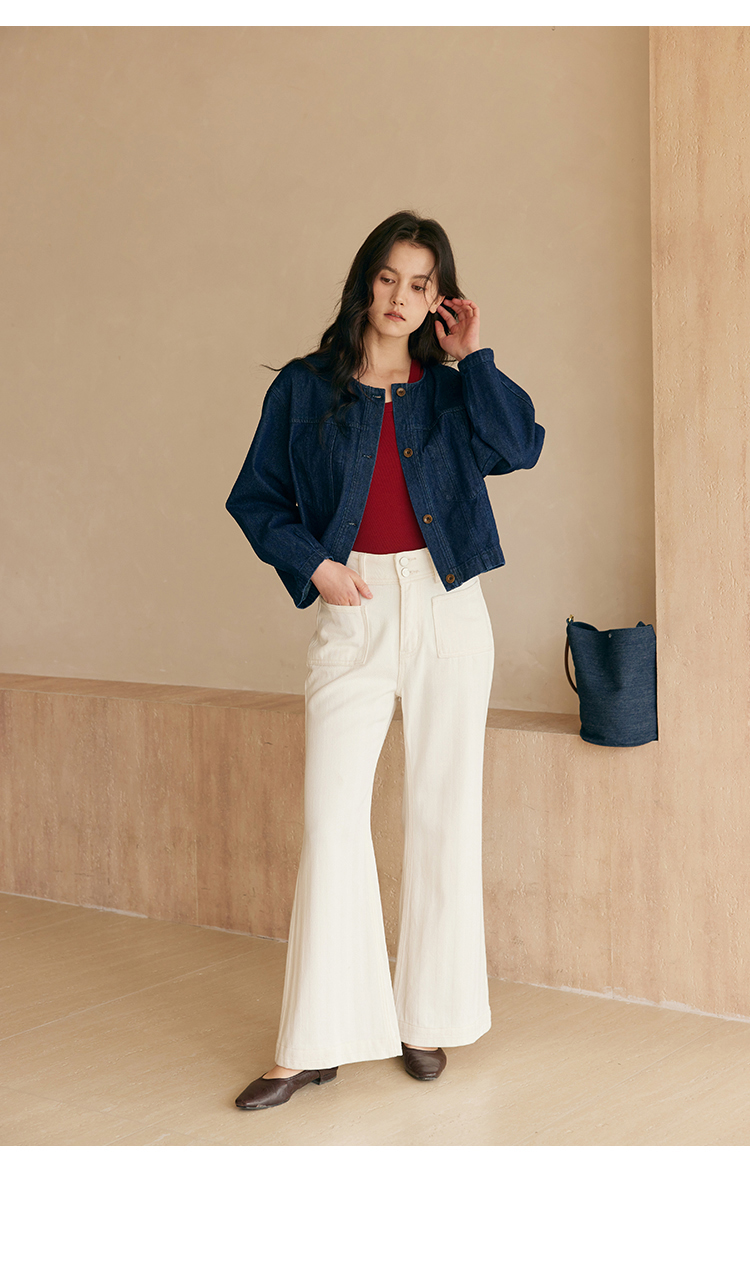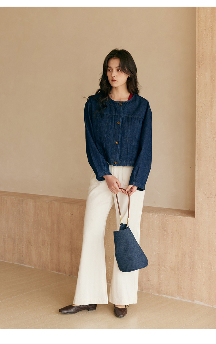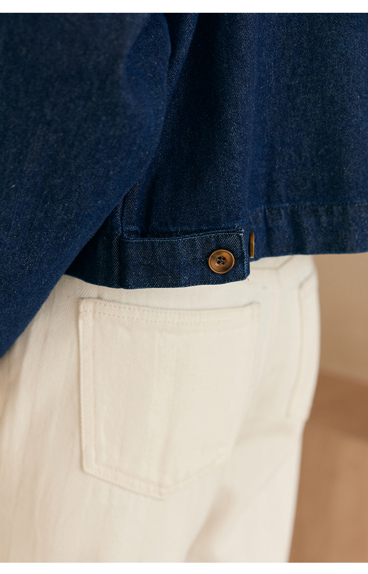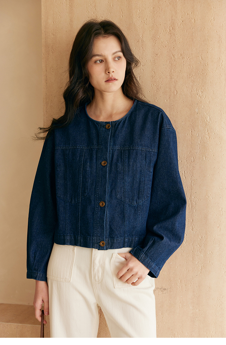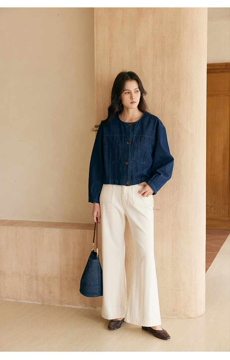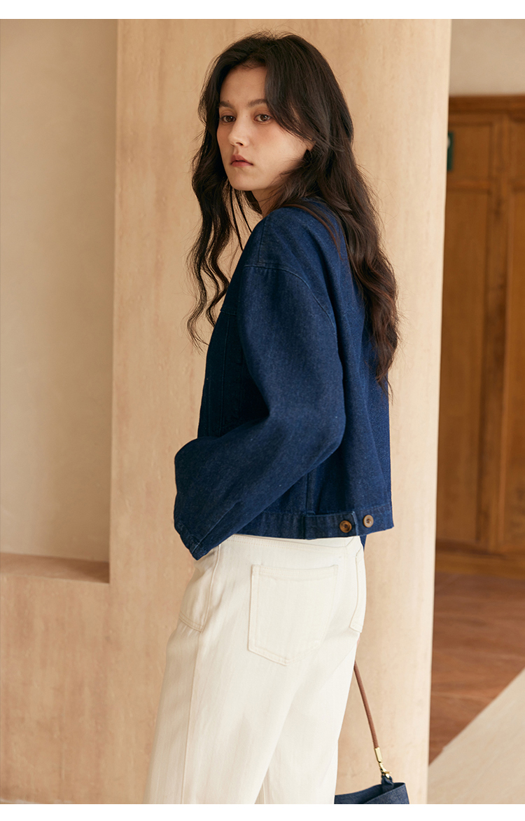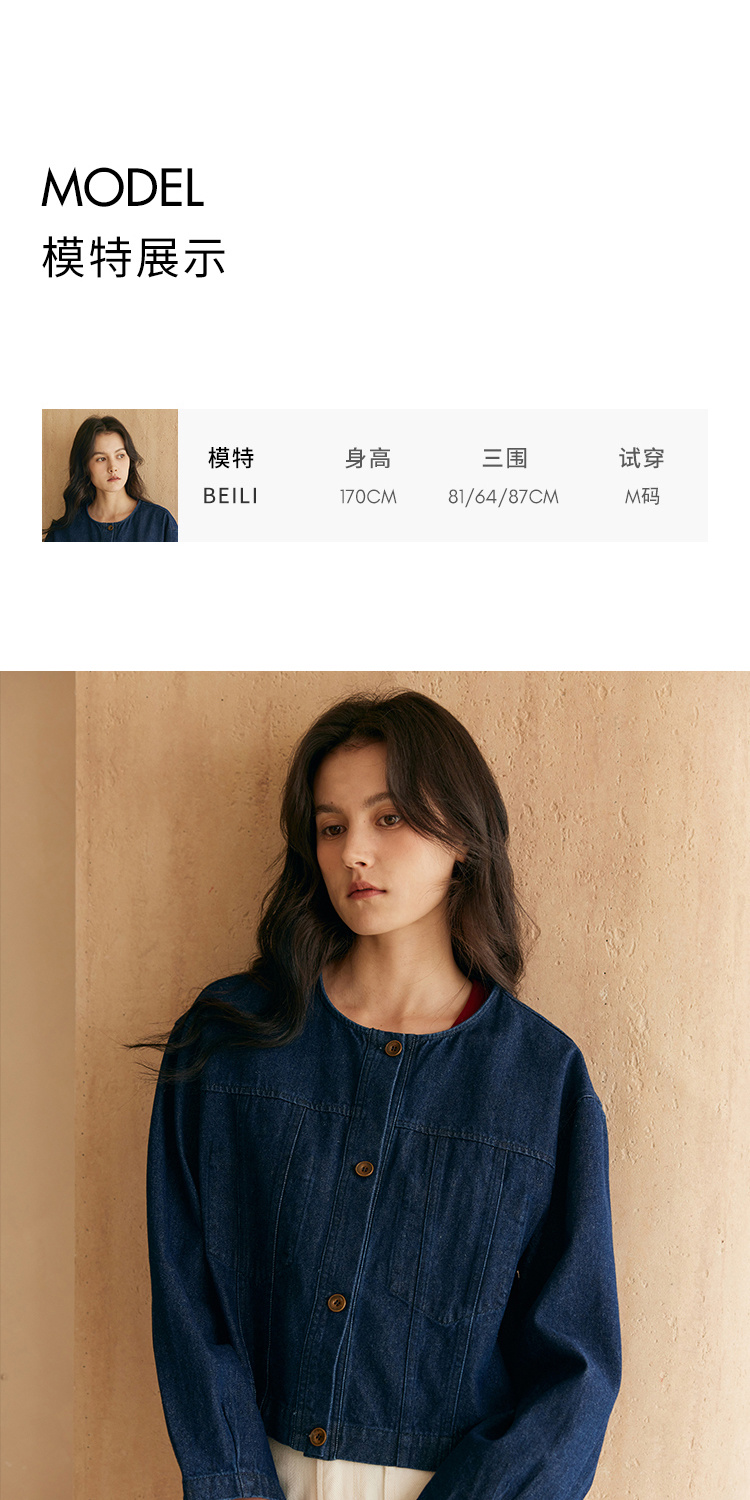 HeyDress复古牛仔外套女春秋新款圆领设计感宽松休闲短款蓝色上衣
