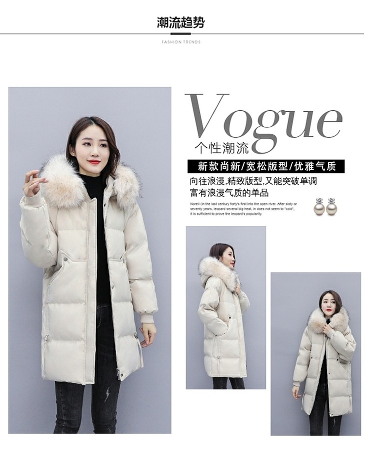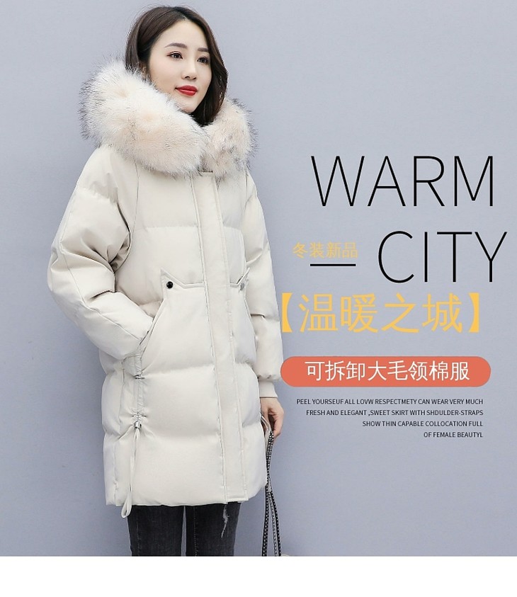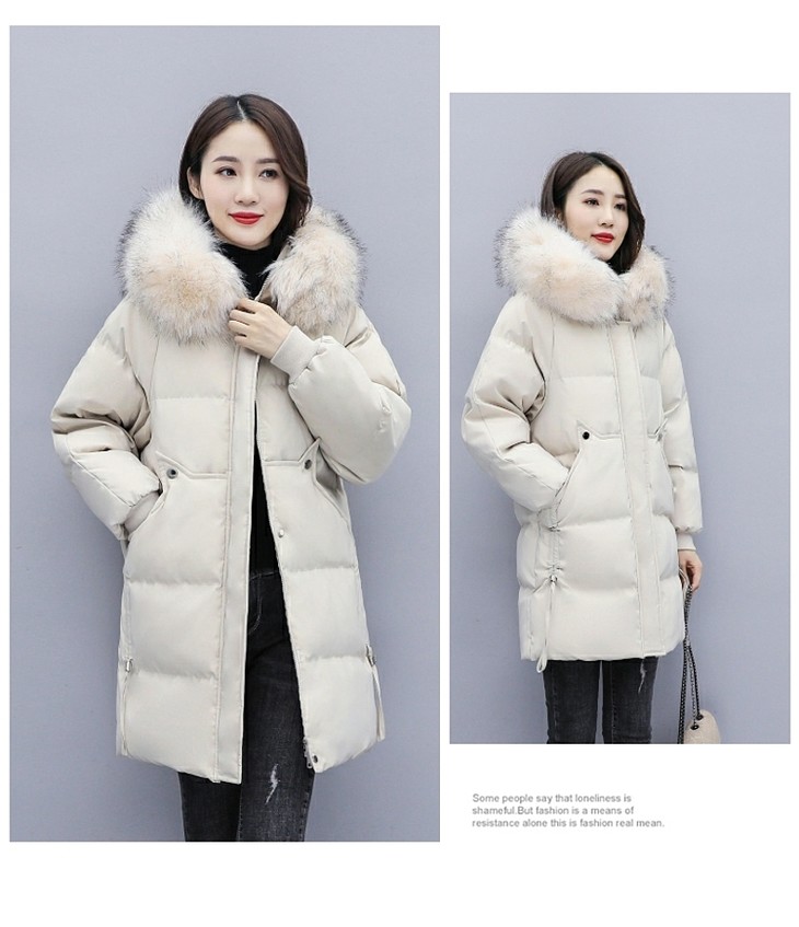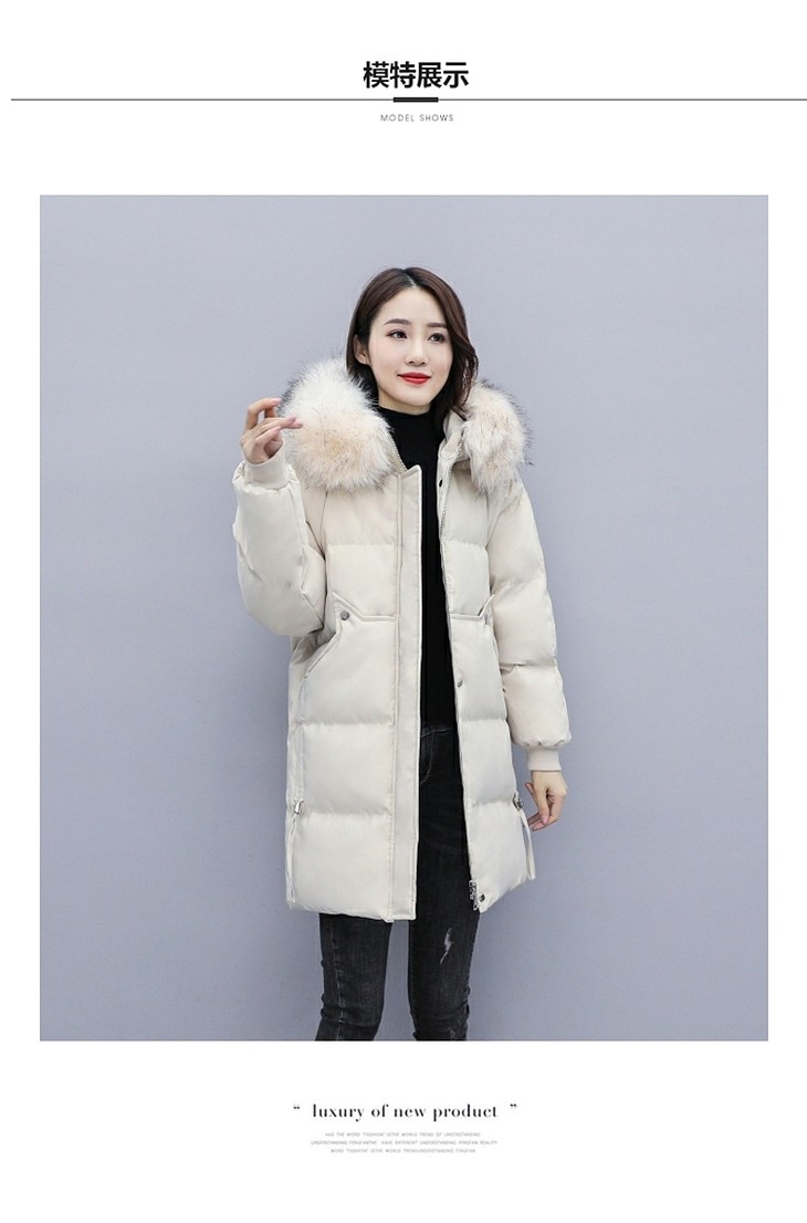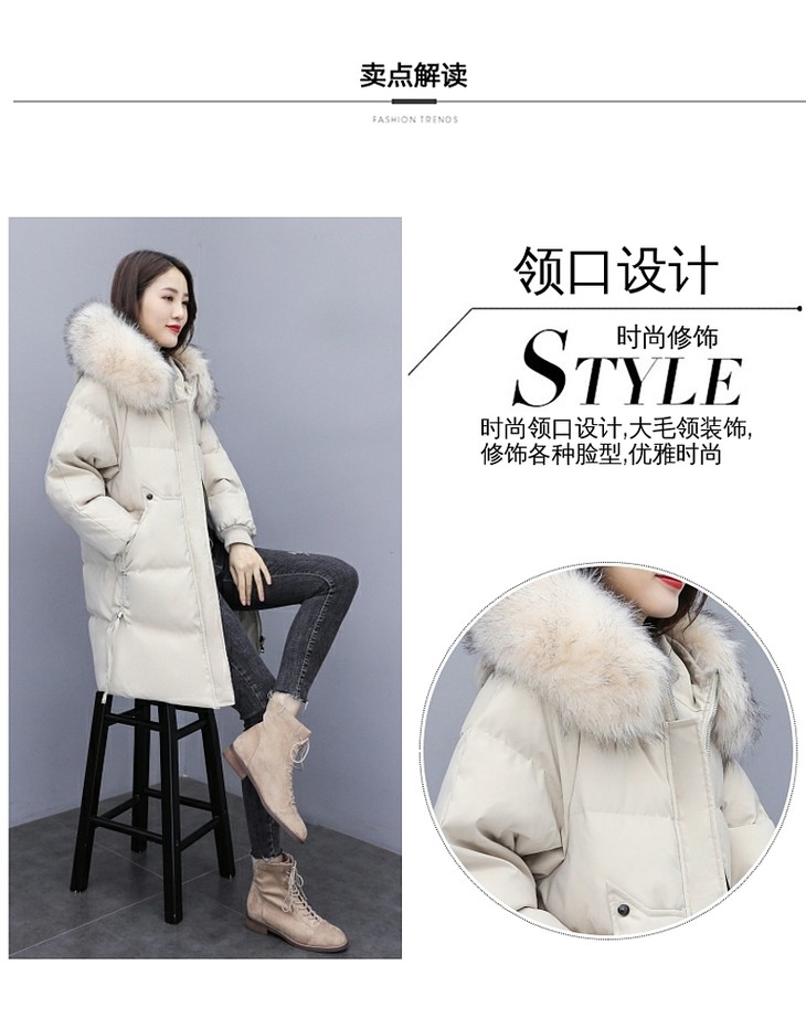 CQYHY209冬季新款中长款加厚chic羽绒棉衣女宽松过膝大毛领棉服外套潮