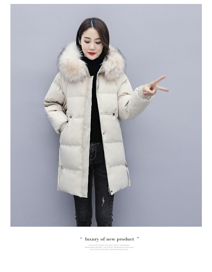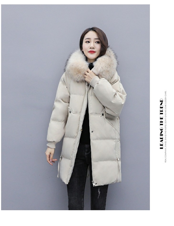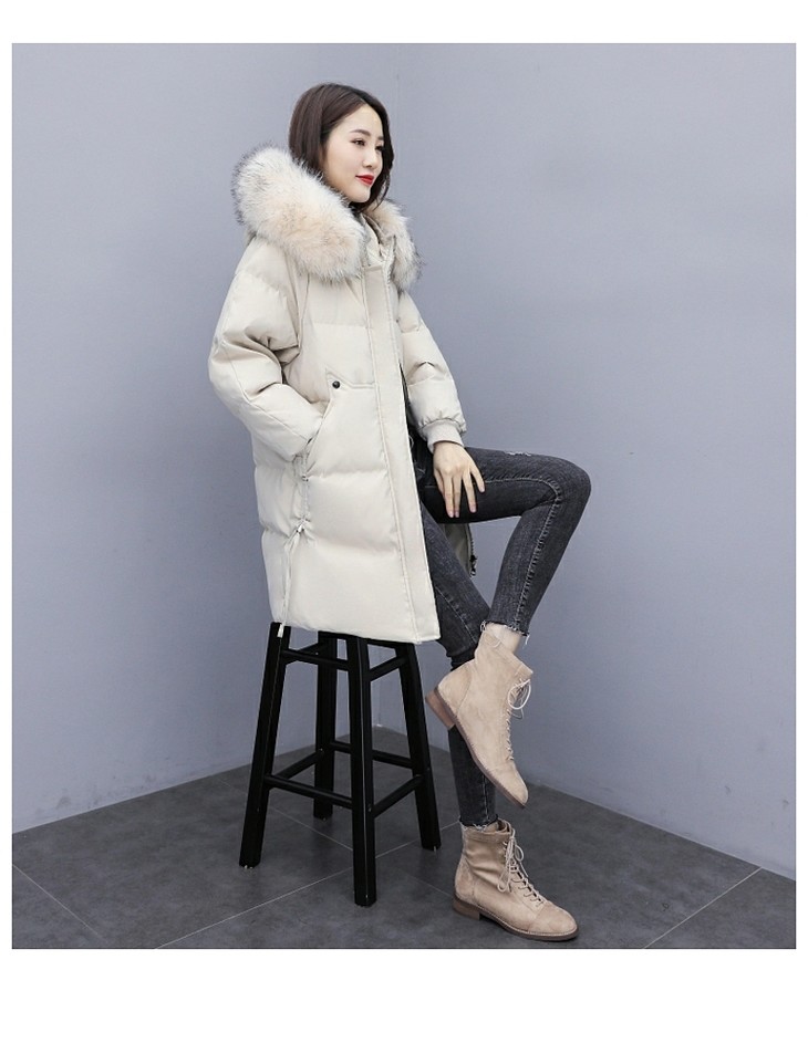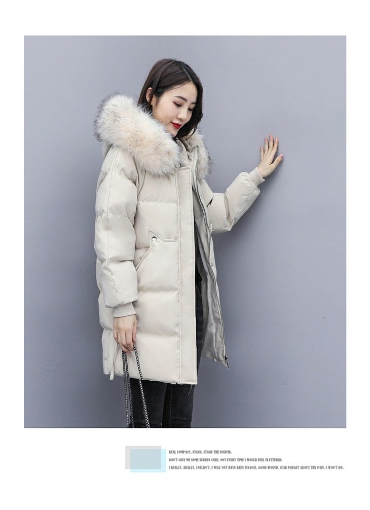 CQYHY209冬季新款中长款加厚chic羽绒棉衣女宽松过膝大毛领棉服外套潮
