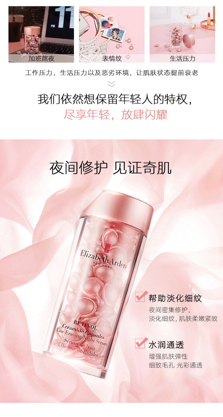 伊丽莎白雅顿ElizabethArden粉胶时空焕活夜间多效胶囊精华液60粒