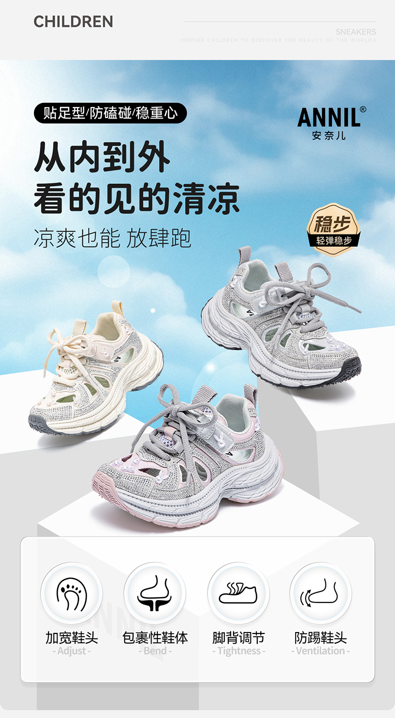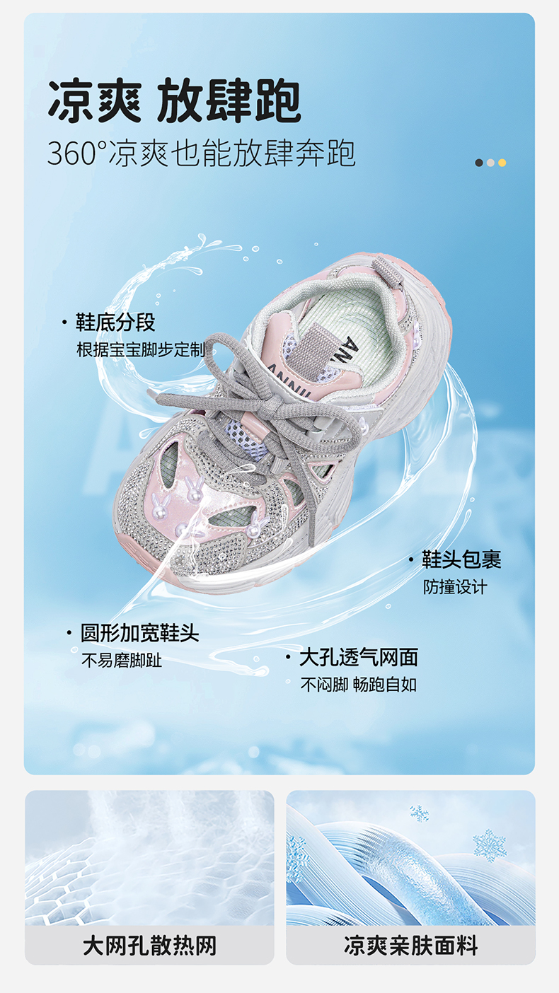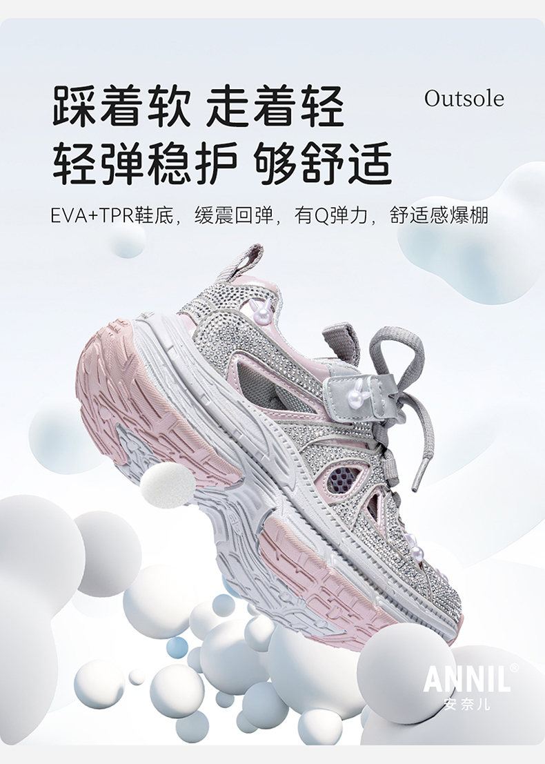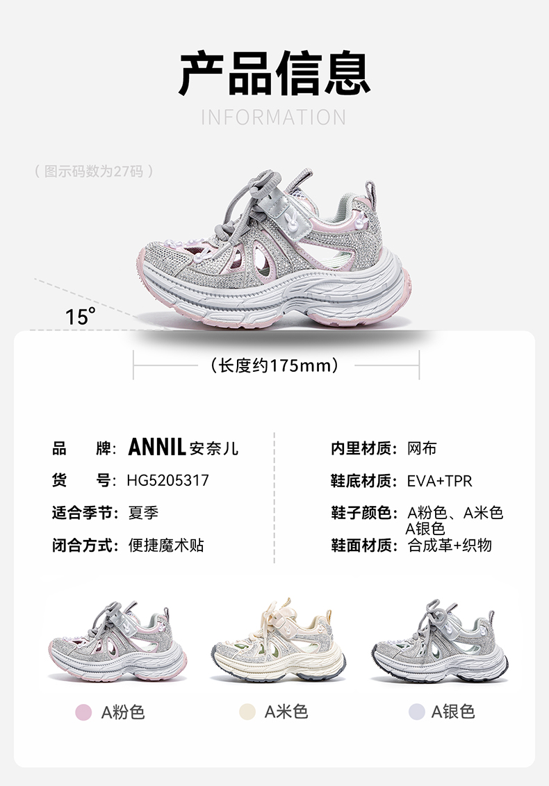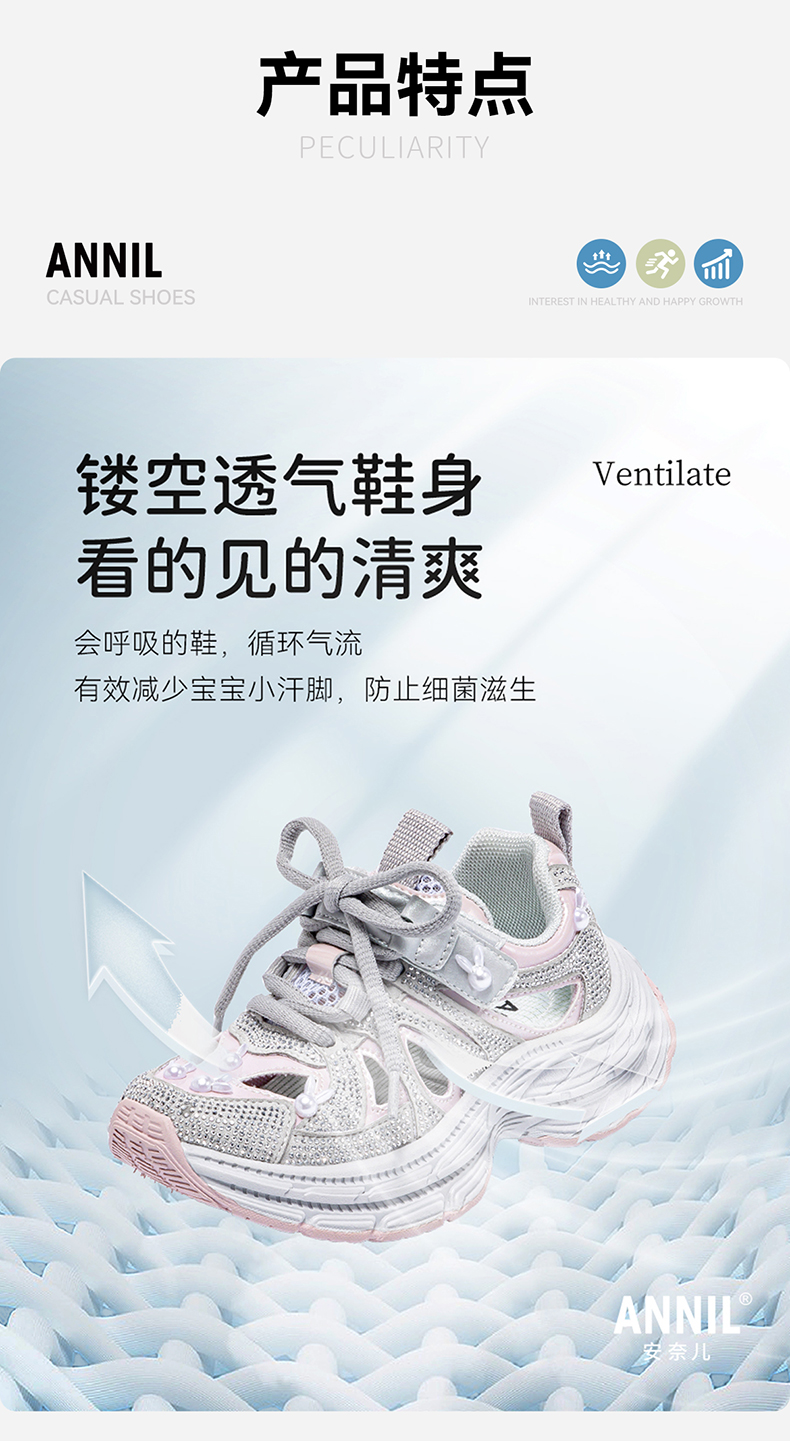 ANNIL/安奈儿夏季女童运动透气百搭耐磨镂空休闲鞋2025夏季新款HG5205317