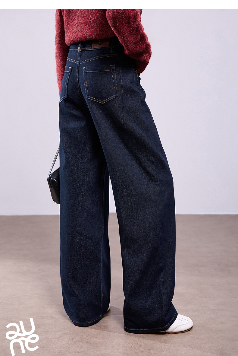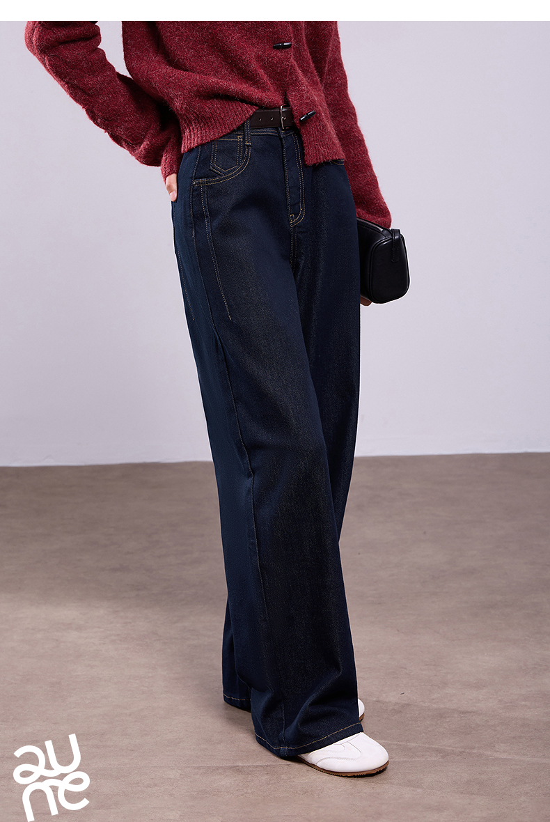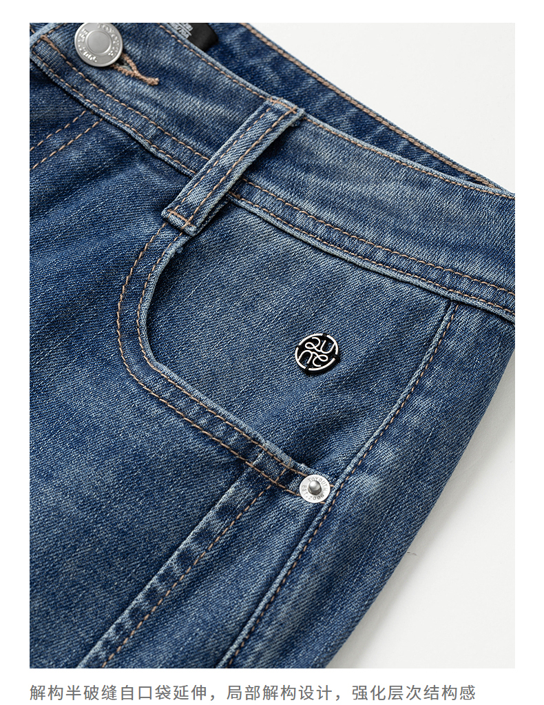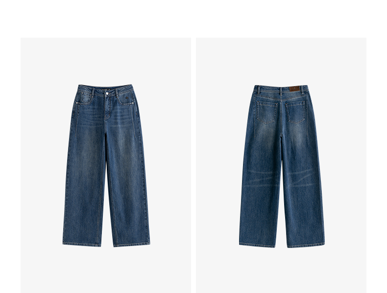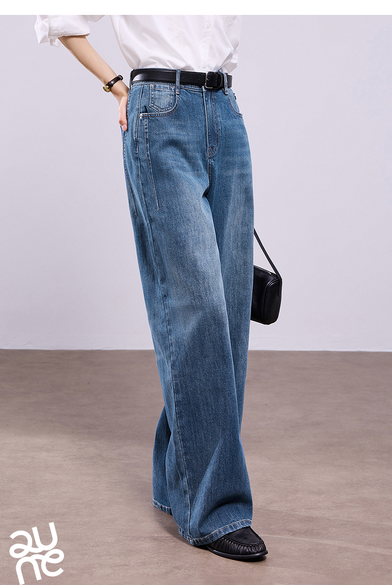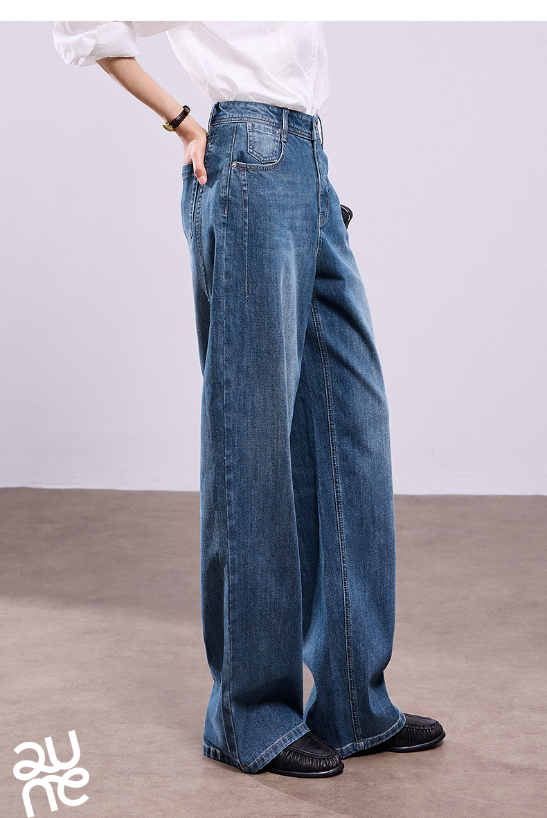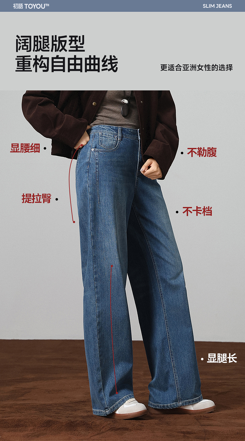 初语不易褪色牛仔裤女新款解构设计半破缝阔腿裤显瘦长裤
