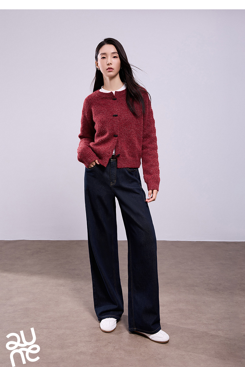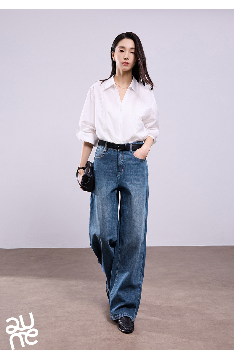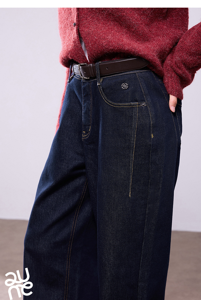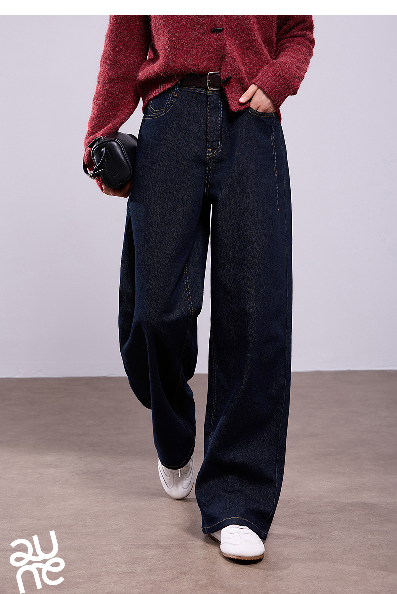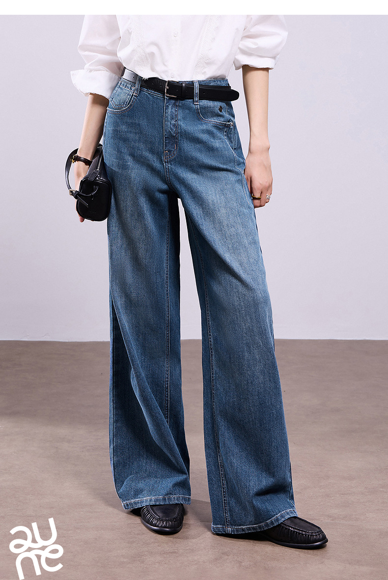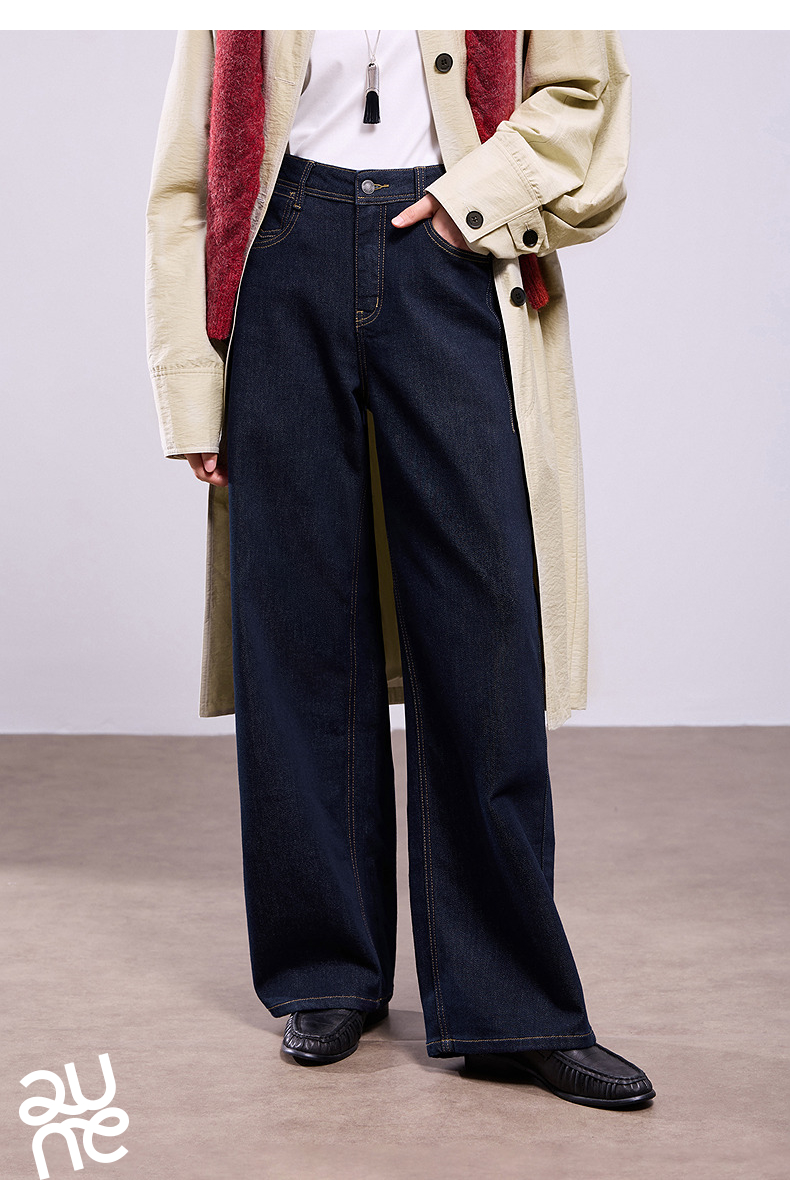 初语不易褪色牛仔裤女新款解构设计半破缝阔腿裤显瘦长裤