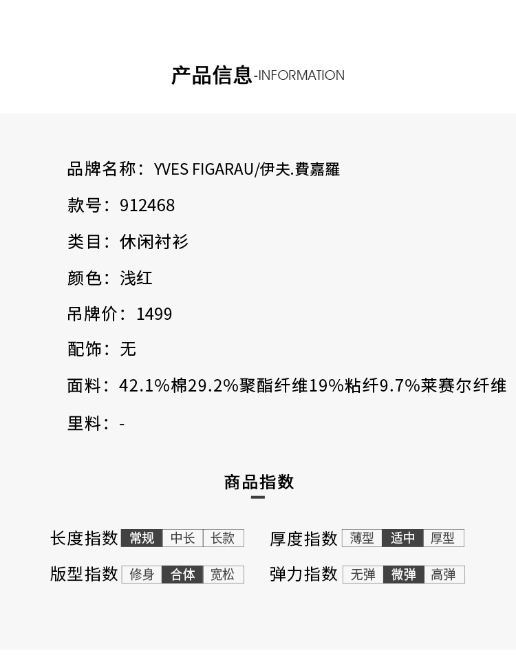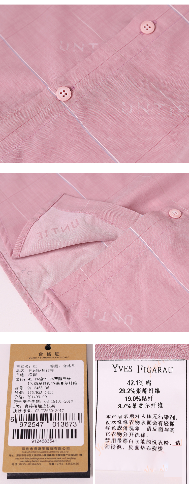 YvesFigarau伊夫·费嘉罗夏季新款简约舒适透气短袖休闲衬衫912468