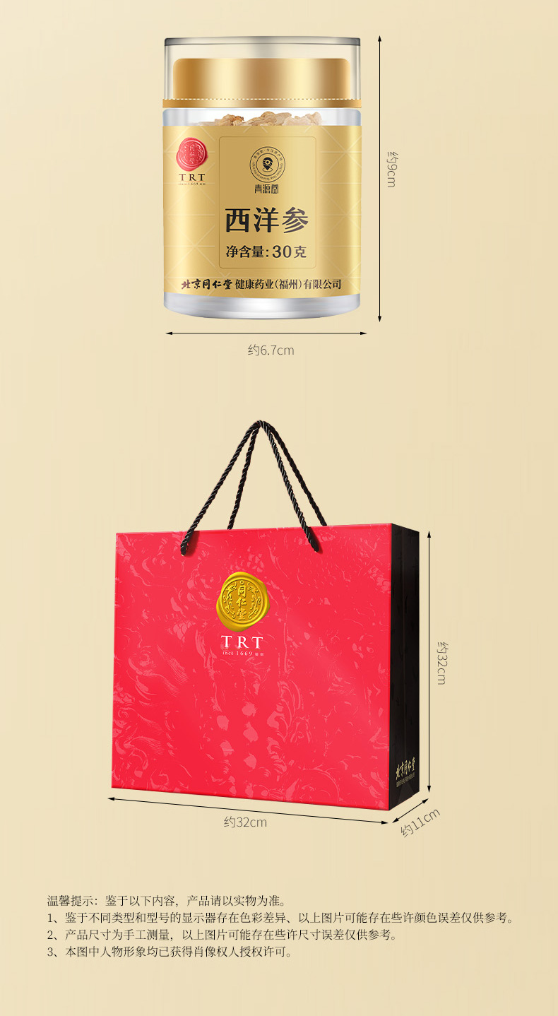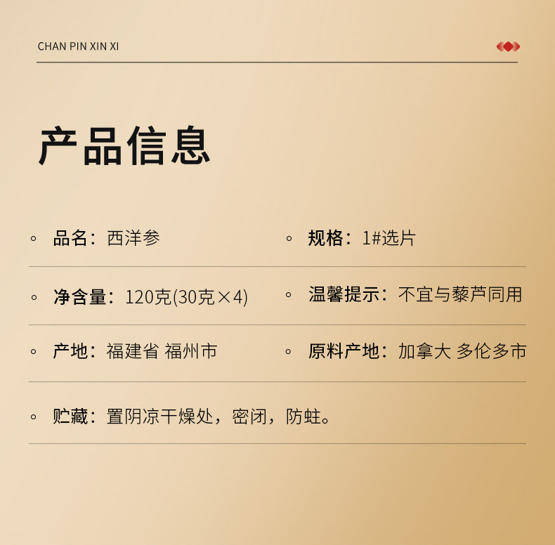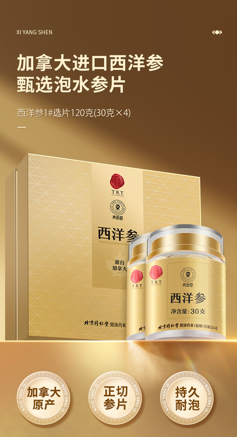 【正宗同仁堂品牌】北京同仁堂 青源堂 加拿大西洋参1#选片 1.6-2.0cm 120g(30×4) 优质切片 手工筛选 SY