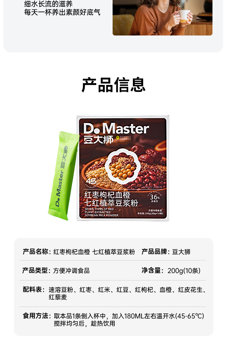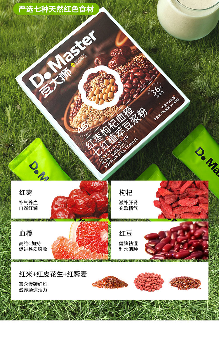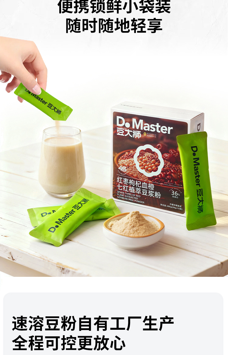 【秒杀】【29.9元2盒】豆大狮红枣枸杞血橙七红植物萃豆浆粉黄芪党参植萃豆浆粉小米南瓜猴头菇七黄植萃豆浆粉200g