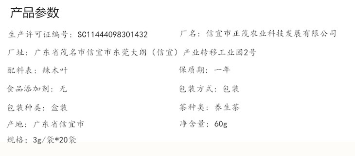 信宜市特产 赋益堂 辣木茶 盒装 3g/袋*20袋