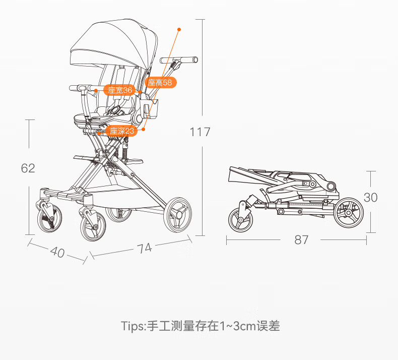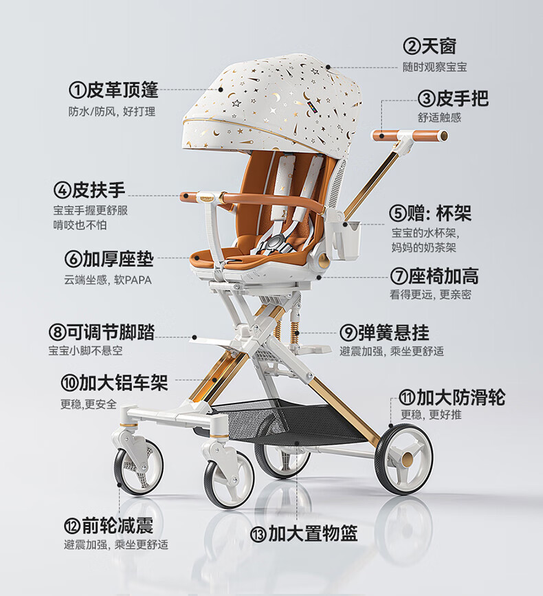 playkids普洛可X6-4遛娃神器可坐可躺睡婴儿折叠高景观溜娃手推车