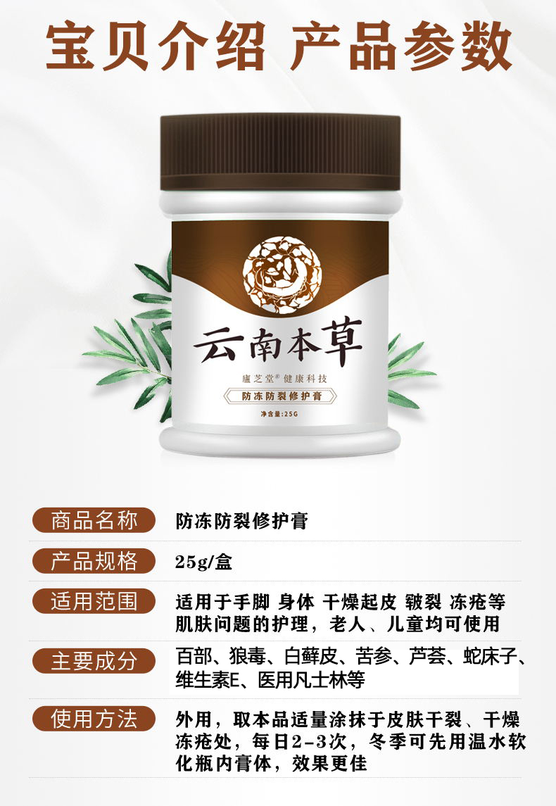 【下单即赠护手霜】庐芝堂云南本草防冻防裂修复膏富含维生素保湿补水强韧肌肤多种中药成分滋养保湿