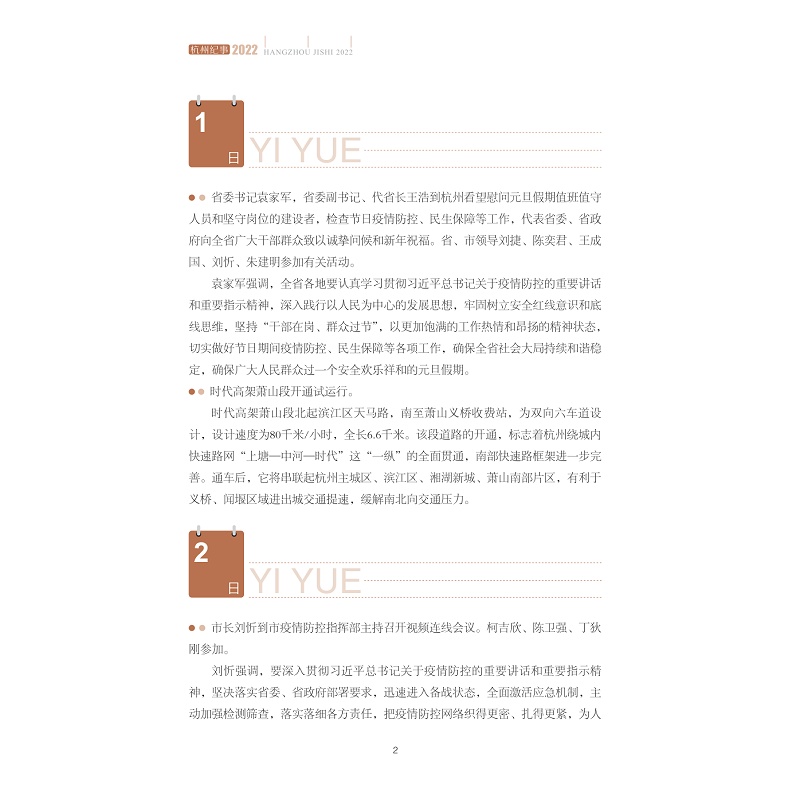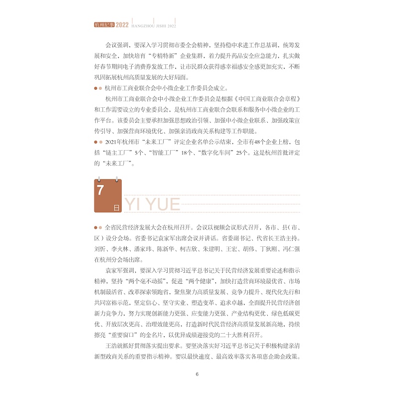 《杭州纪事(2022)》以时间为序,记录2022年杭州市自然、经济、政治、文化、社会等方面的大事、要事和新事。本书坚持以马克思列宁主义、毛泽东思想、邓小平理论、“三个代表”重要思想、科学发展观、习近平新时代中国特色社会主义思想为指导,坚持辩证唯物主义和历史唯物主义的立场、观点和方法,存真求实,全面记录2022年杭州市认真贯彻落实习近平总书记对浙江、杭州工作的重要指示精神,在中共杭州市委、杭州市人民政府正确领导下,深入推进“八八战略”在杭州的具体实践,高水平建设社会主义现代化国际大都市,争当浙江高质量发展建设共同富裕示范区城市范例的壮阔历程。