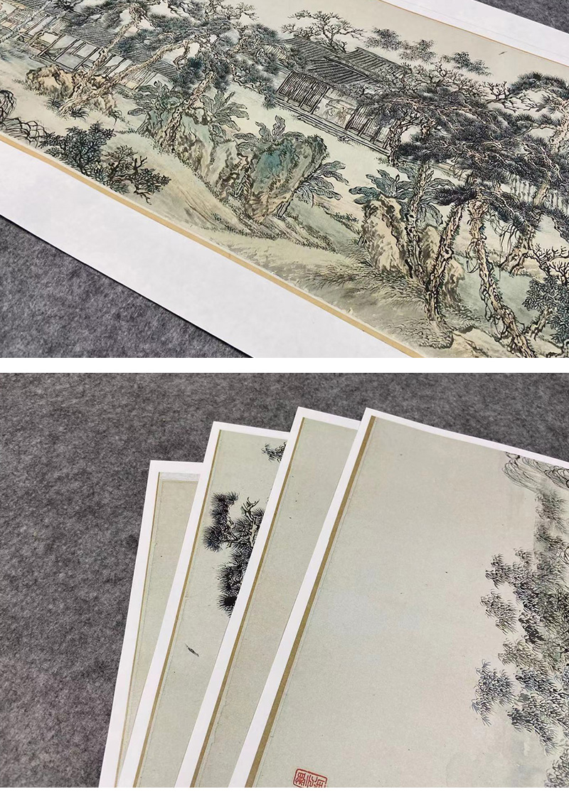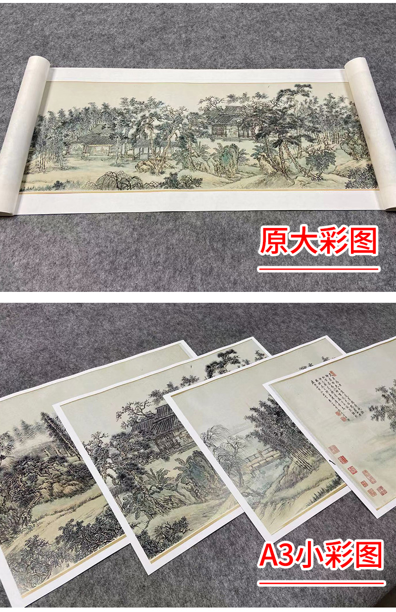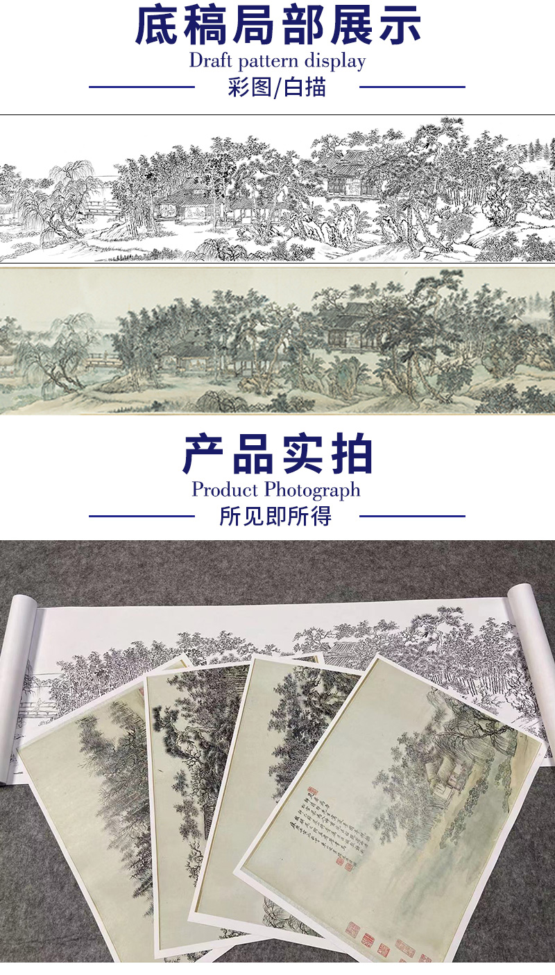 【长卷】工笔山水画白描底稿古画长卷王翬《松雪夏景图》多种白描尺寸可选G037