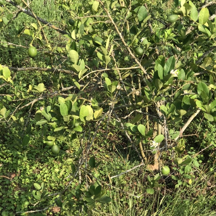 柠檬就种植凤梨地块旁边,2020年开始生态种植,不使用任何农药、化肥、除草剂,一直半野生粗放管理,不施肥,不浇水,甚至不套袋,只在每年杂草猛长的时节人工除除草。