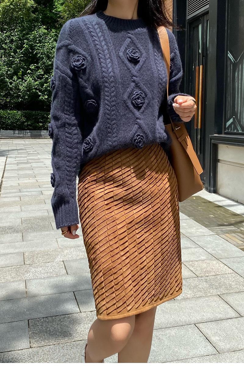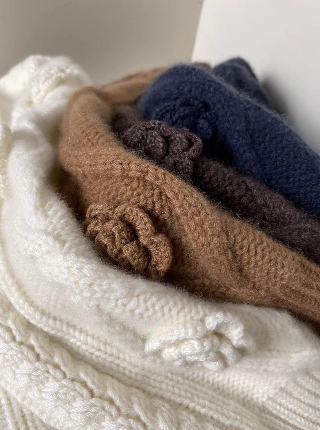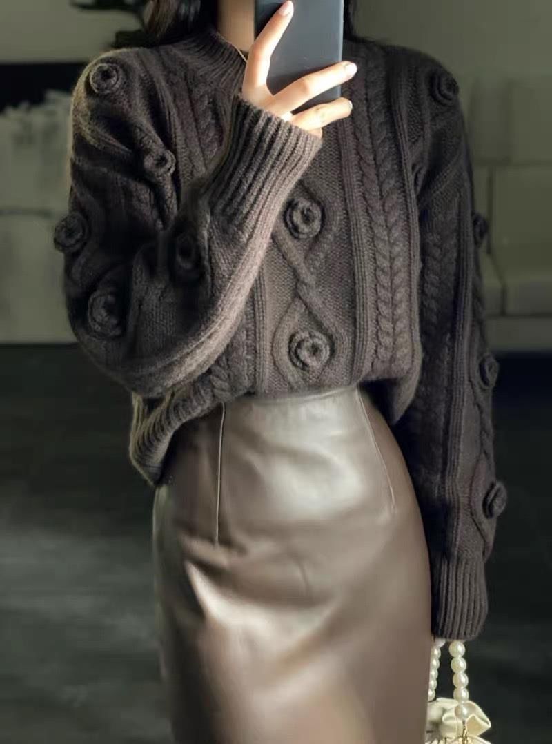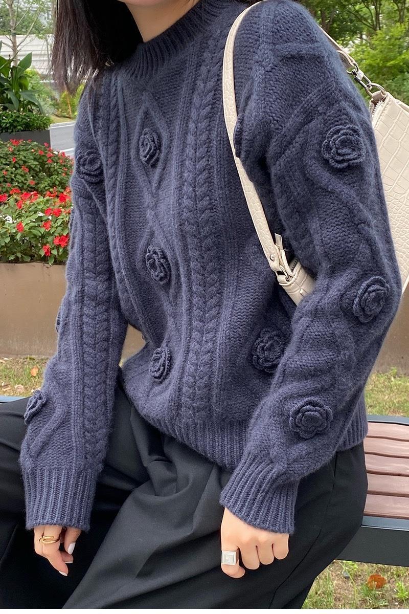 立体玫瑰钩花麻花套头毛衣女2021秋冬新款百搭慵懒风套头针织衫潮