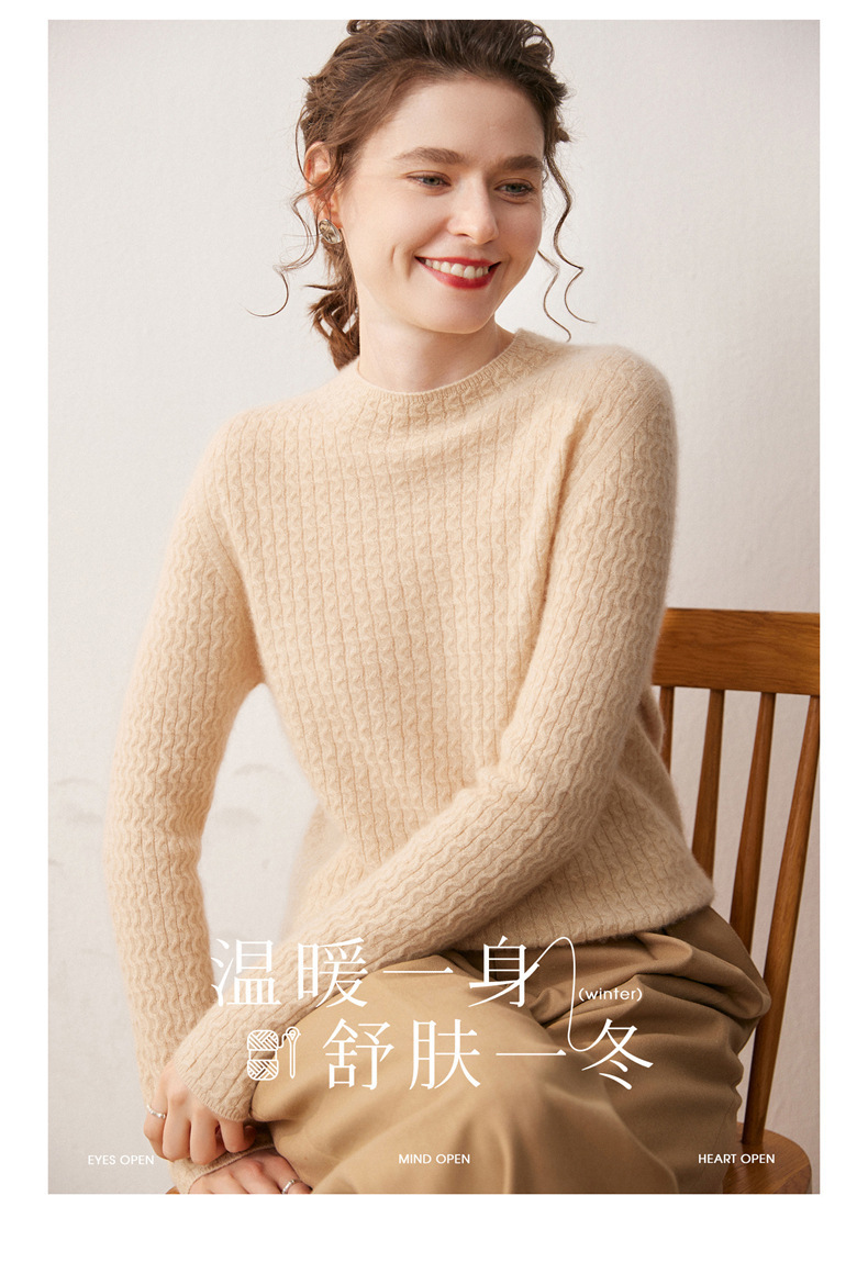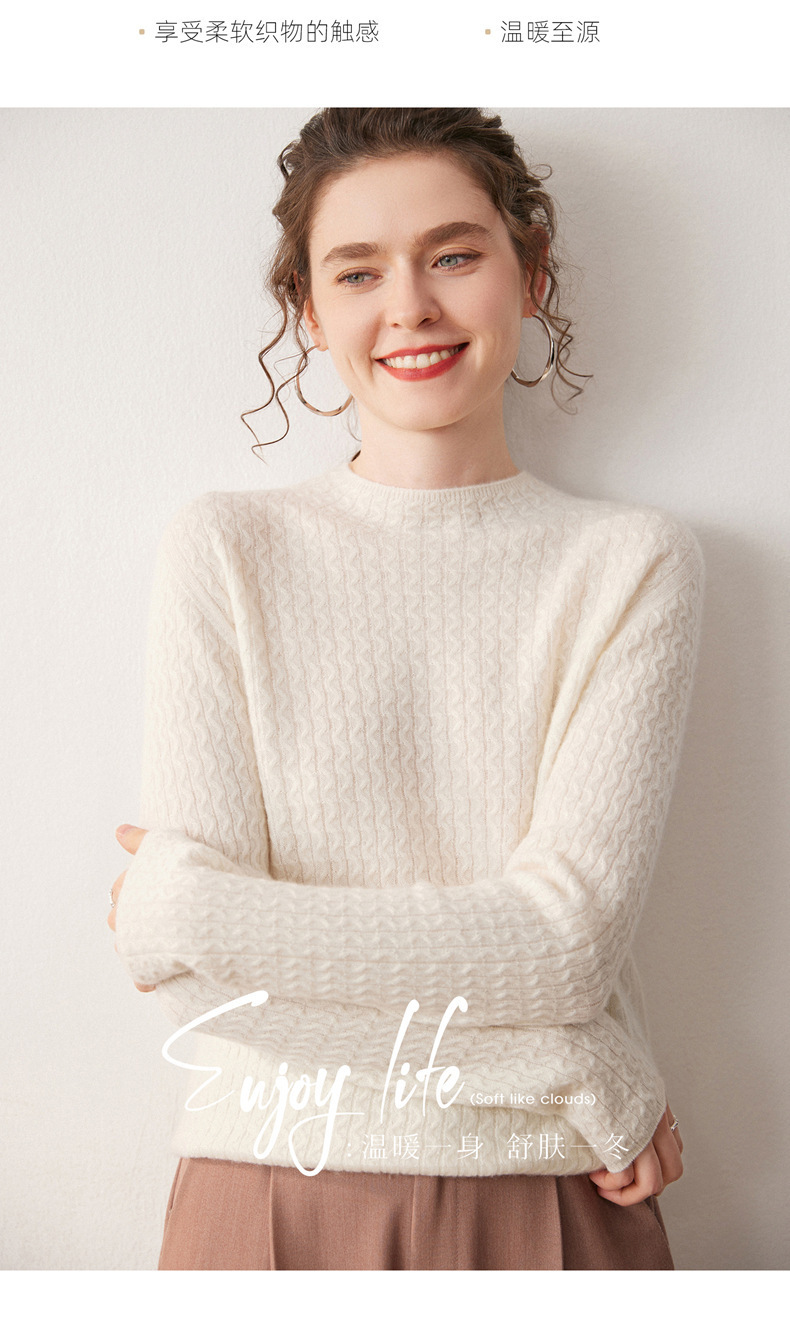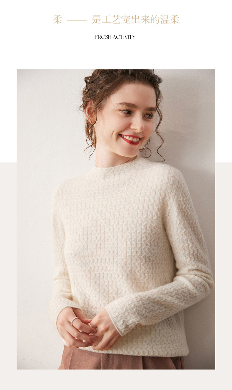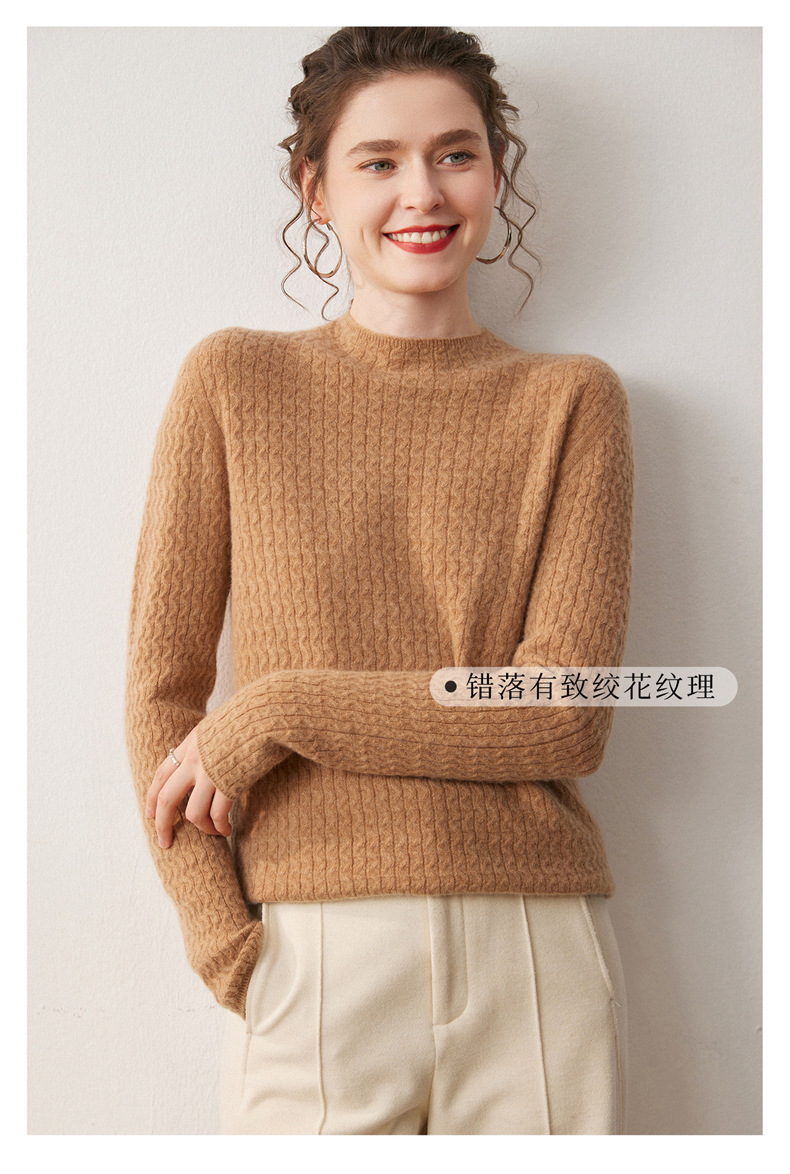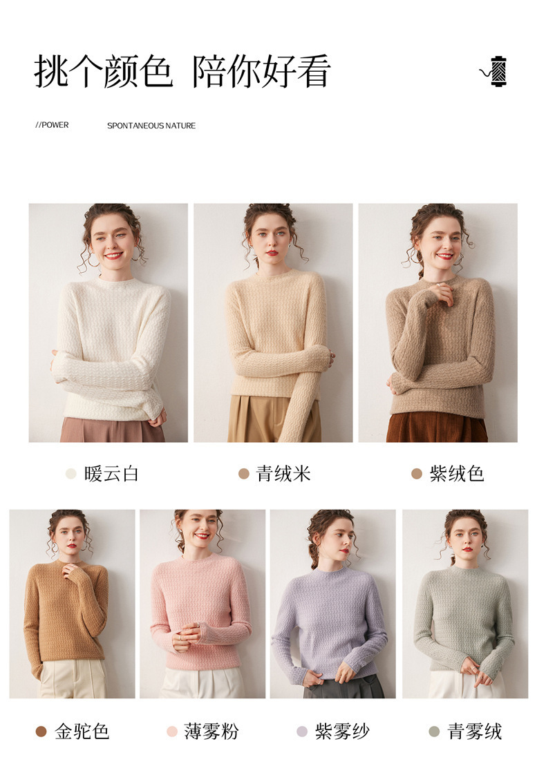 「自」全新升级【铂金会员441/天猫599/差价158】(11111)洛诗琳新款羊绒针织打底衫2025秋冬纯色半高领绞花针织毛衣