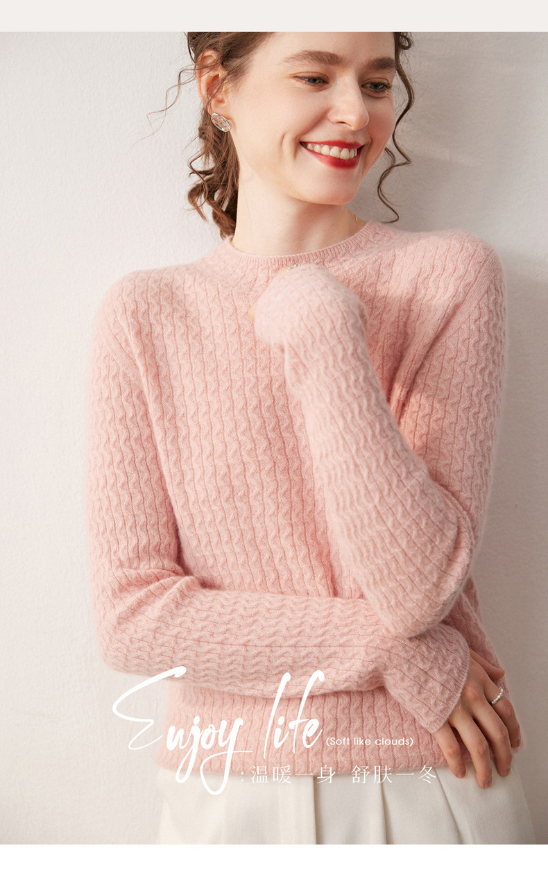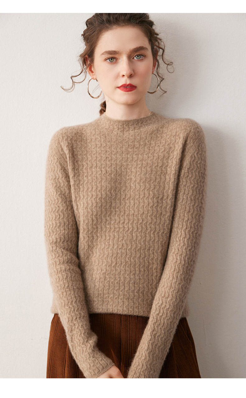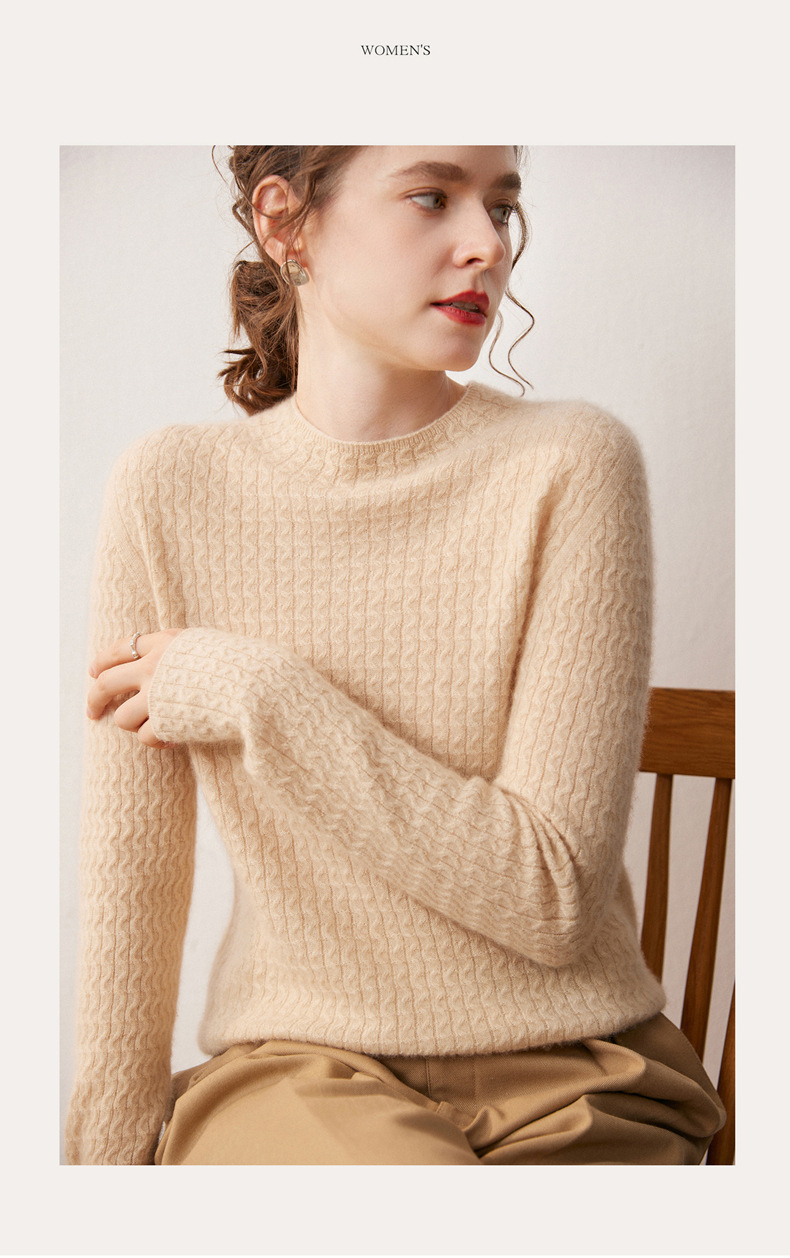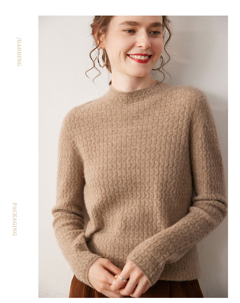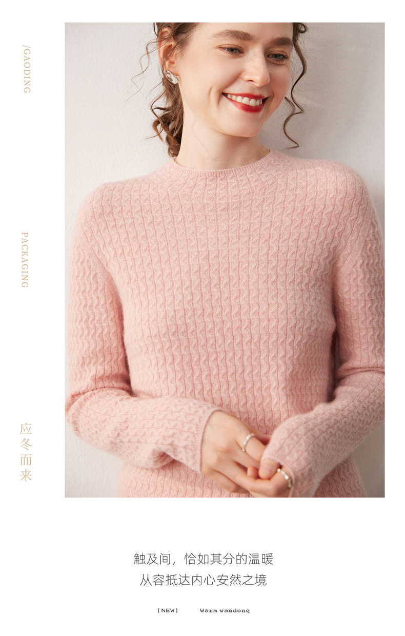 「自」全新升级【铂金会员441/天猫599/差价158】(11111)洛诗琳新款羊绒针织打底衫2025秋冬纯色半高领绞花针织毛衣