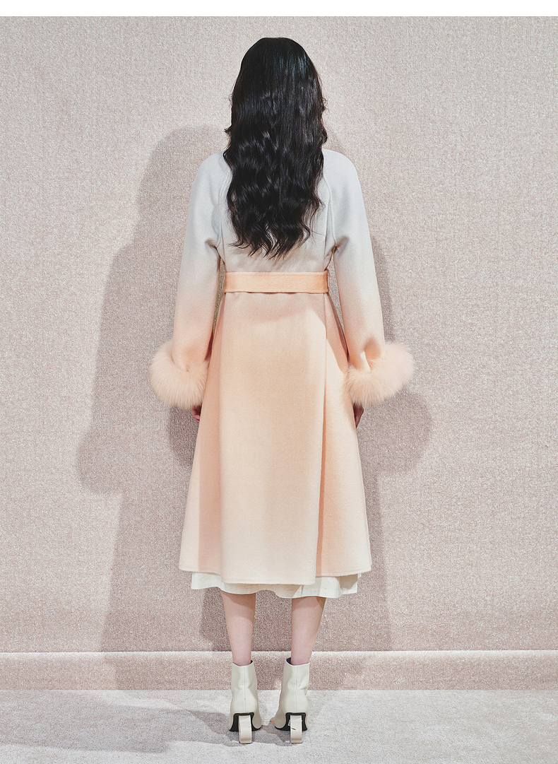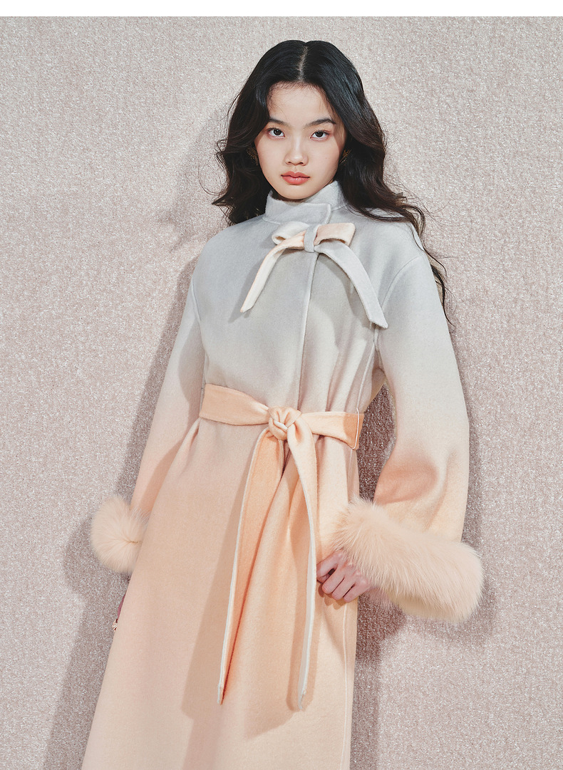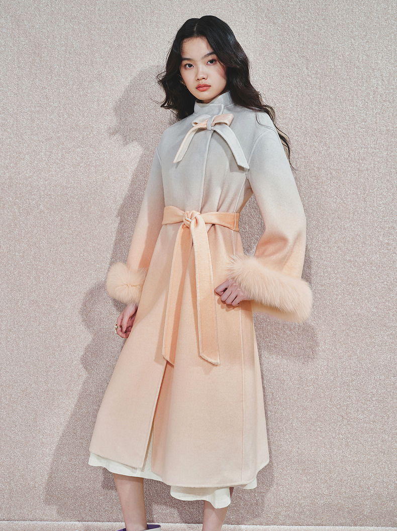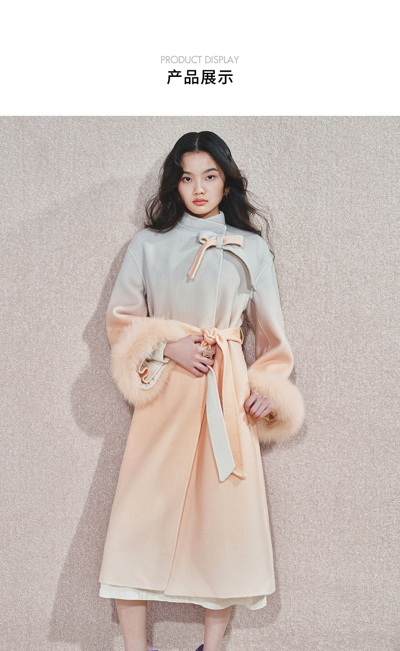 MAXRIENY高级气质感毛呢外套丁达尔渐变24冬新款中长款绵羊毛大衣(货号:MS85CT769)