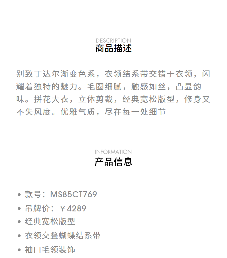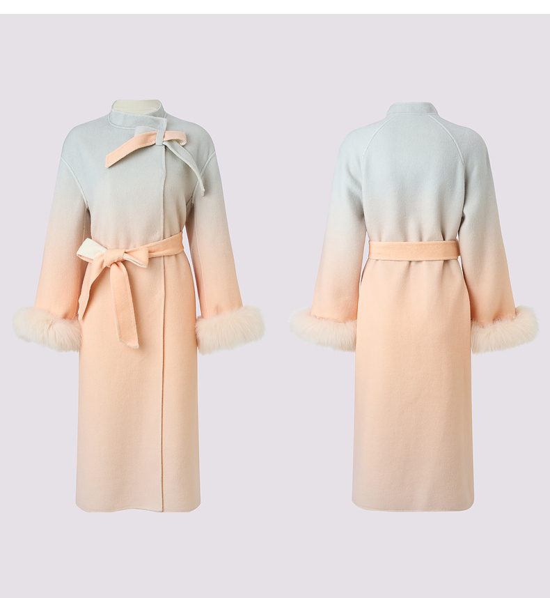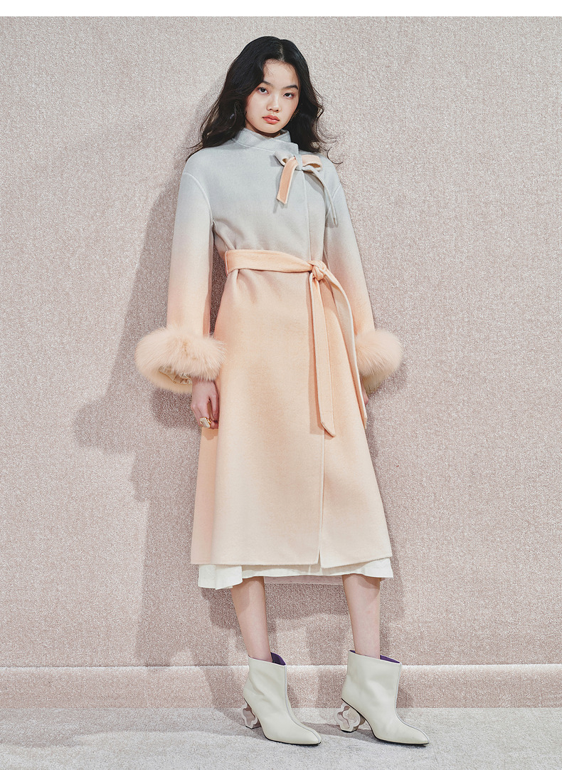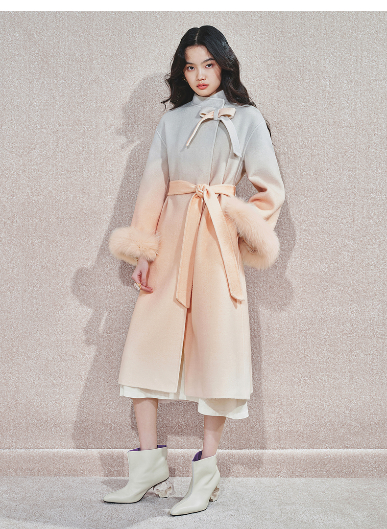MAXRIENY高级气质感毛呢外套丁达尔渐变24冬新款中长款绵羊毛大衣(货号:MS85CT769)