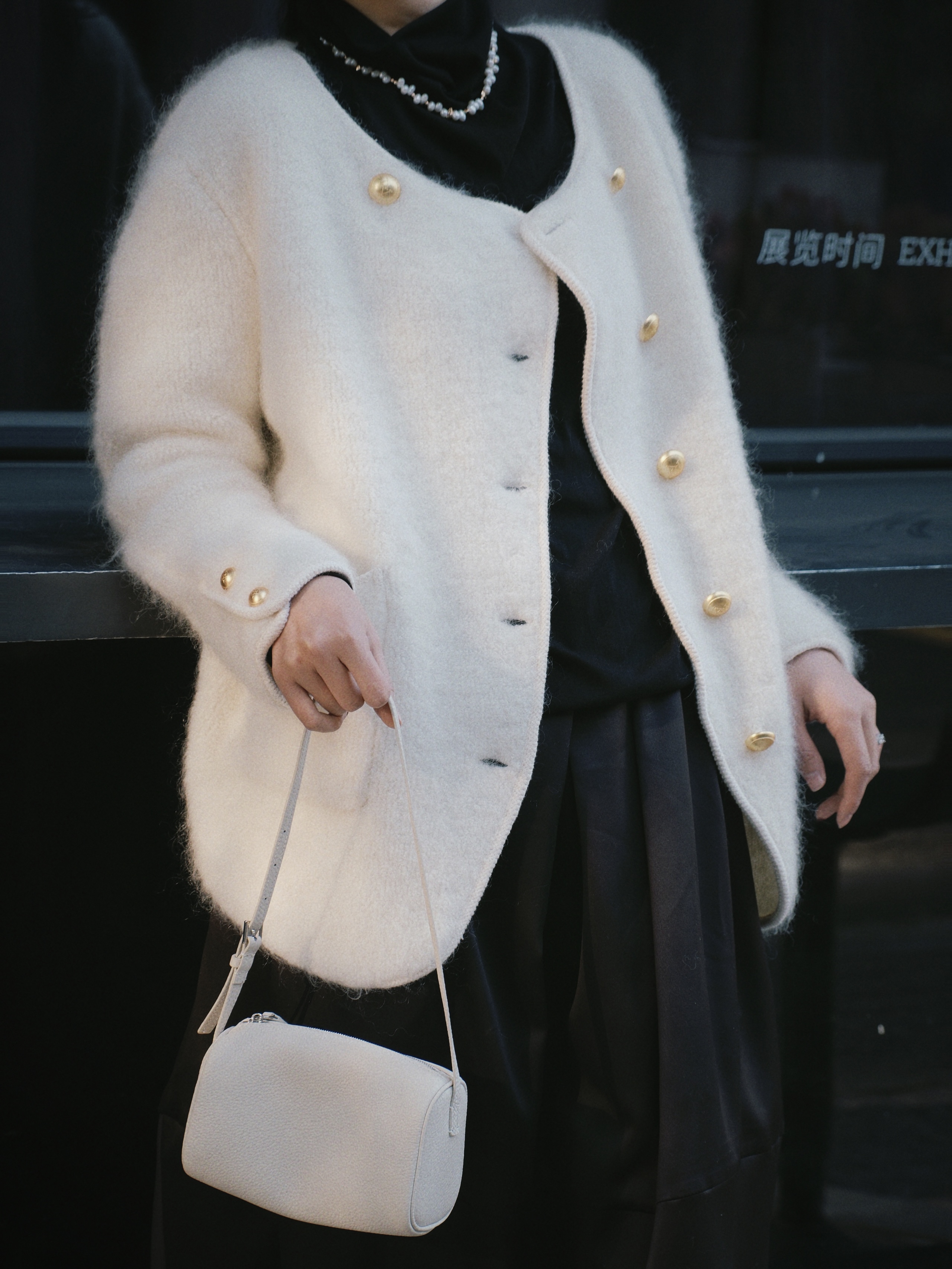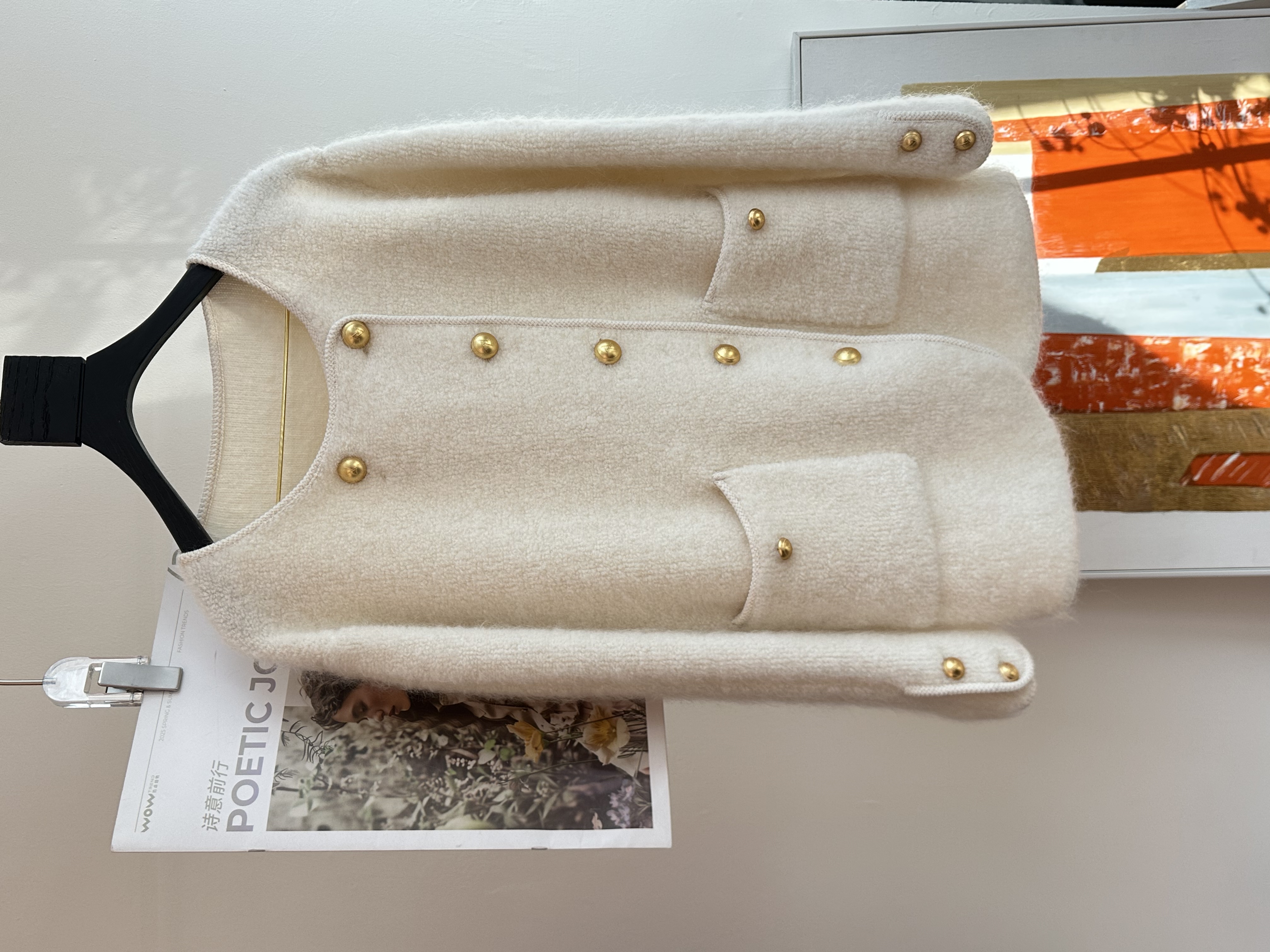 软糯如云~☁️韩系马海毛金扣毛衣外套,毛绒绒的外套在冬季给人暖融融的感觉,上身更是如此