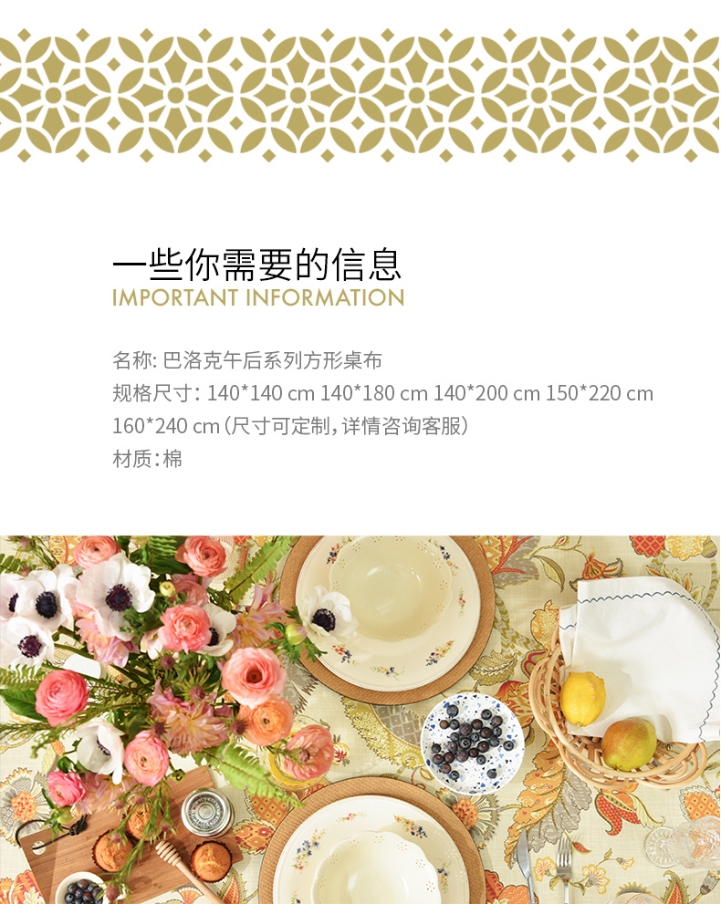 巴洛克午后系列方形桌布餐厅轻奢高级感桌布