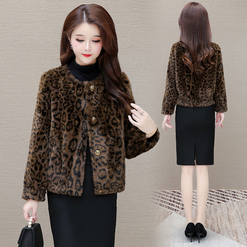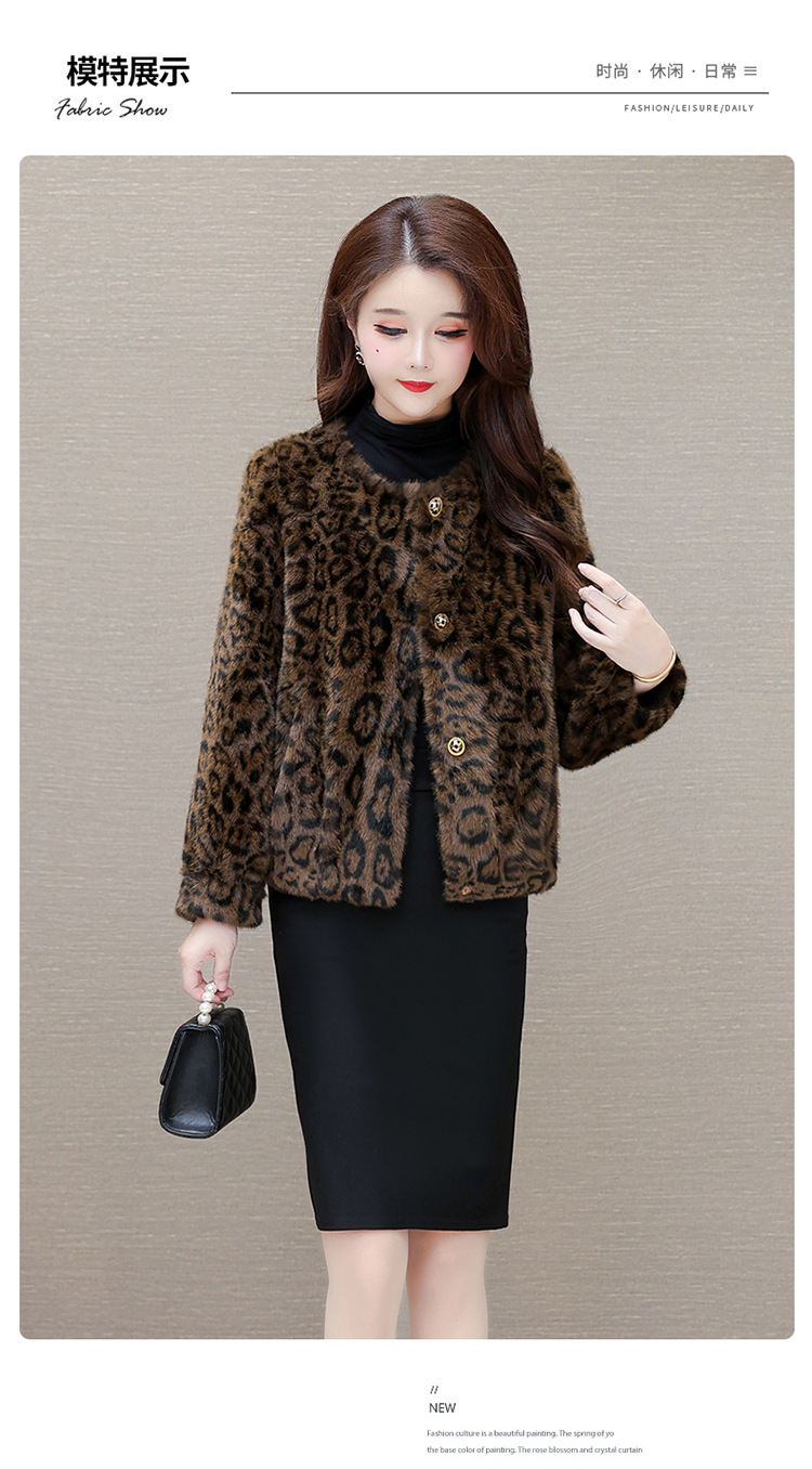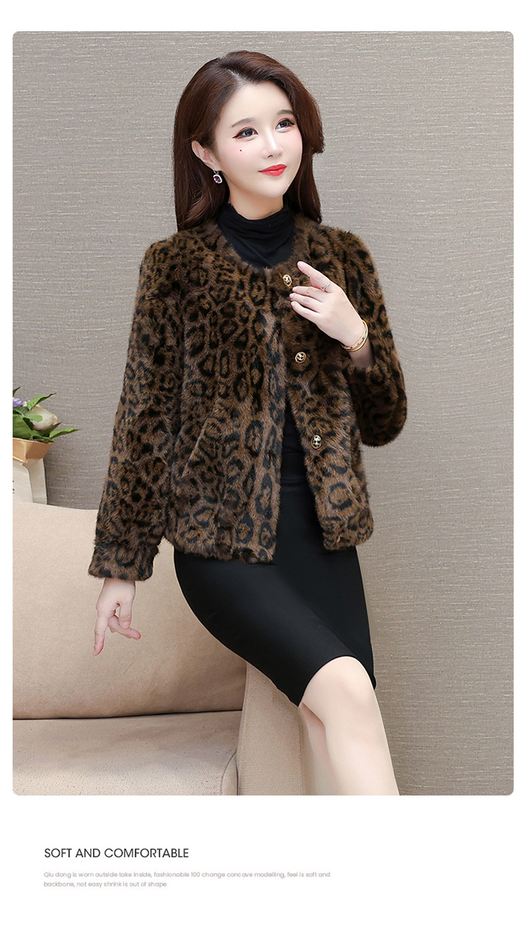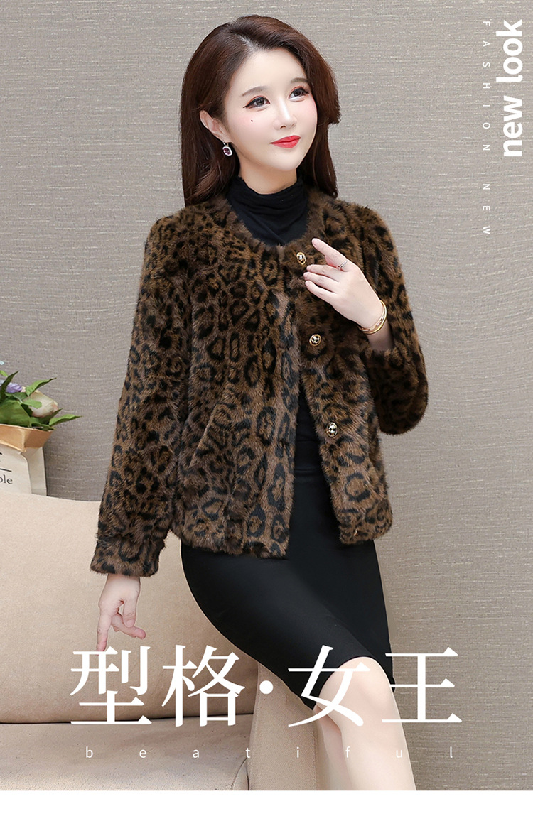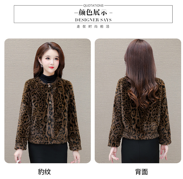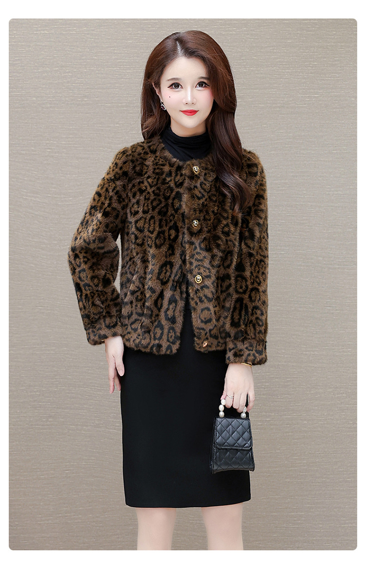 短款圆领仿貂毛豹纹外套,厚款皮毛一休闲开衫休闲上衣外套QYM-XY-24DN159-Y