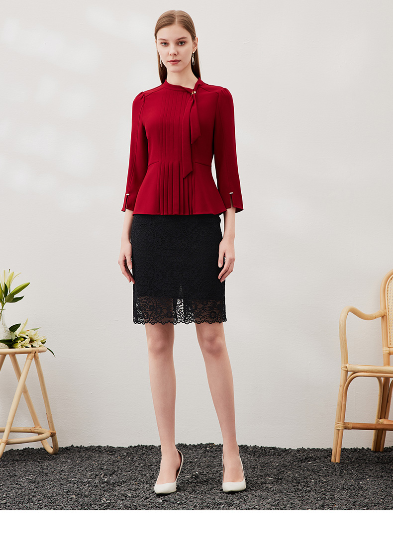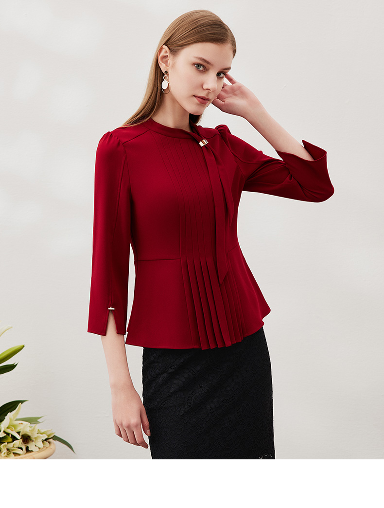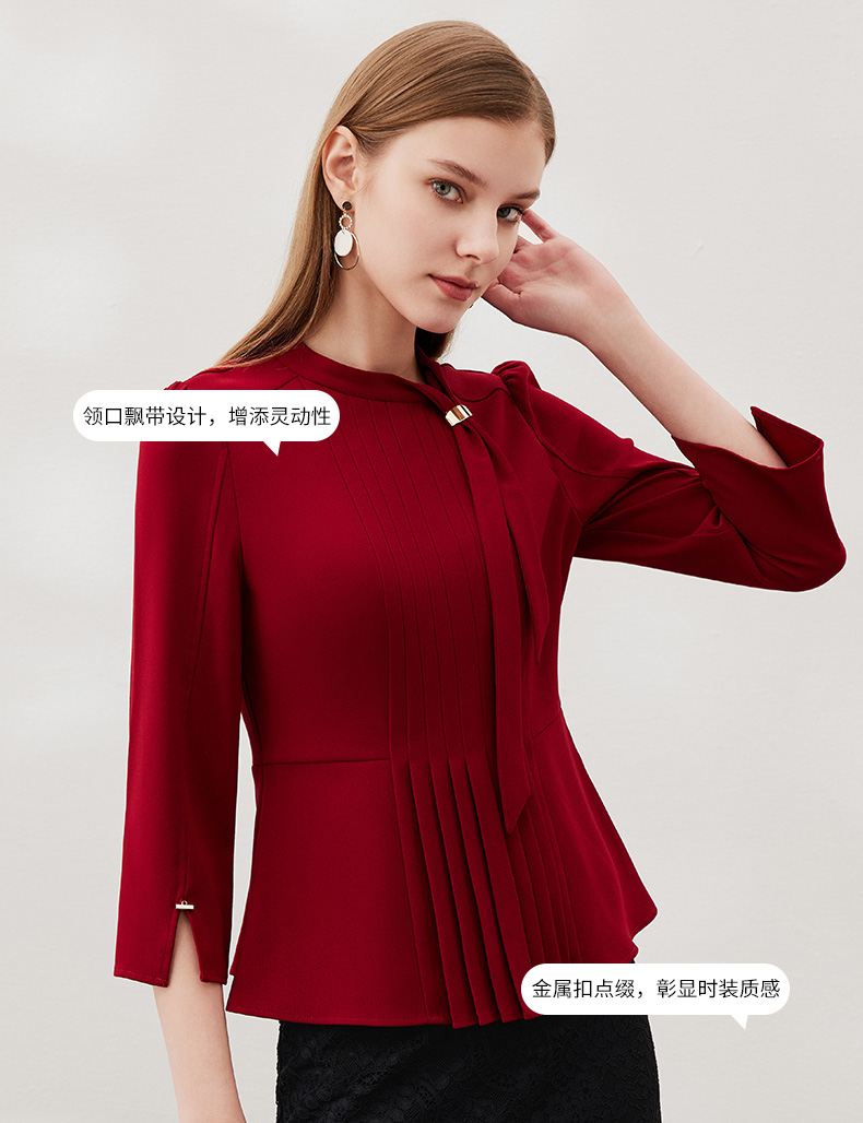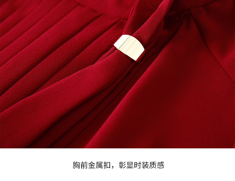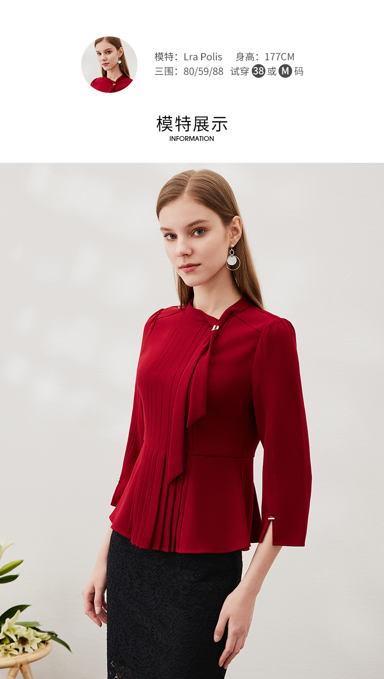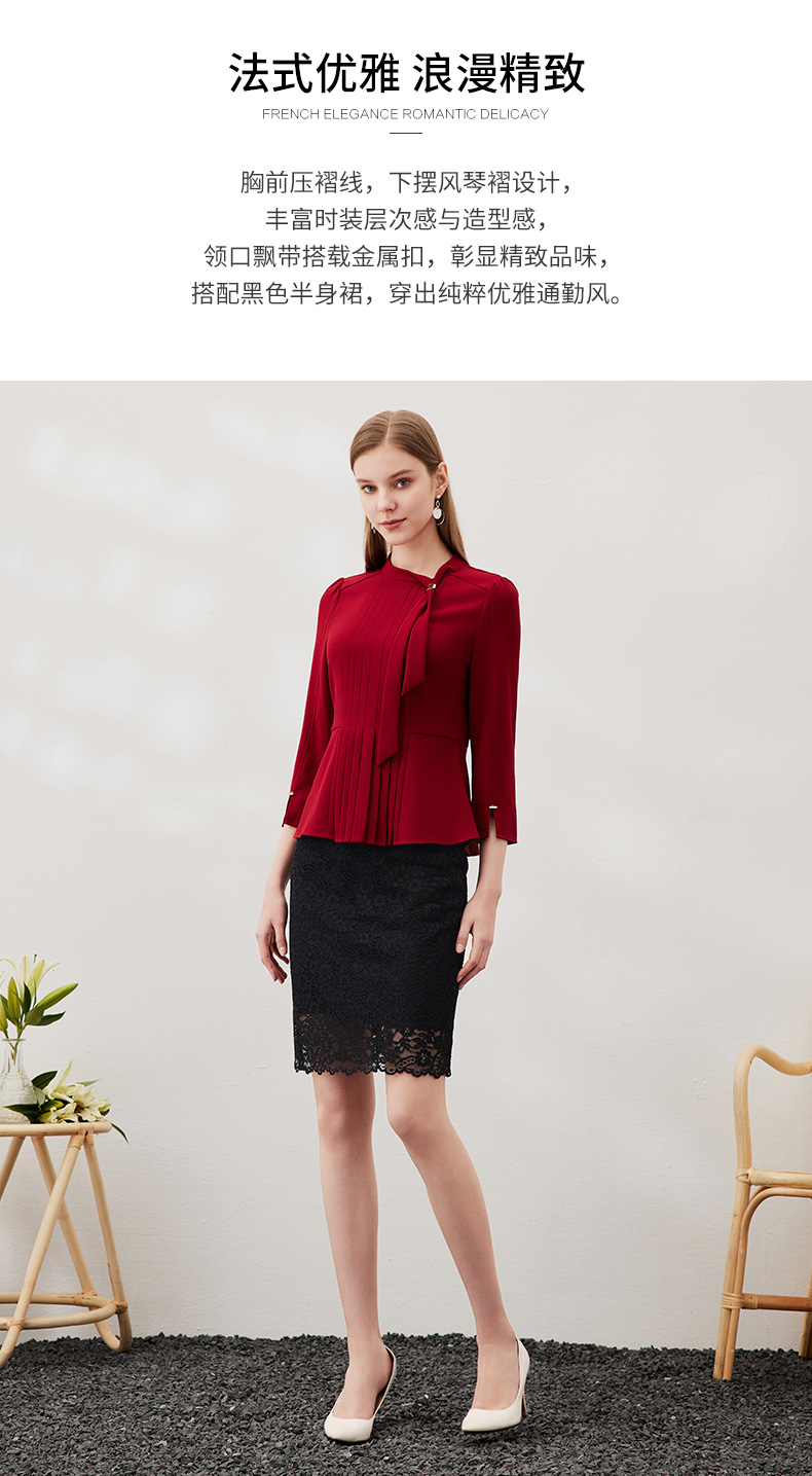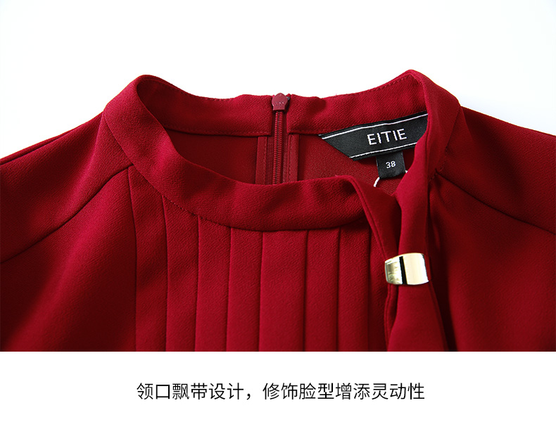 EITIE爱特爱女装初秋季新款薄纱透视五分袖百褶连衣裙长6007771