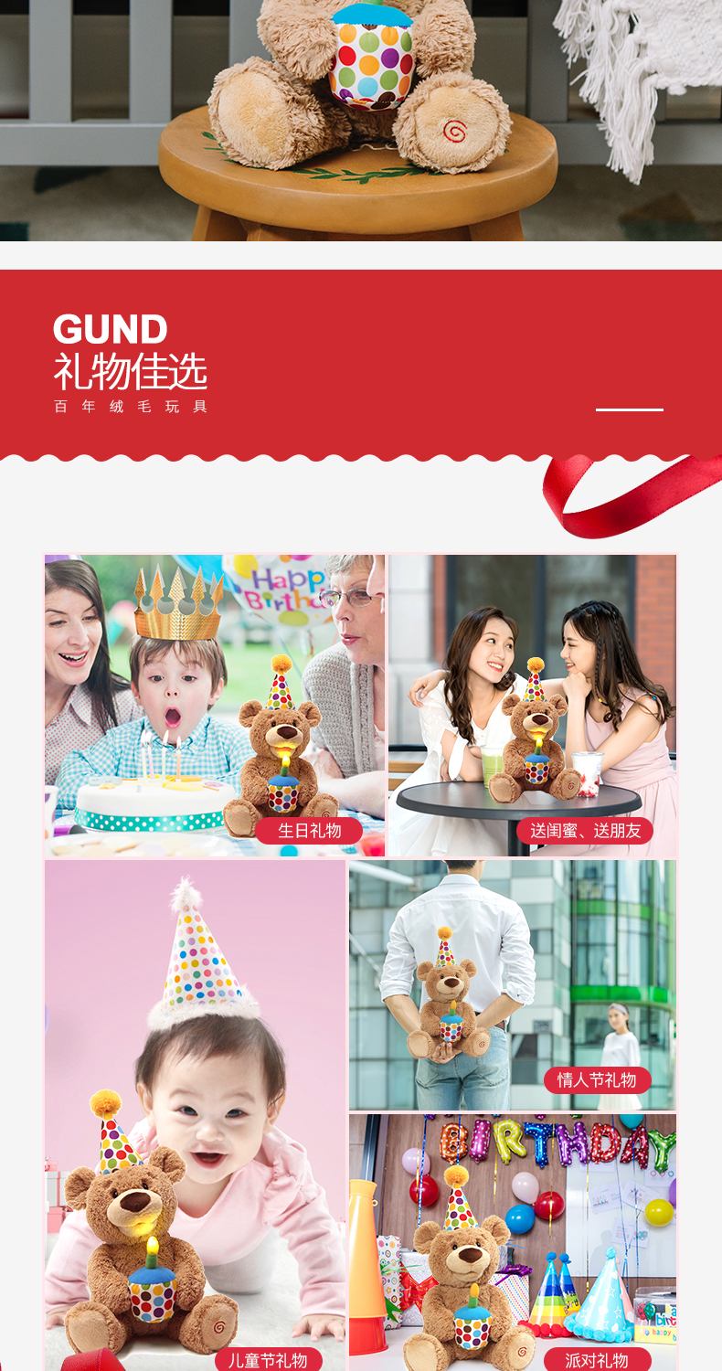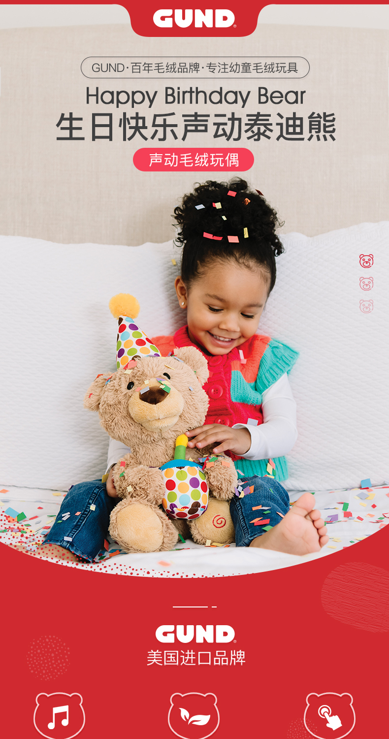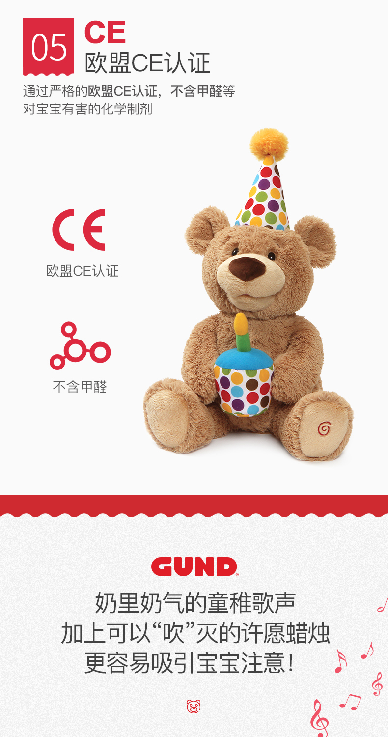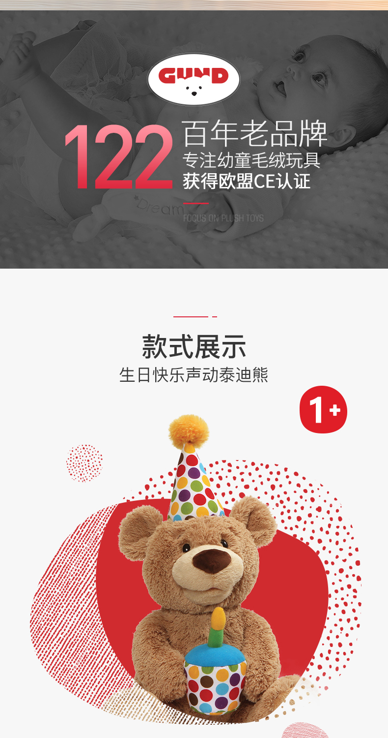 Baby Gund儿童生日礼物会唱生日快乐歌经典泰迪熊毛绒玩具宝宝周岁礼品