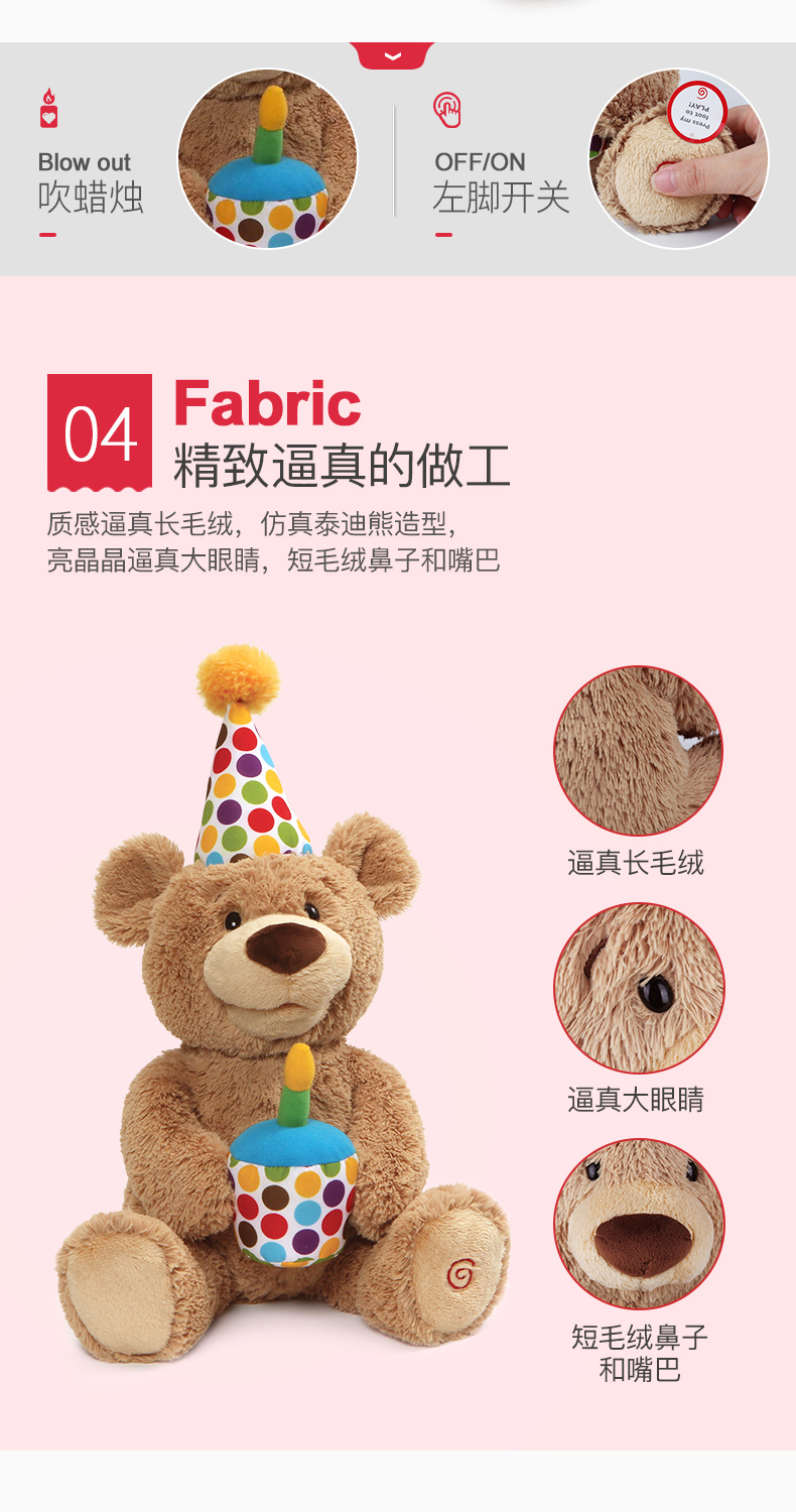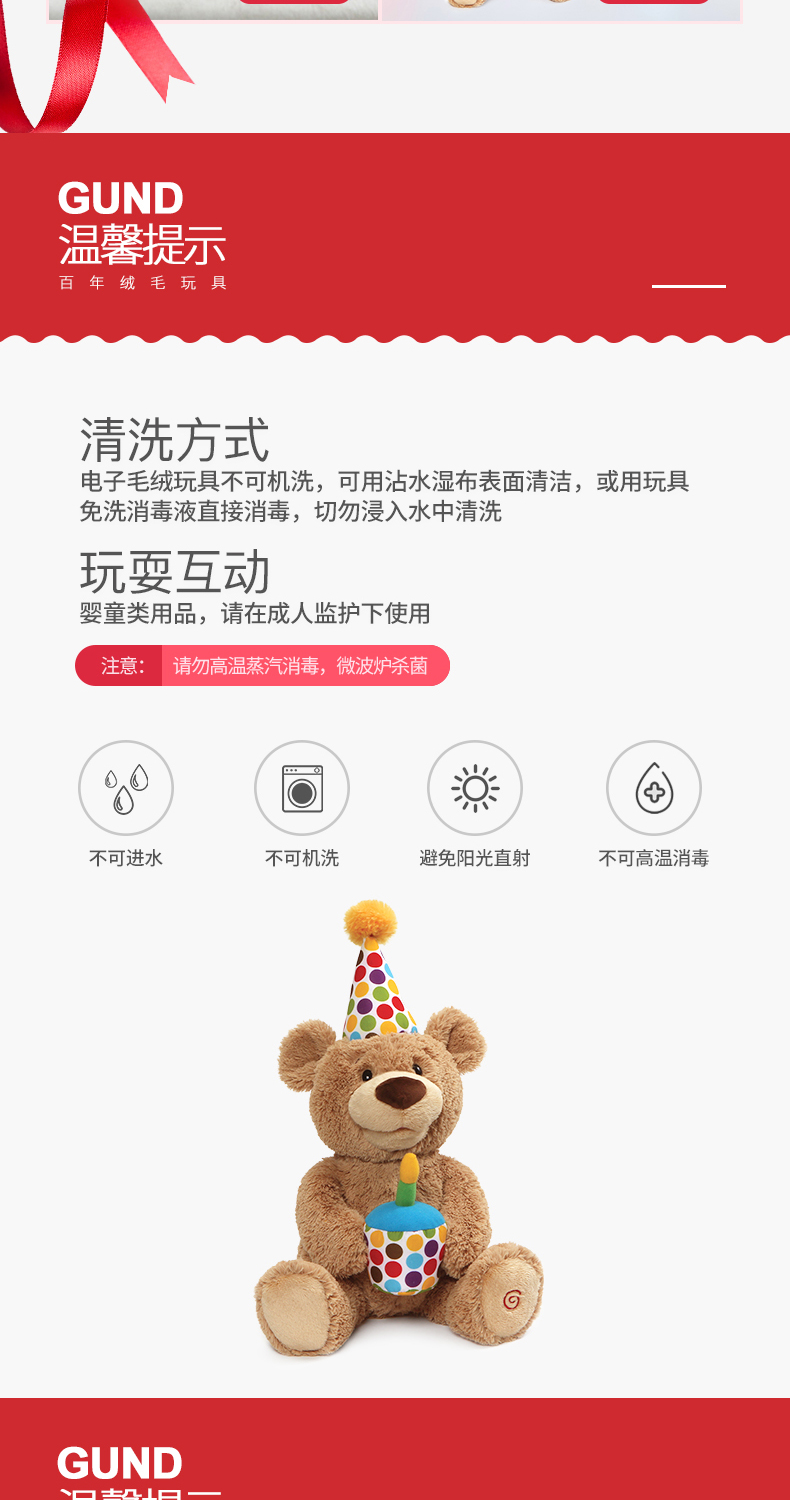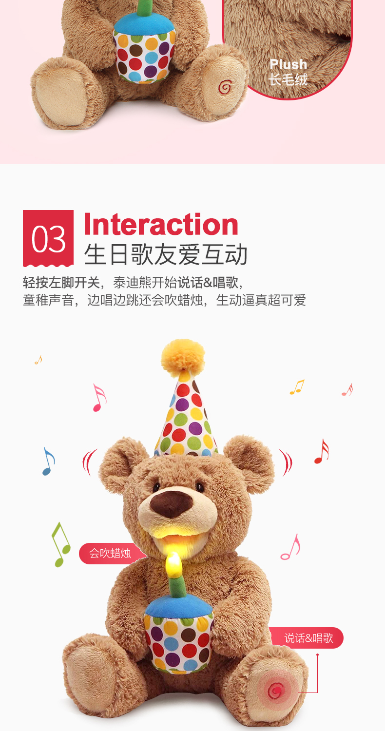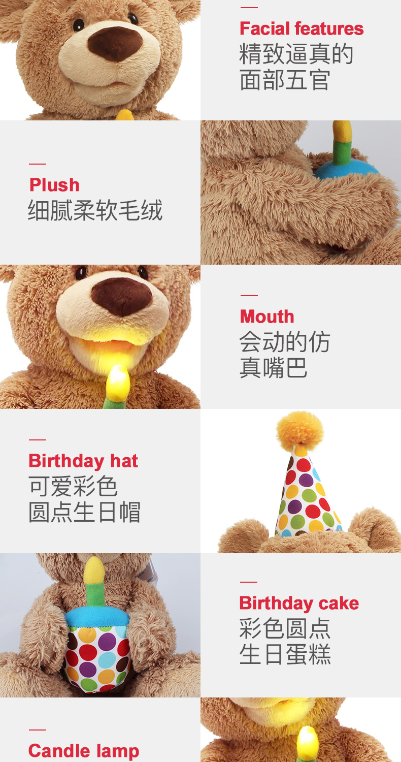 Baby Gund儿童生日礼物会唱生日快乐歌经典泰迪熊毛绒玩具宝宝周岁礼品
