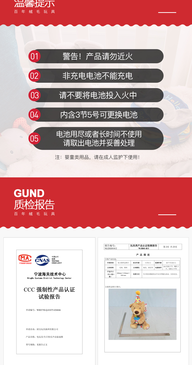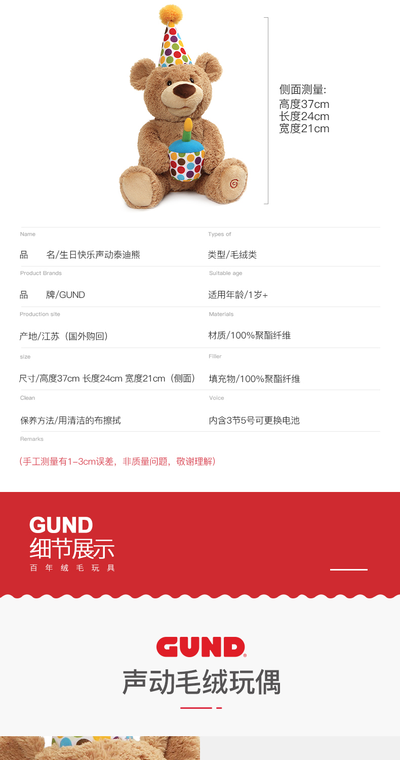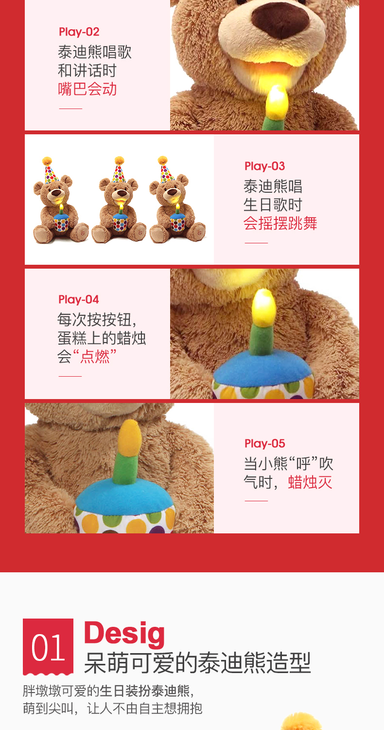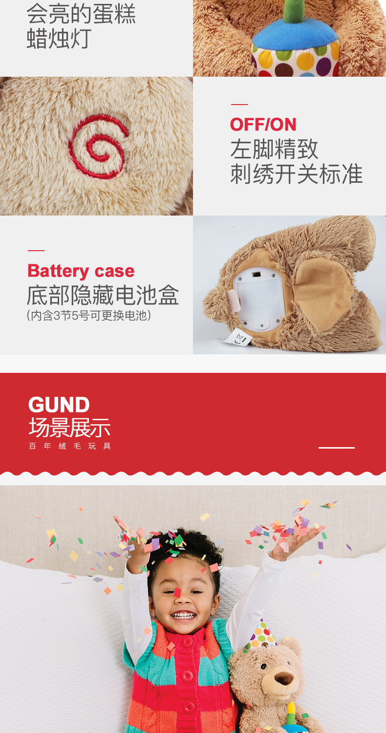 Baby Gund儿童生日礼物会唱生日快乐歌经典泰迪熊毛绒玩具宝宝周岁礼品