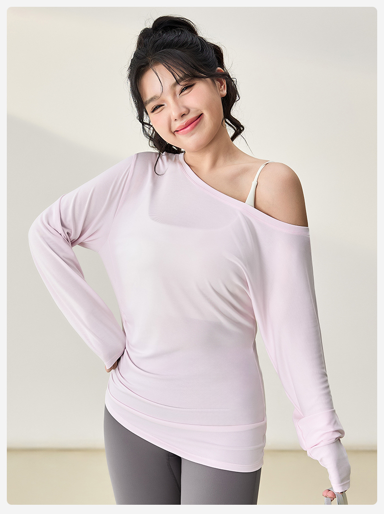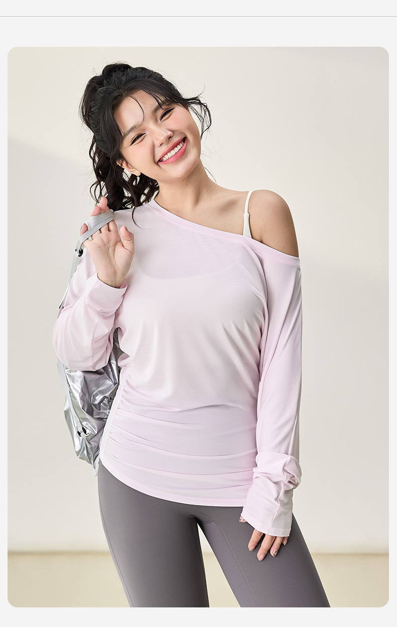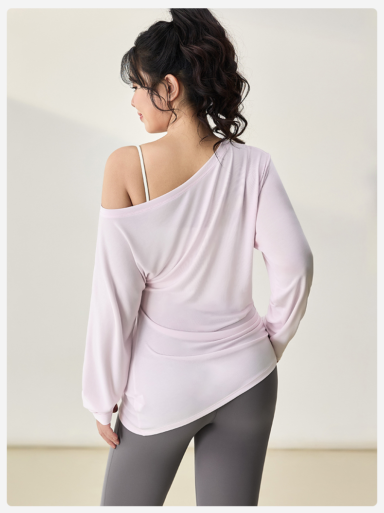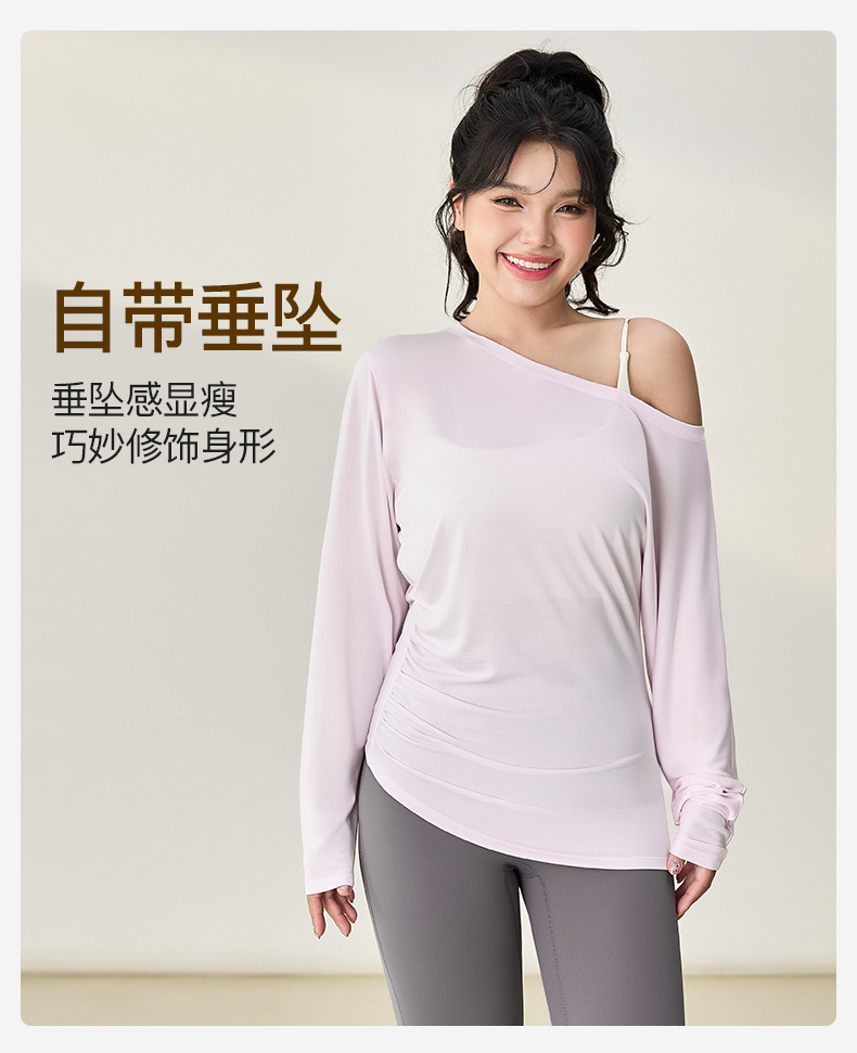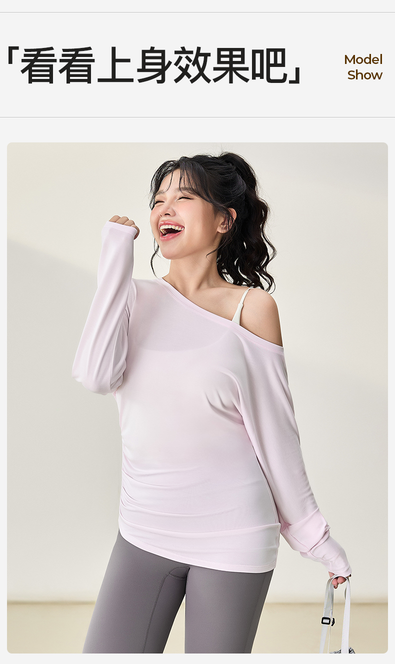 【限时秒】YOGACODE【火树银花系列】大码女性感斜肩显瘦宽松透气休闲运动罩衫DWT225665